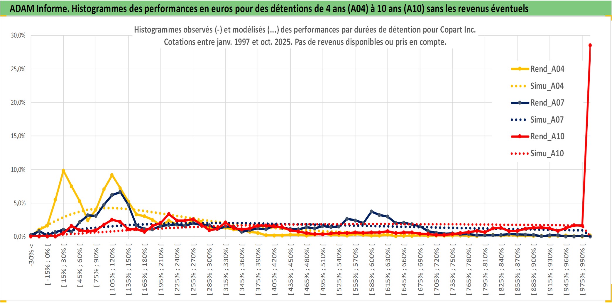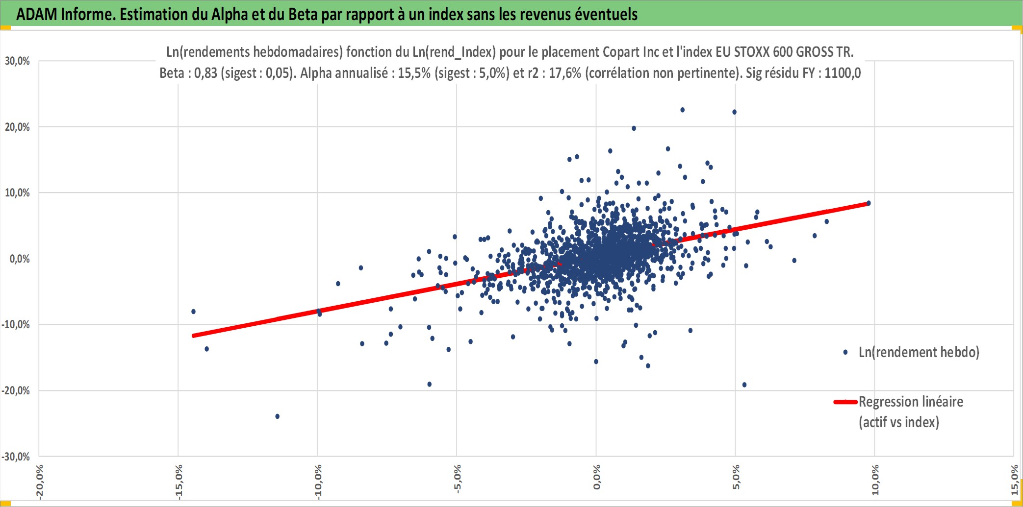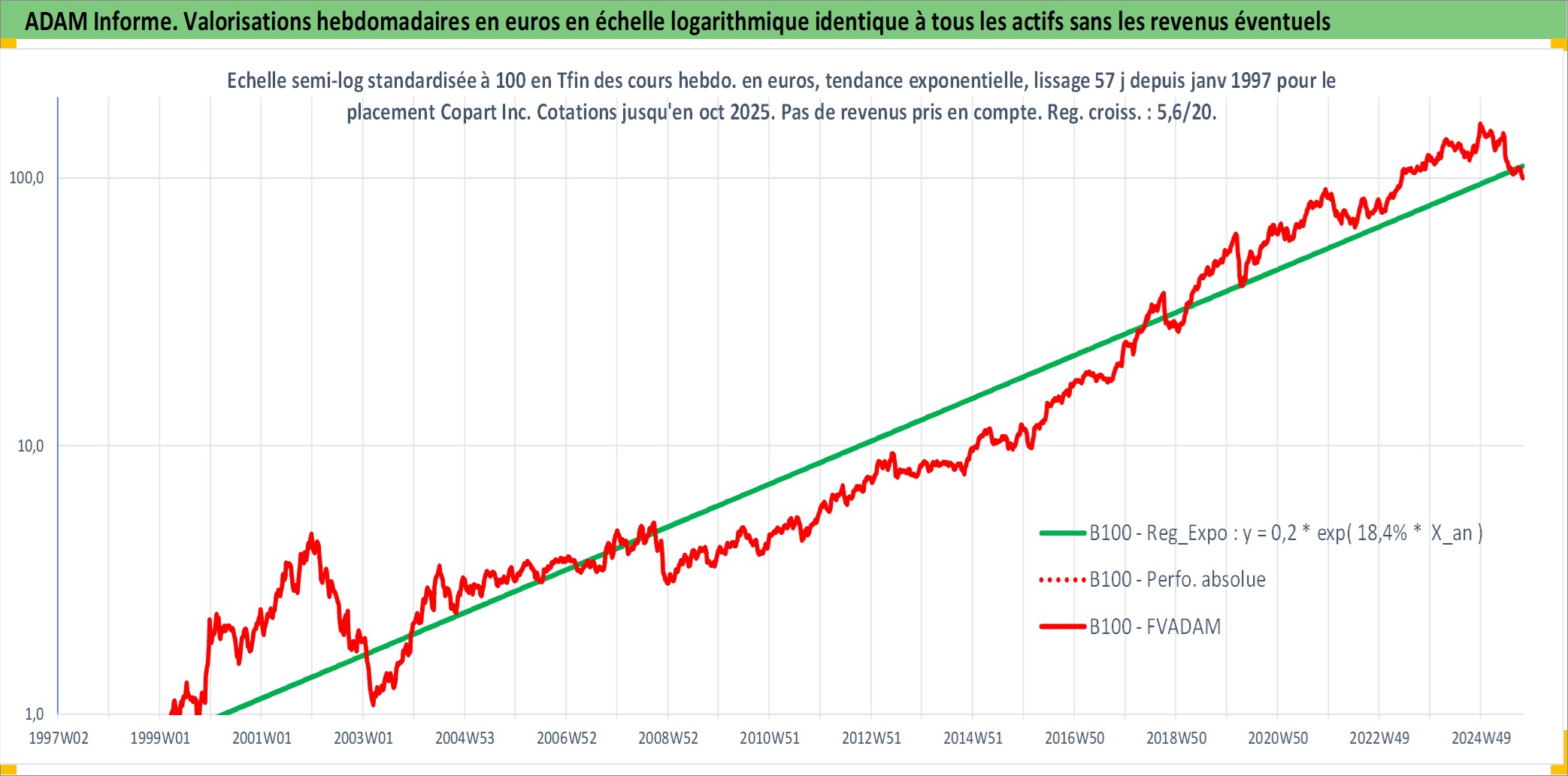 Site dédié aux investisseursPage dédiée sur site financeAnalyse des valorisations hebdomadaires de l'action Copart Inc. Cet actif est cote en USD. Les valorisations sont en contrevaleur EURO et couvrent les semaines 1997W01 a 2025W40. Les revenus de cet actif financier ne sont pas connus car non existants ou non disponibles sur le site Yahoo Finance. La note globale ESG de cet actif est estimee a 11.0 (apres rebasage entre 0 et 20).