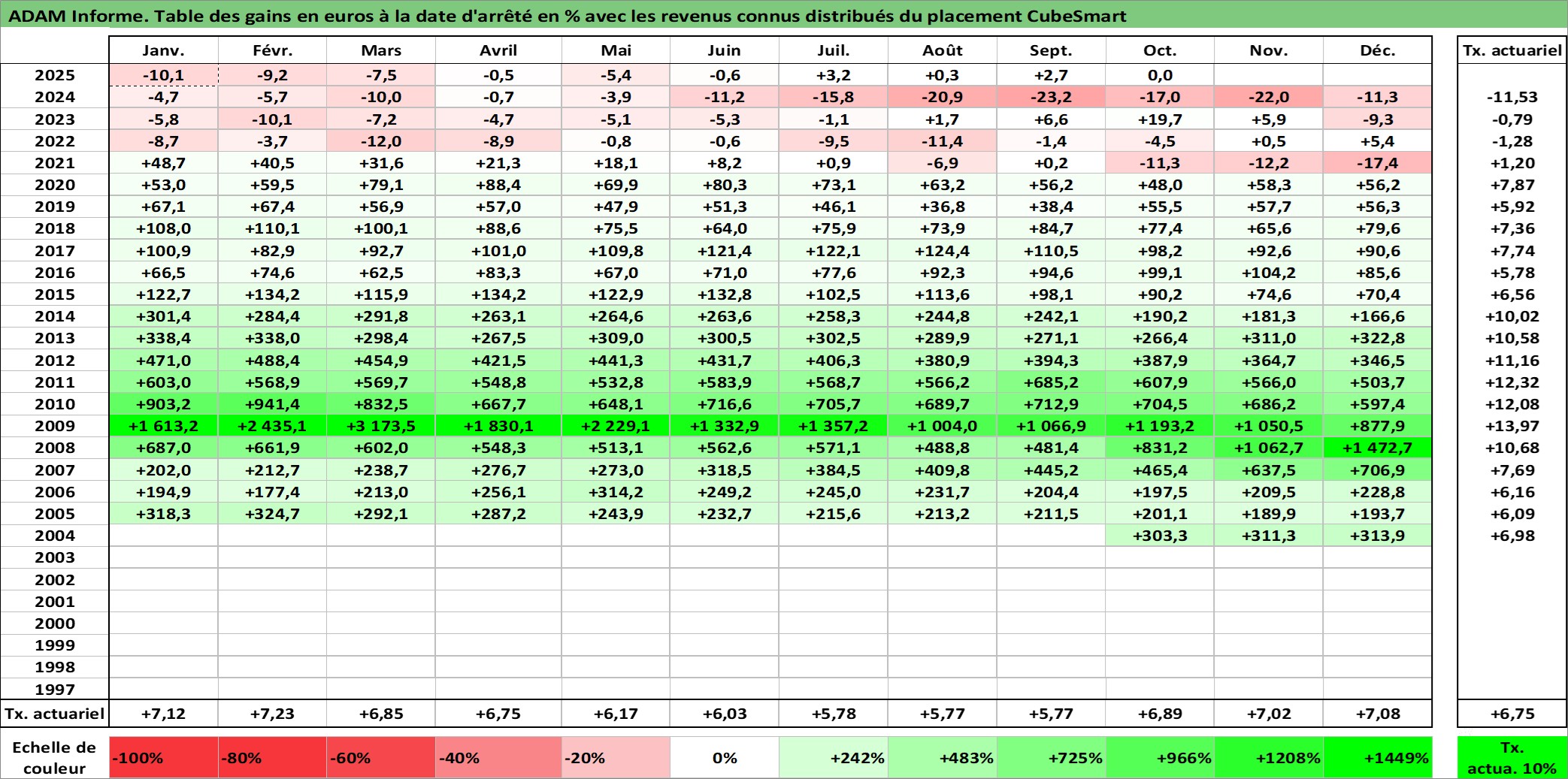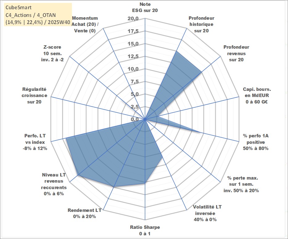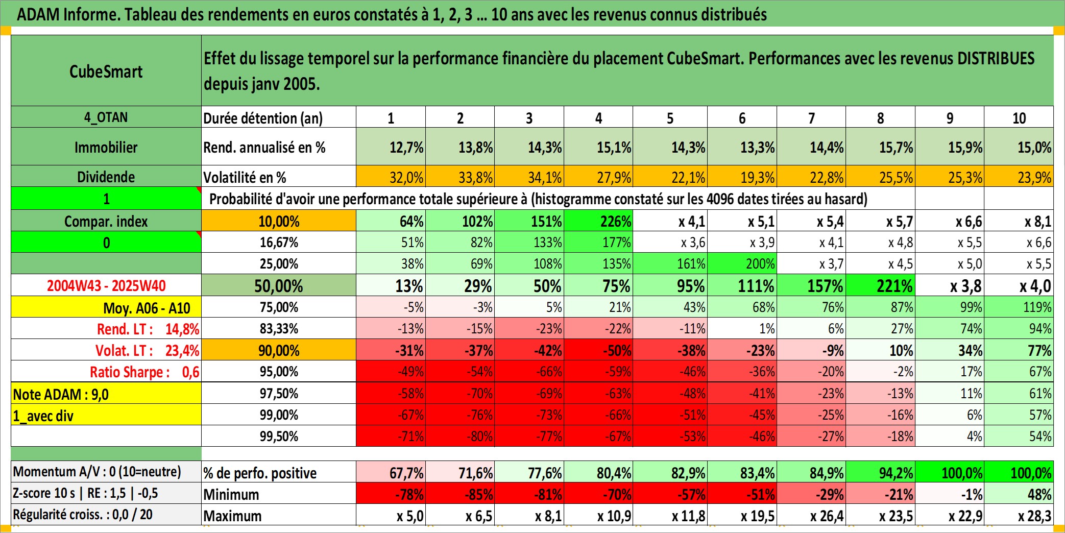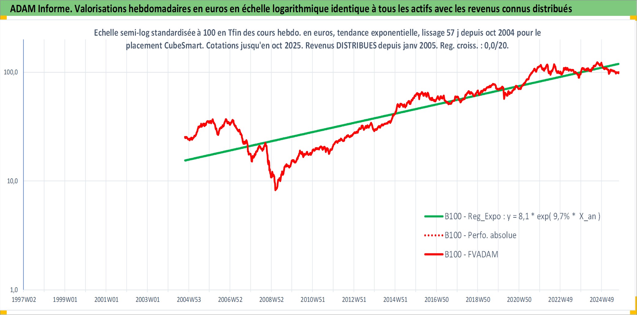 Site dédié aux investisseursPage dédiée sur site financeAnalyse des valorisations hebdomadaires de l'action CubeSmart. Cet actif est cote en USD. Les valorisations sont en contrevaleur EURO et couvrent les semaines 2004W43 a 2025W40. Les revenus de cet actif financier sont pris en compte depuis la semaine 2005W01. La note ESG de cet actif n'est pas connue.