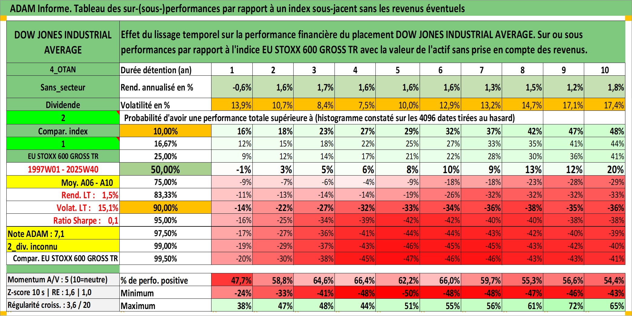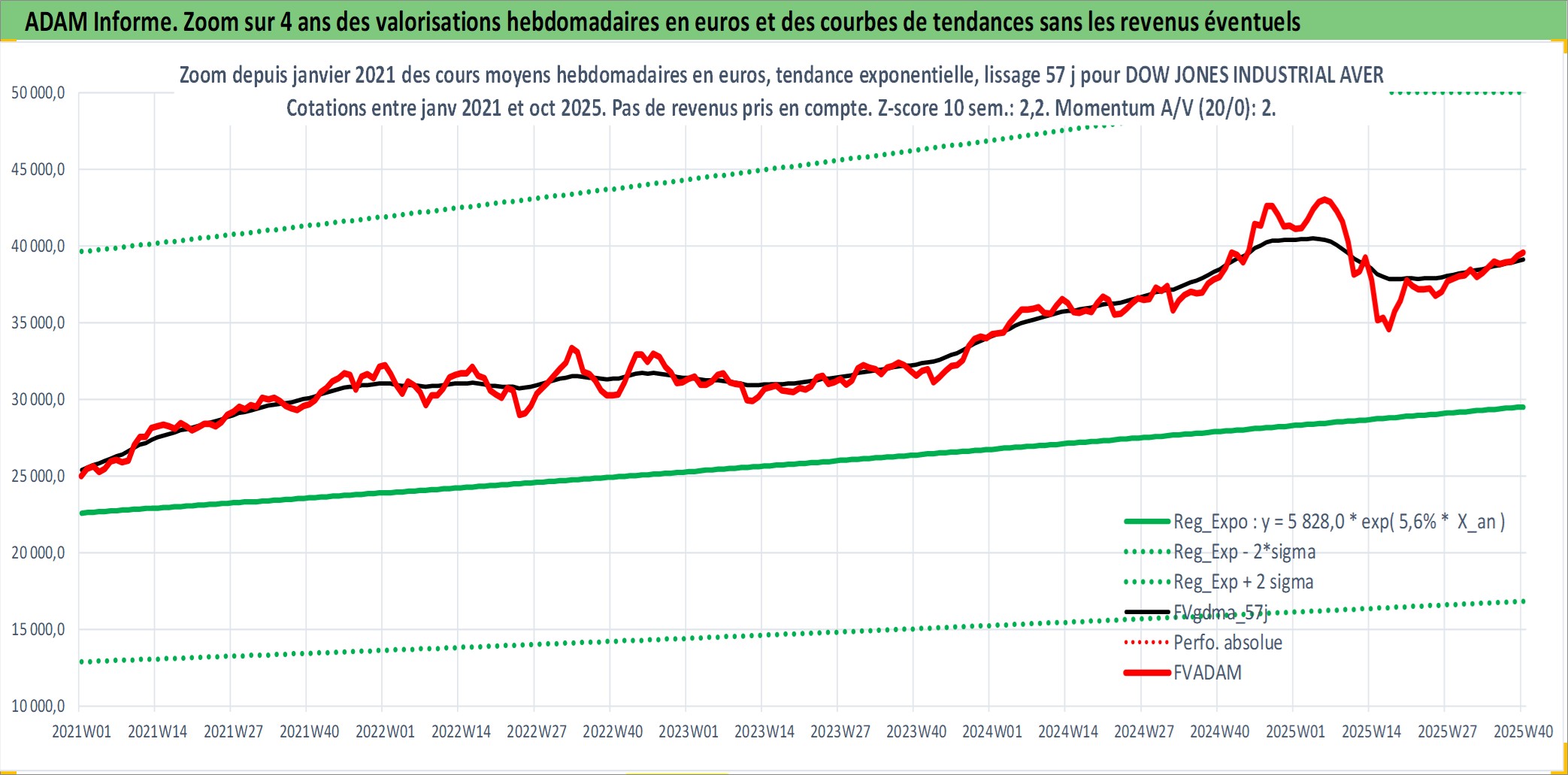 Site dédié aux investisseursPage dédiée sur site financeAnalyse des valorisations hebdomadaires de l'actif DOW JONES INDUSTRIAL AVERAGE. Cet actif est cote en USD. Les valorisations sont en contrevaleur EURO et couvrent les semaines 1997W01 a 2025W40. Les revenus de cet actif financier ne sont pas connus car non existants ou non disponibles sur le site Yahoo Finance. La note ESG de cet actif n'est pas connue.