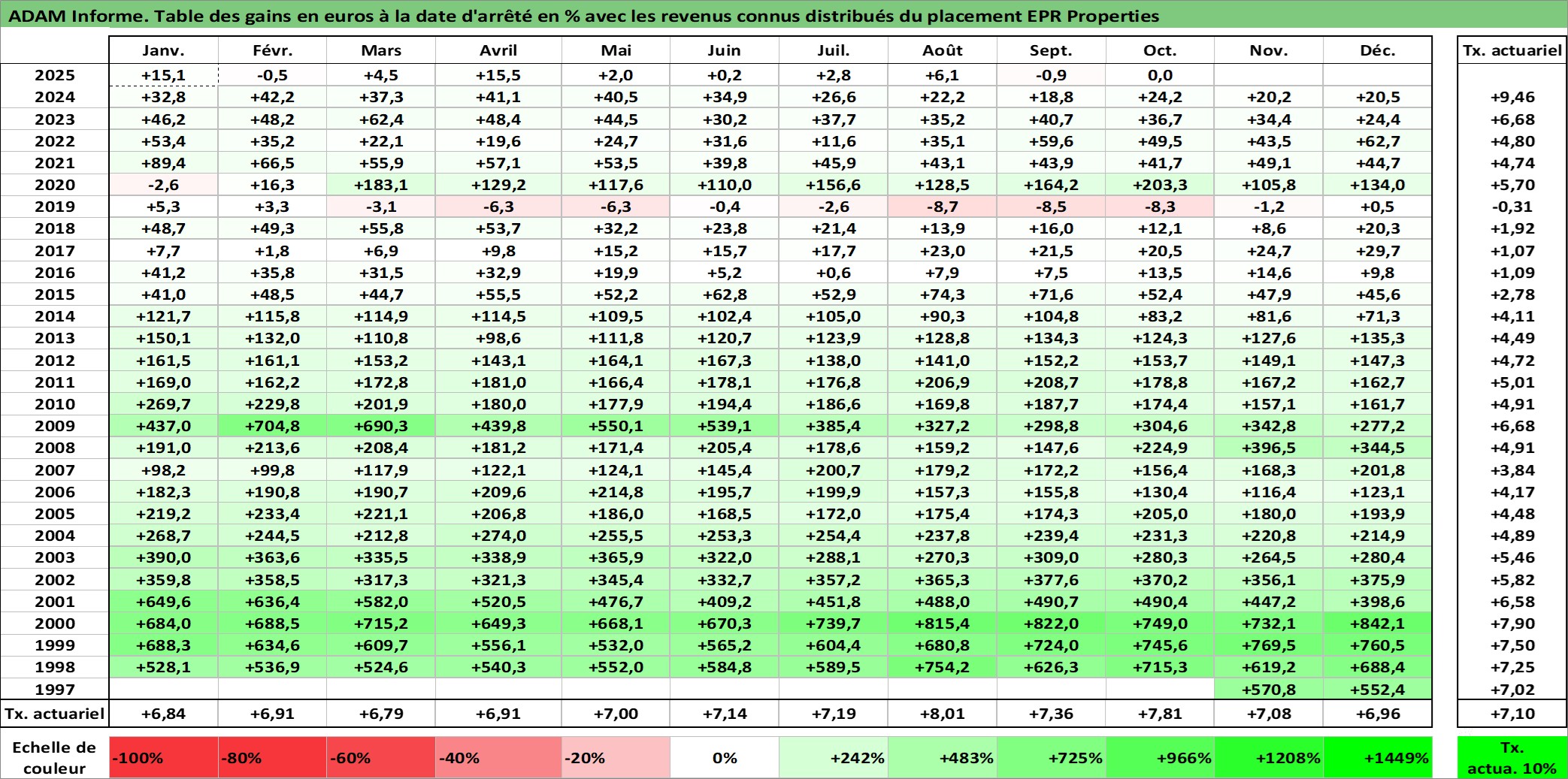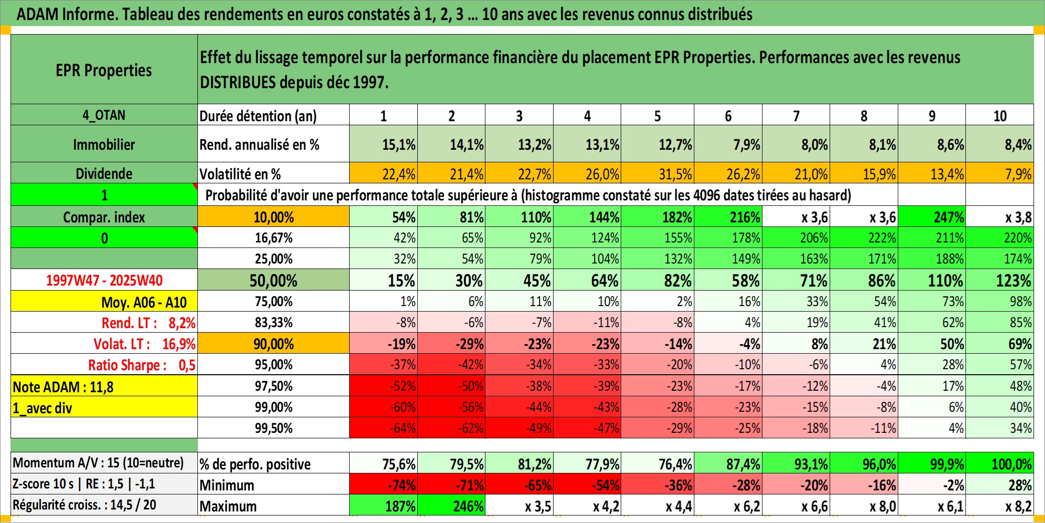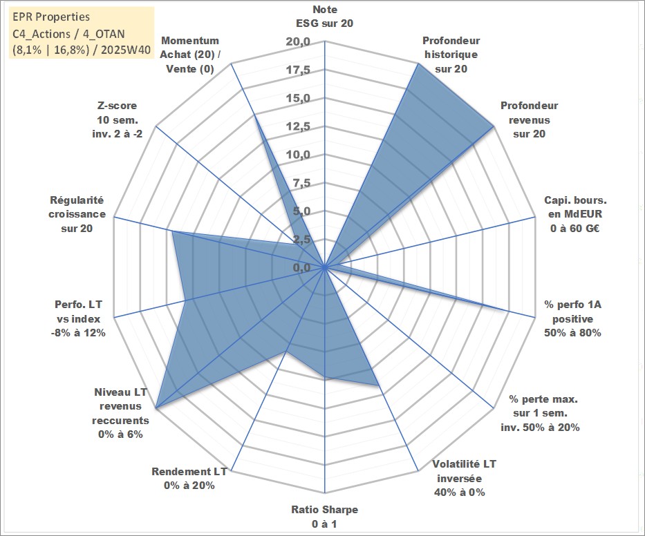 Site dédié aux investisseursPage dédiée sur site financeAnalyse des valorisations hebdomadaires de l'action EPR Properties. Cet actif est cote en USD. Les valorisations sont en contrevaleur EURO et couvrent les semaines 1997W47 a 2025W40. Les revenus de cet actif financier sont pris en compte depuis la semaine 1997W52. La note ESG de cet actif n'est pas connue.