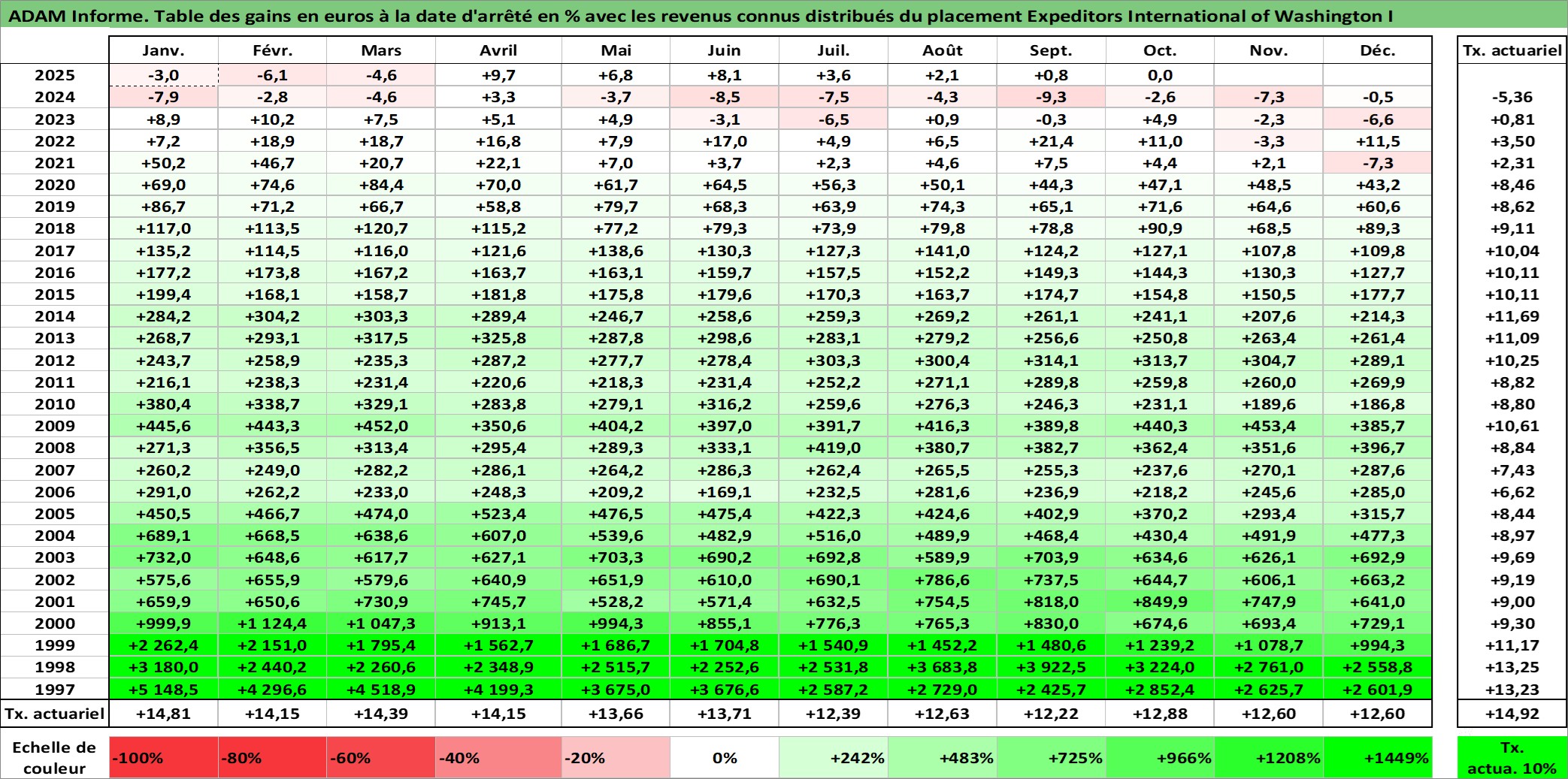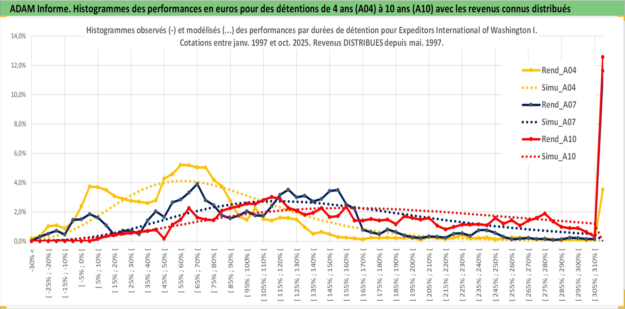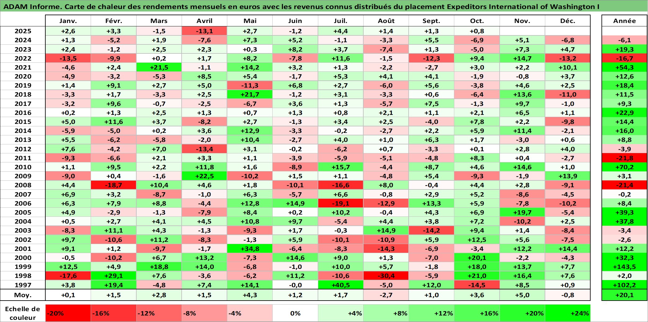 Site dédié aux investisseursPage dédiée sur site financeAnalyse des valorisations hebdomadaires de l'action Expeditors International of Washington I. Cet actif est cote en USD. Les valorisations sont en contrevaleur EURO et couvrent les semaines 1997W01 a 2025W40. Les revenus de cet actif financier sont pris en compte depuis la semaine 1997W22. La note globale ESG de cet actif est estimee a 13.0 (apres rebasage entre 0 et 20).