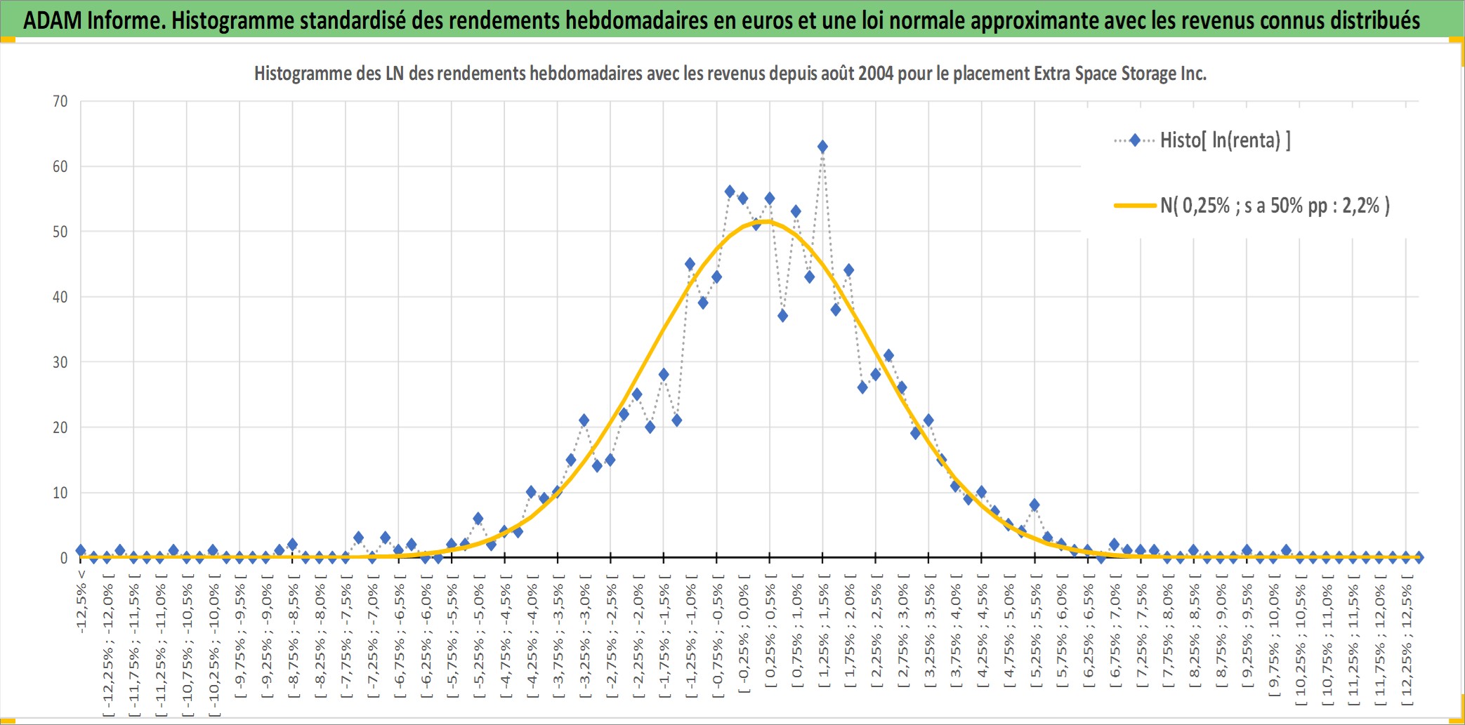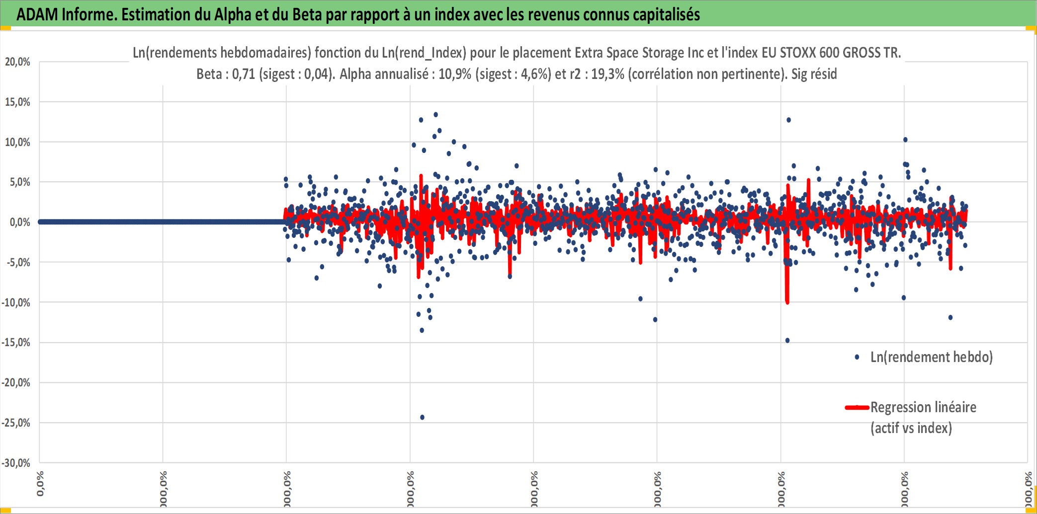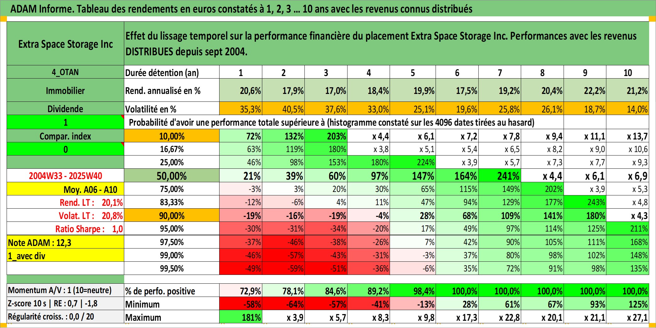 Site dédié aux investisseursPage dédiée sur site financeAnalyse des valorisations hebdomadaires de l'action Extra Space Storage Inc. Cet actif est cote en USD. Les valorisations sont en contrevaleur EURO et couvrent les semaines 2004W33 a 2025W40. Les revenus de cet actif financier sont pris en compte depuis la semaine 2004W38. La note globale ESG de cet actif est estimee a 14.0 (apres rebasage entre 0 et 20).