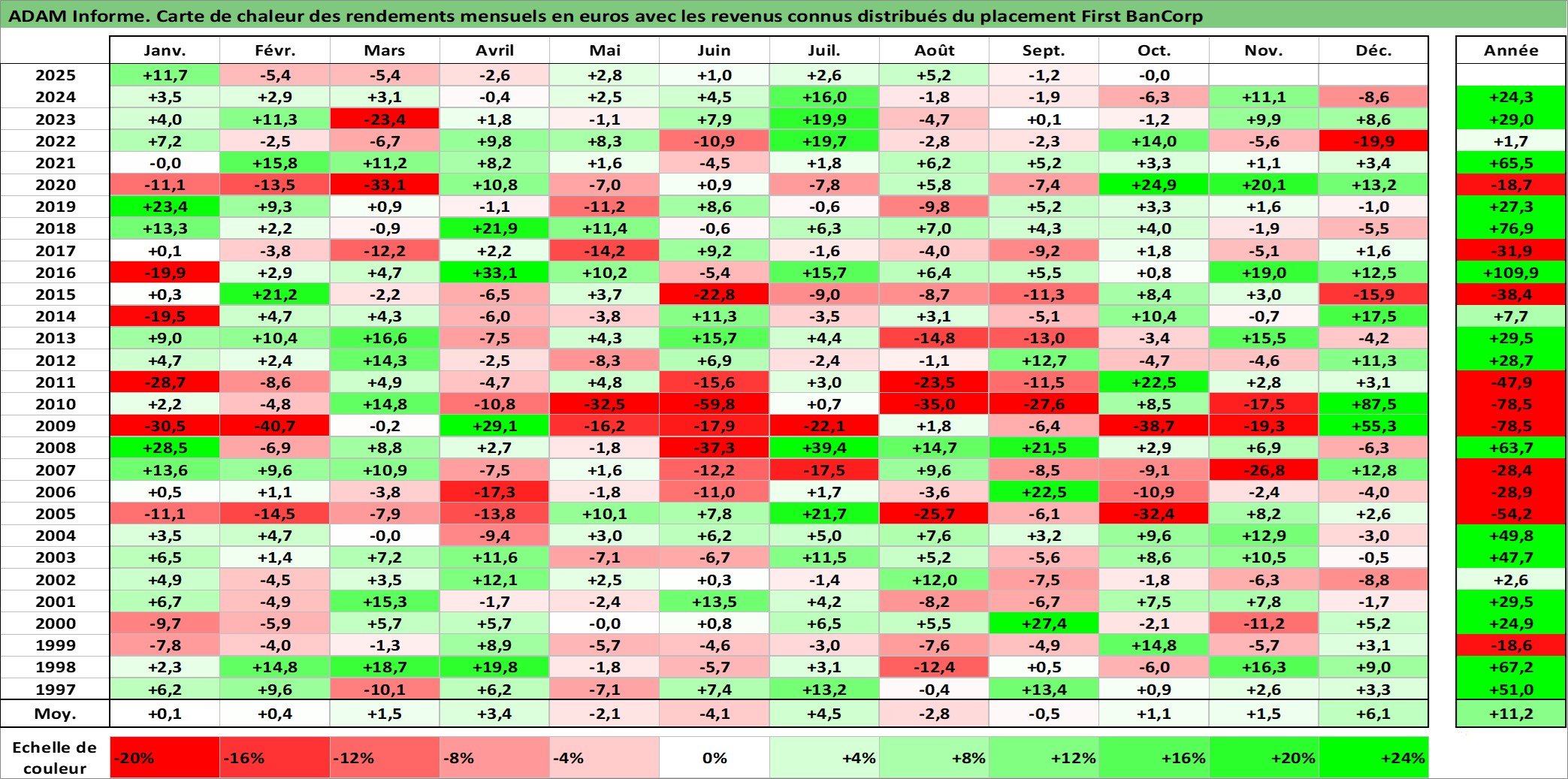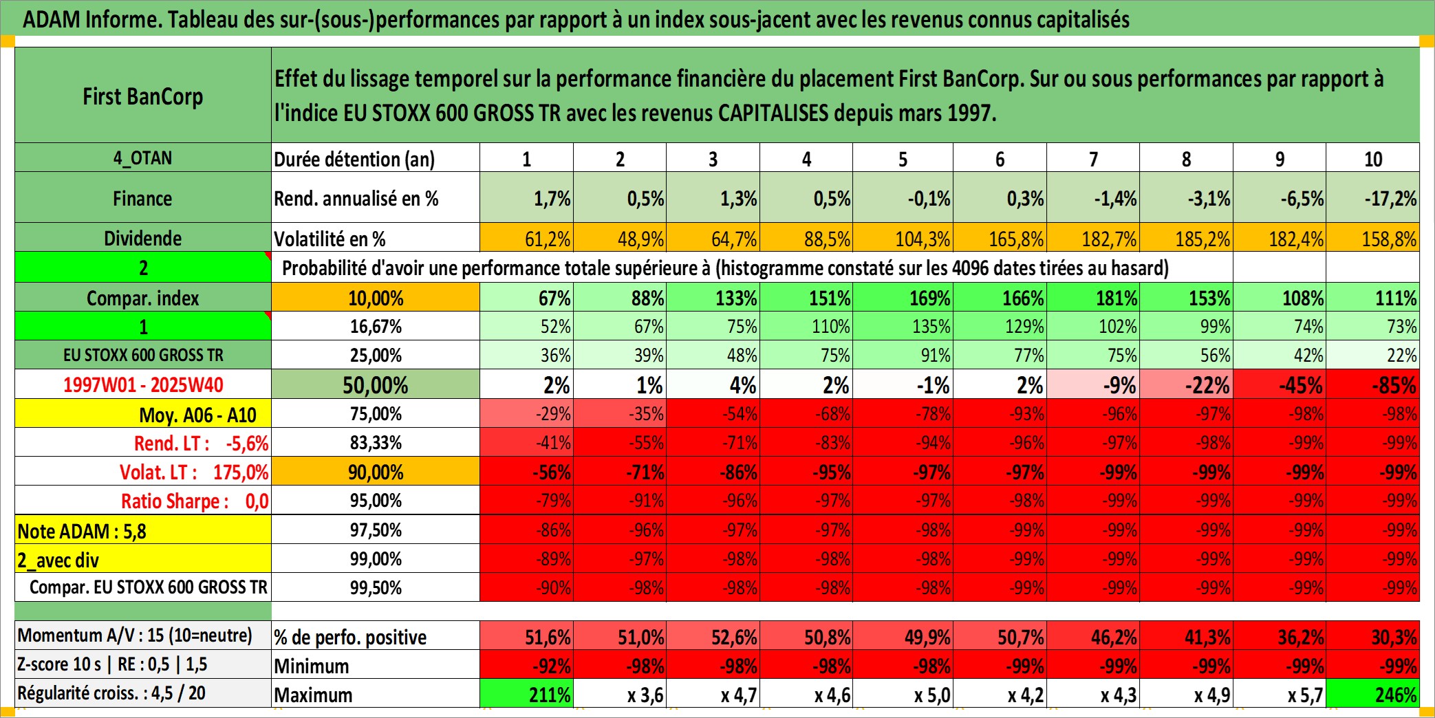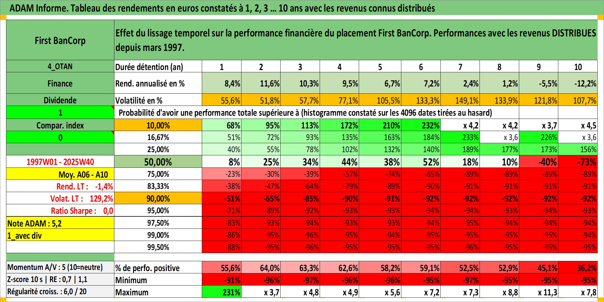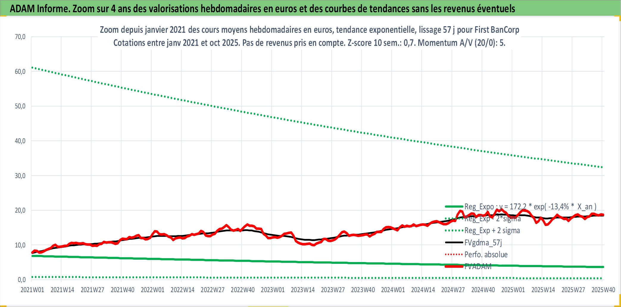 Site dédié aux investisseursPage dédiée sur site financeAnalyse des valorisations hebdomadaires de l'action First BanCorp. Cet actif est cote en USD. Les valorisations sont en contrevaleur EURO et couvrent les semaines 1997W01 a 2025W40. Les revenus de cet actif financier sont pris en compte depuis la semaine 1997W11. La note ESG de cet actif n'est pas connue.