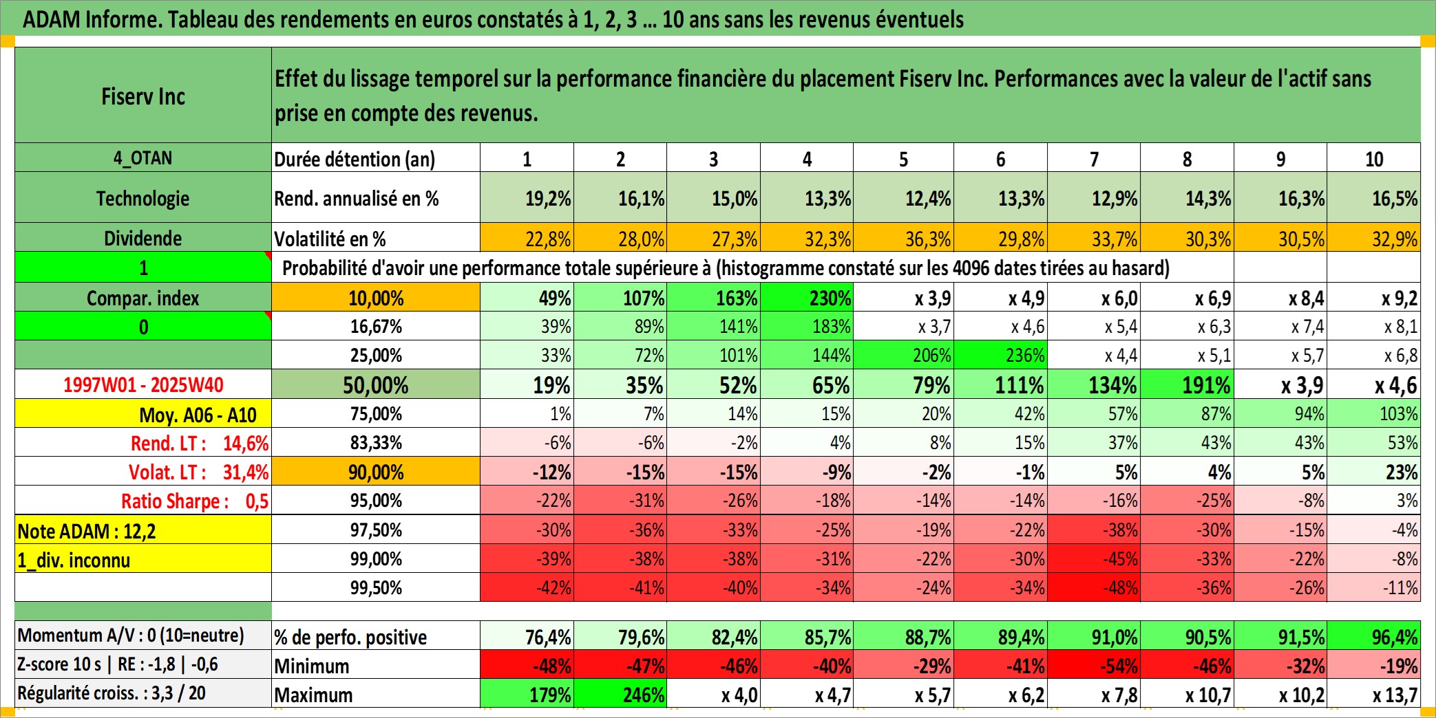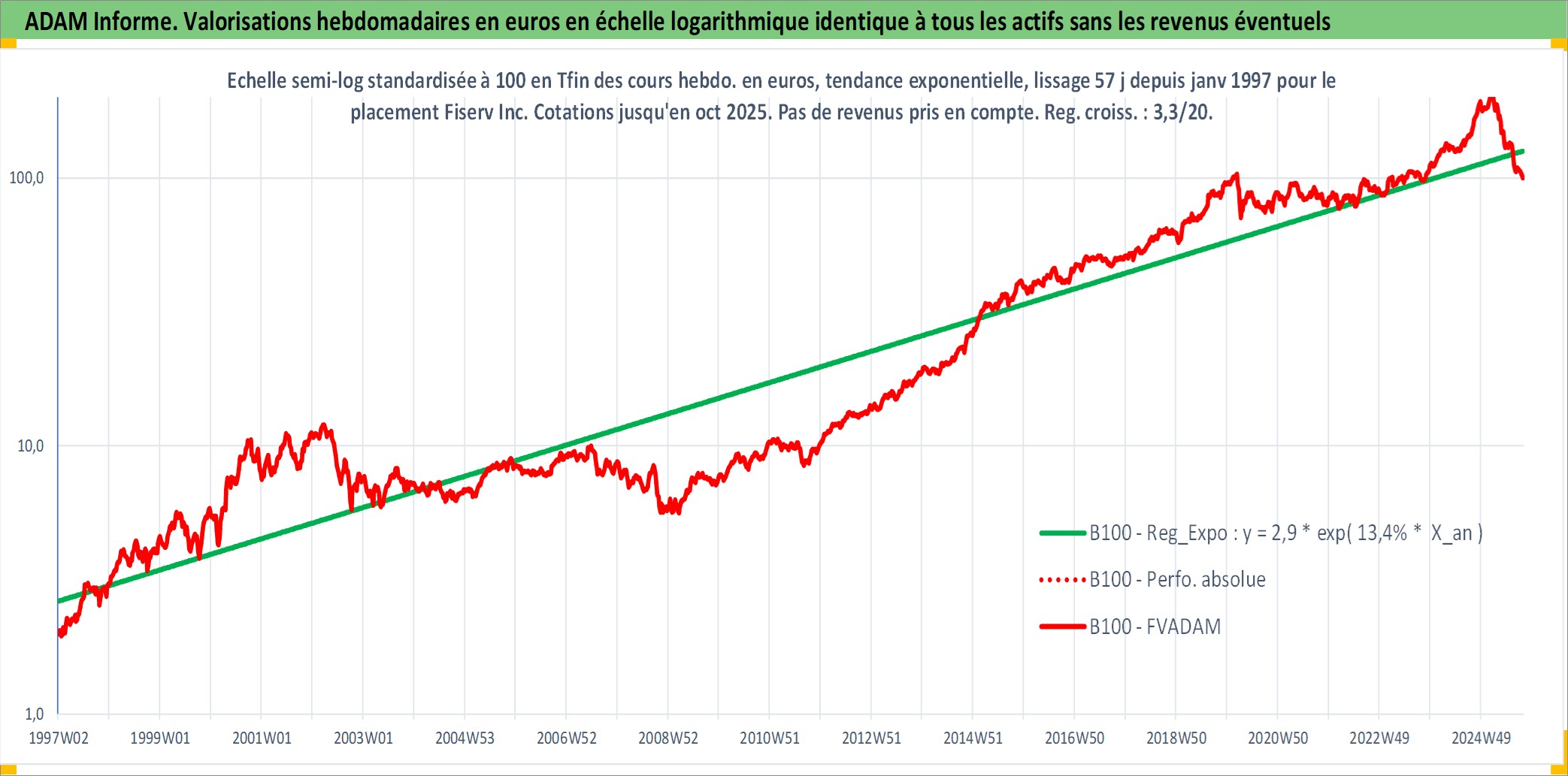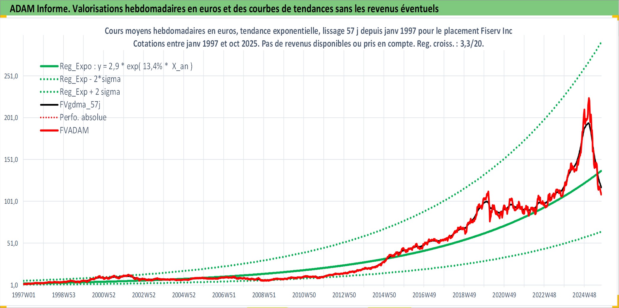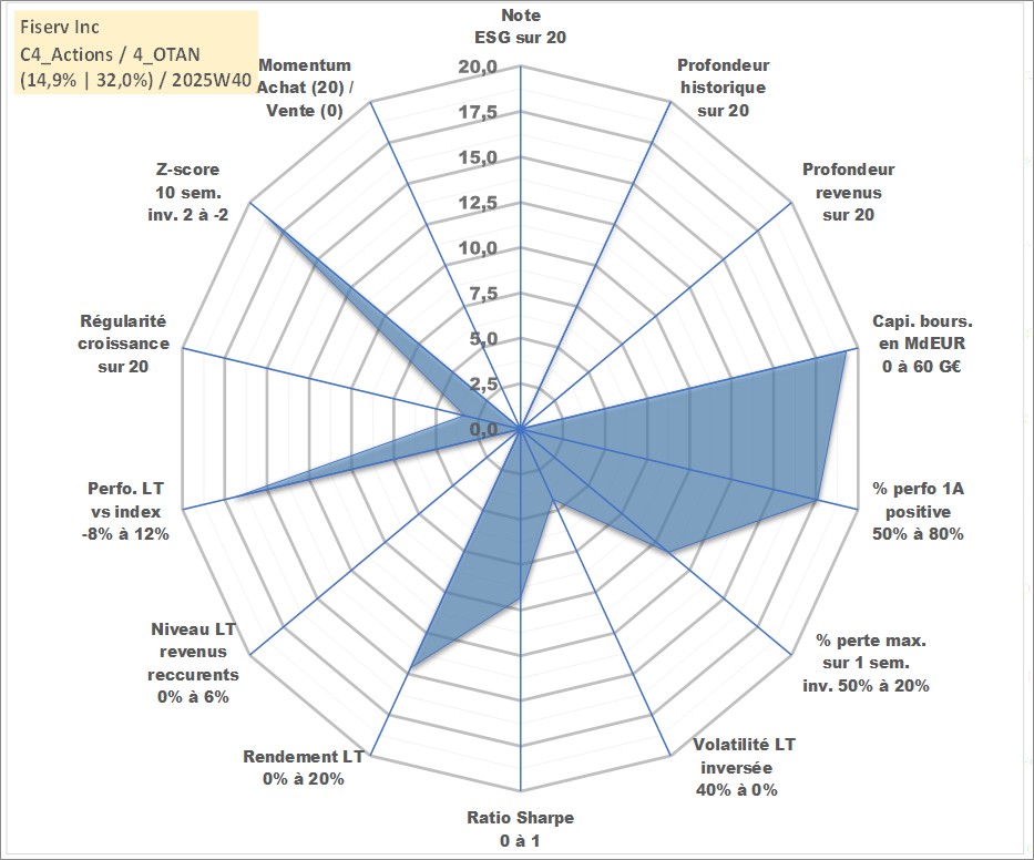 Site dédié aux investisseursPage dédiée sur site financeAnalyse des valorisations hebdomadaires de l'action Fiserv Inc. Cet actif est cote en USD. Les valorisations sont en contrevaleur EURO et couvrent les semaines 1997W01 a 2025W40. Les revenus de cet actif financier ne sont pas connus car non existants ou non disponibles sur le site Yahoo Finance. La note ESG de cet actif n'est pas connue.