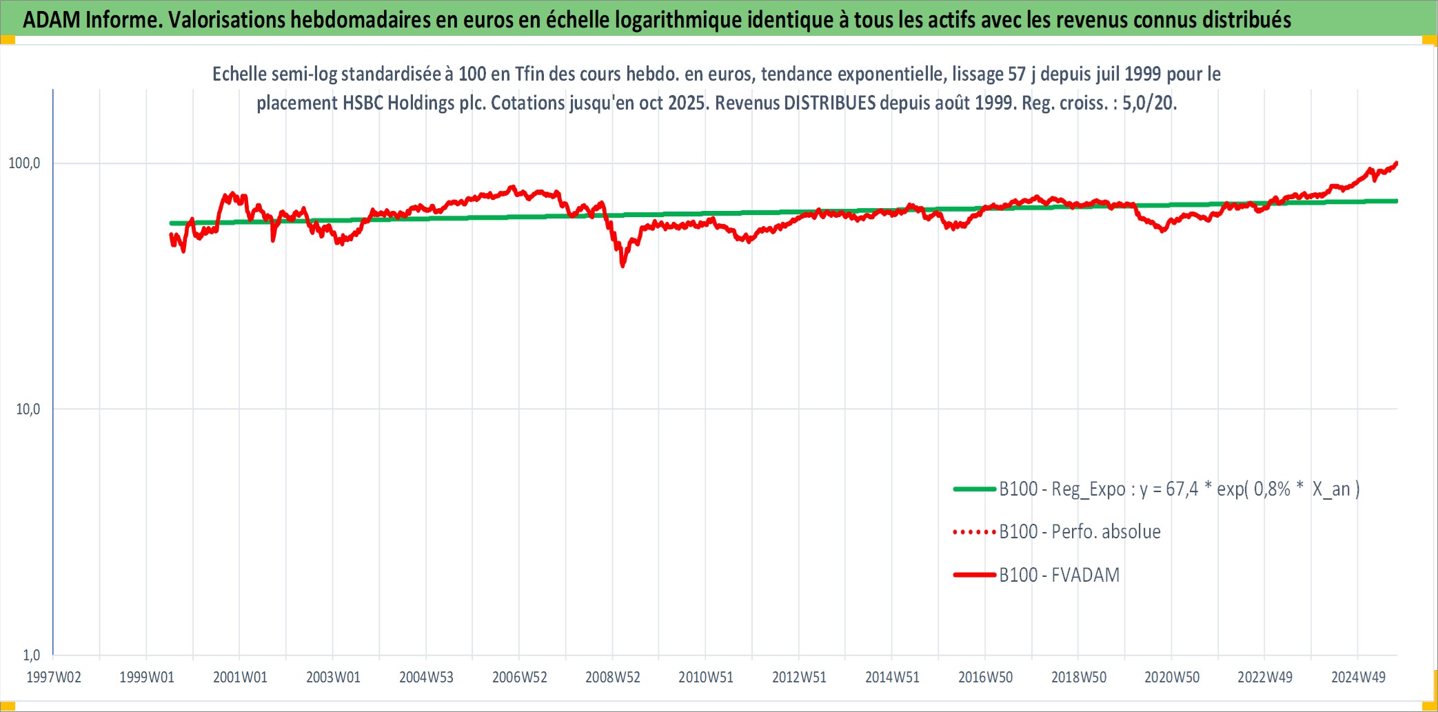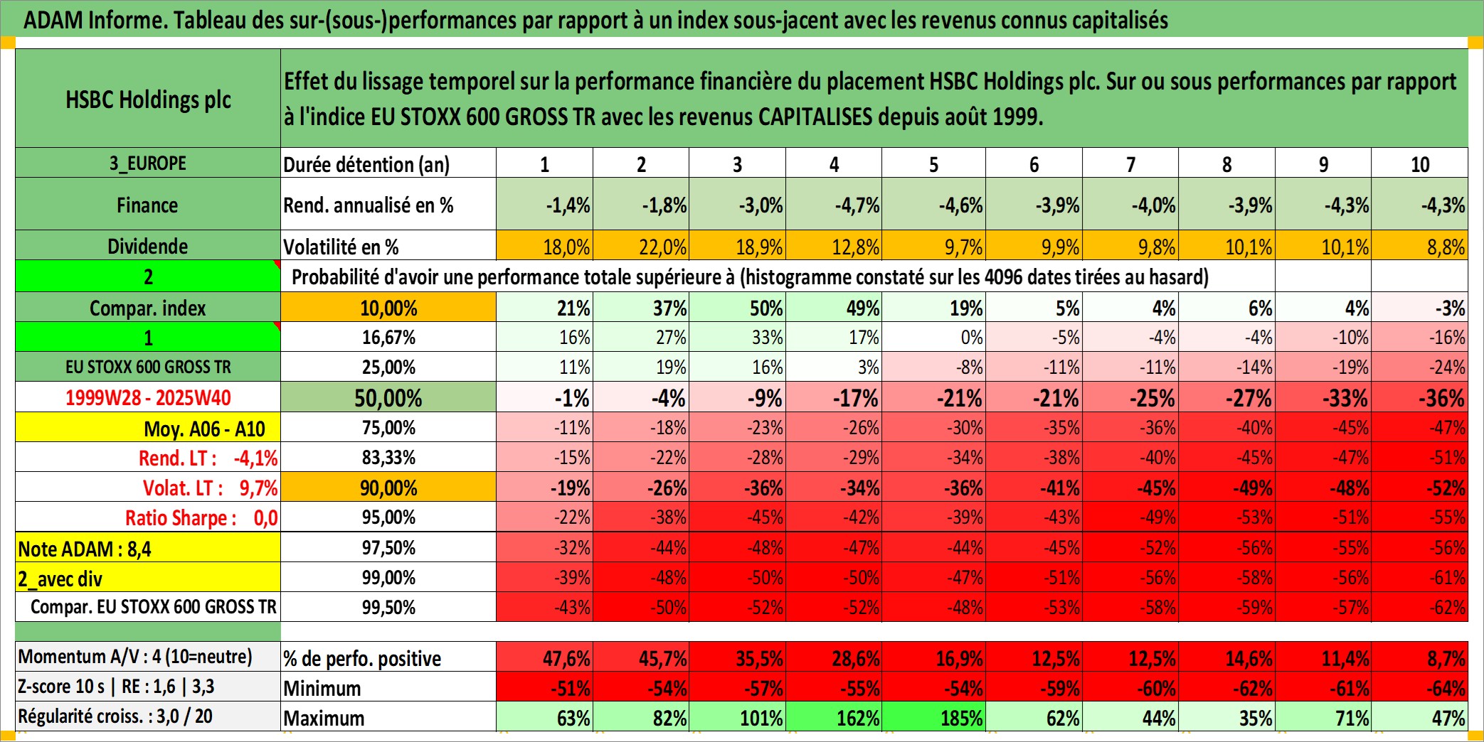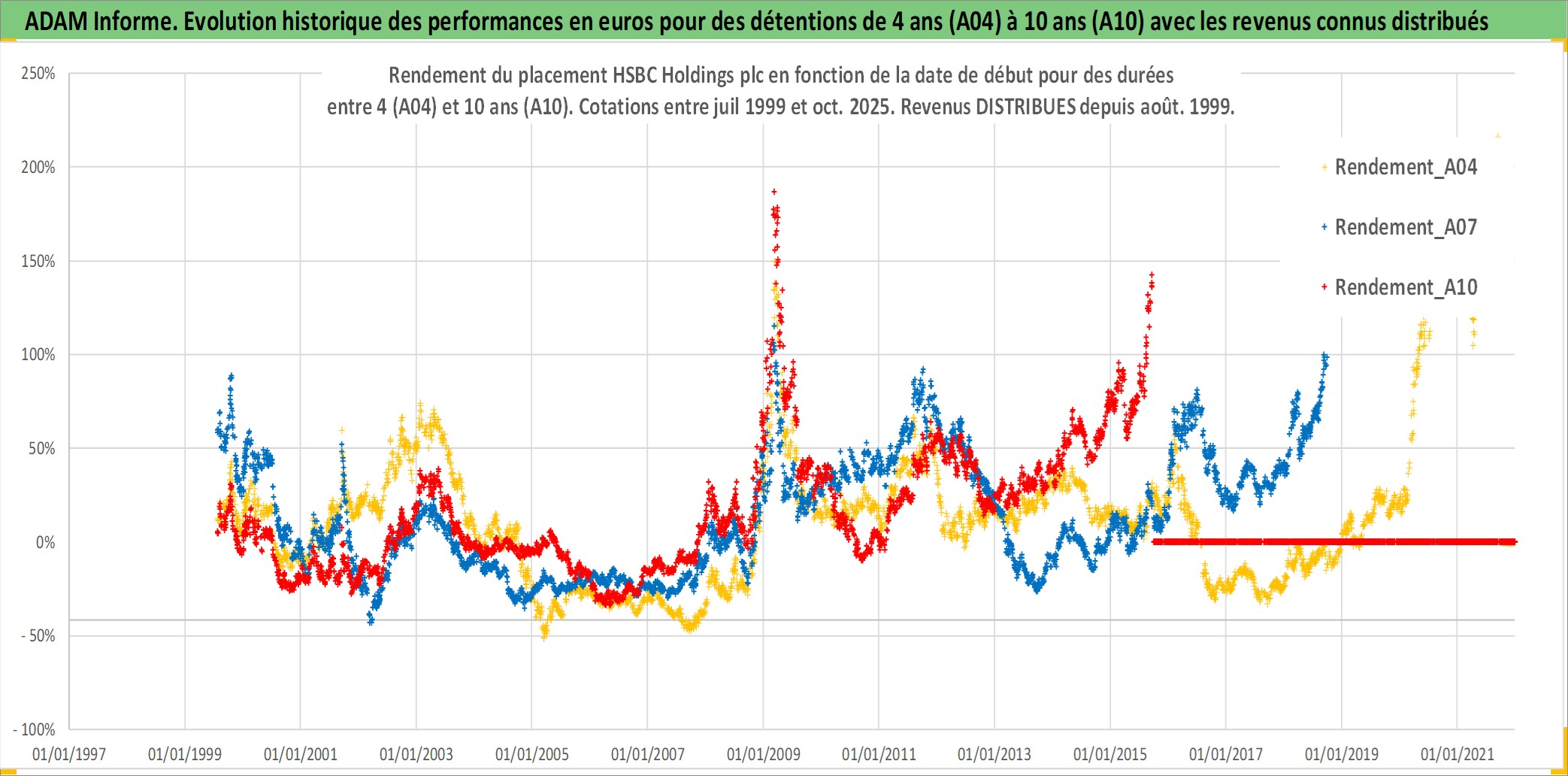 Site dédié aux investisseursPage dédiée sur site financeAnalyse des valorisations hebdomadaires de l'action HSBC Holdings plc. Cet actif est cote en USD. Les valorisations sont en contrevaleur EURO et couvrent les semaines 1999W28 a 2025W40. Les revenus de cet actif financier sont pris en compte depuis la semaine 1999W33. La note ESG de cet actif n'est pas connue.