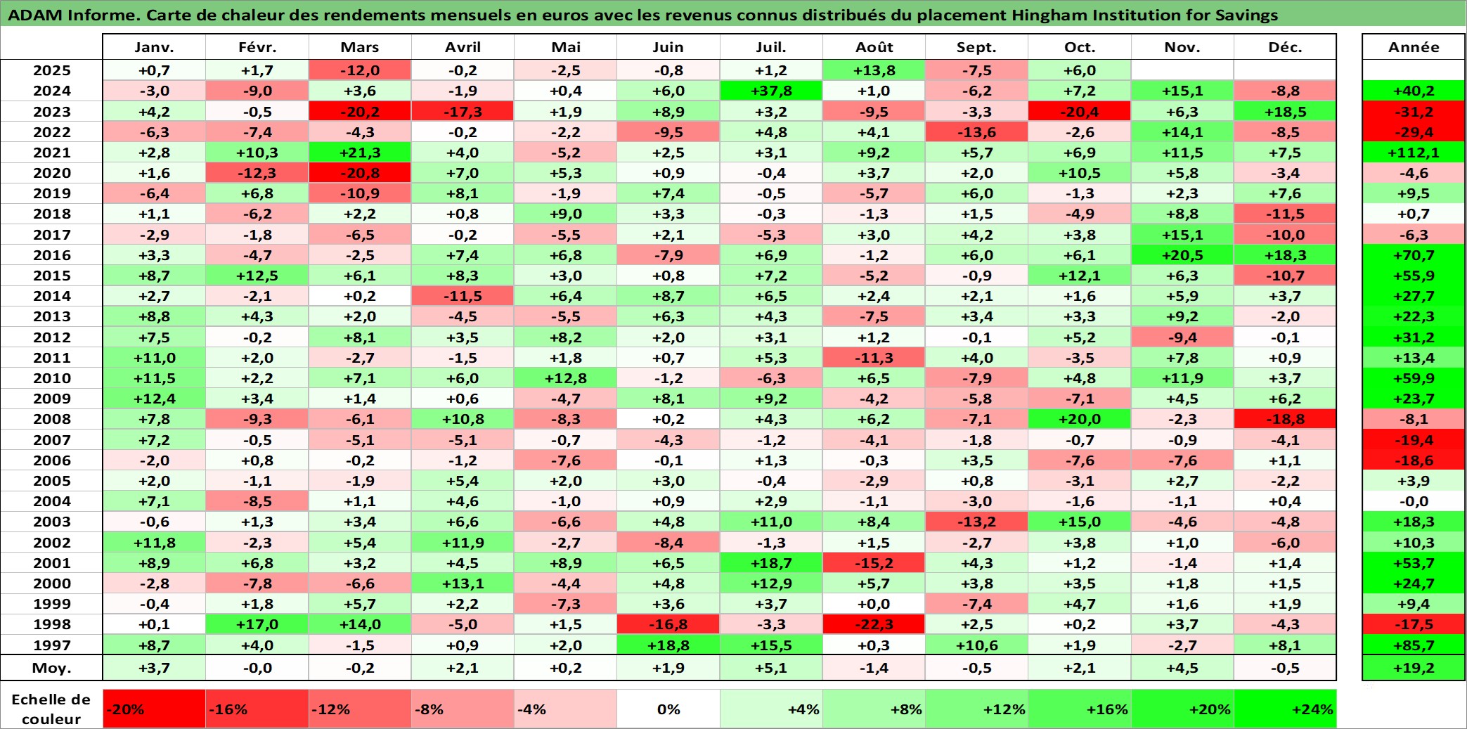 Site dédié aux investisseursPage dédiée sur site financeAnalyse des valorisations hebdomadaires de l'action Hingham Institution for Savings. Cet actif est cote en USD. Les valorisations sont en contrevaleur EURO et couvrent les semaines 1997W01 a 2025W40. Les revenus de cet actif financier sont pris en compte depuis la semaine 1997W02. La note ESG de cet actif n'est pas connue.