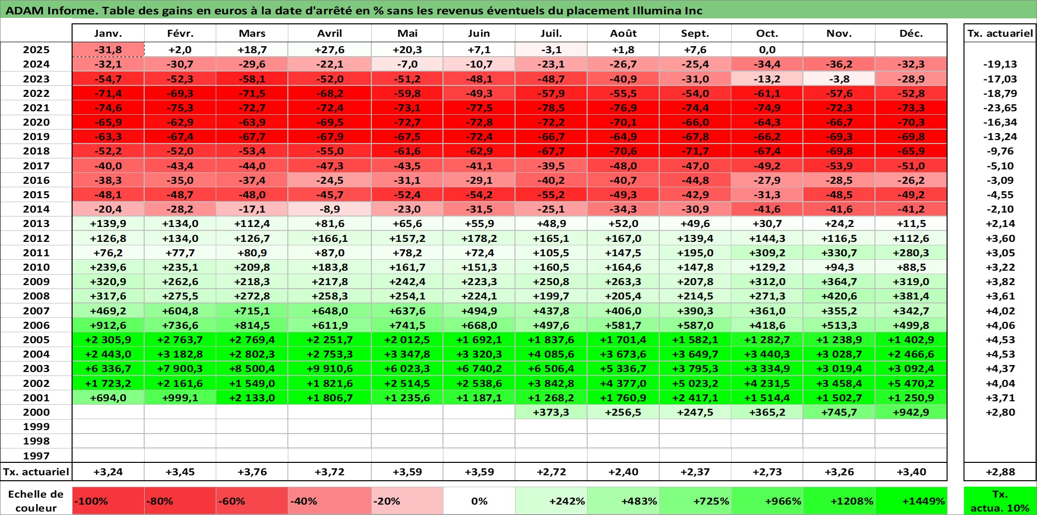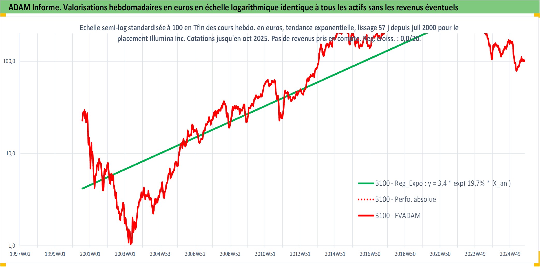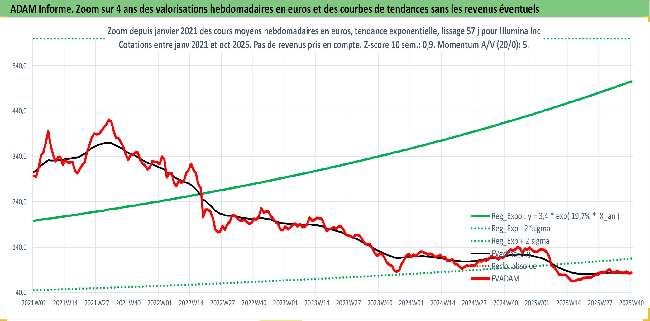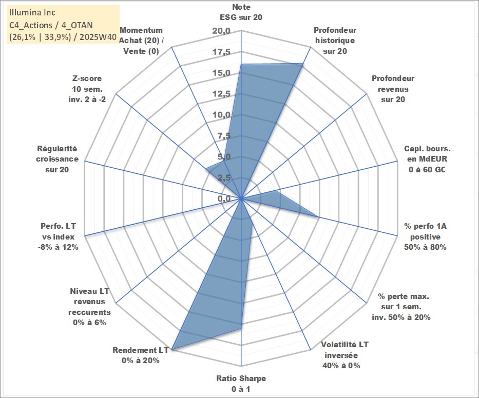Site dédié aux investisseursPage dédiée sur site financeAnalyse des valorisations hebdomadaires de l'action Illumina Inc. Cet actif est cote en USD. Les valorisations sont en contrevaleur EURO et couvrent les semaines 2000W30 a 2025W40. Les revenus de cet actif financier ne sont pas connus car non existants ou non disponibles sur le site Yahoo Finance. La note globale ESG de cet actif est estimee a 16.0 (apres rebasage entre 0 et 20).