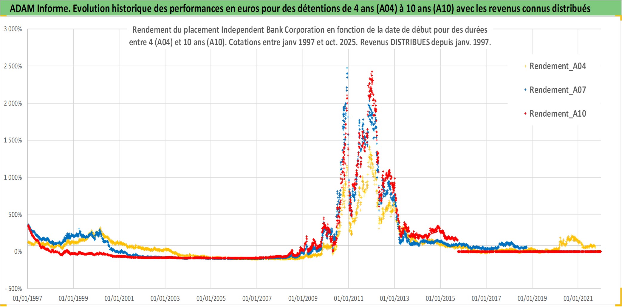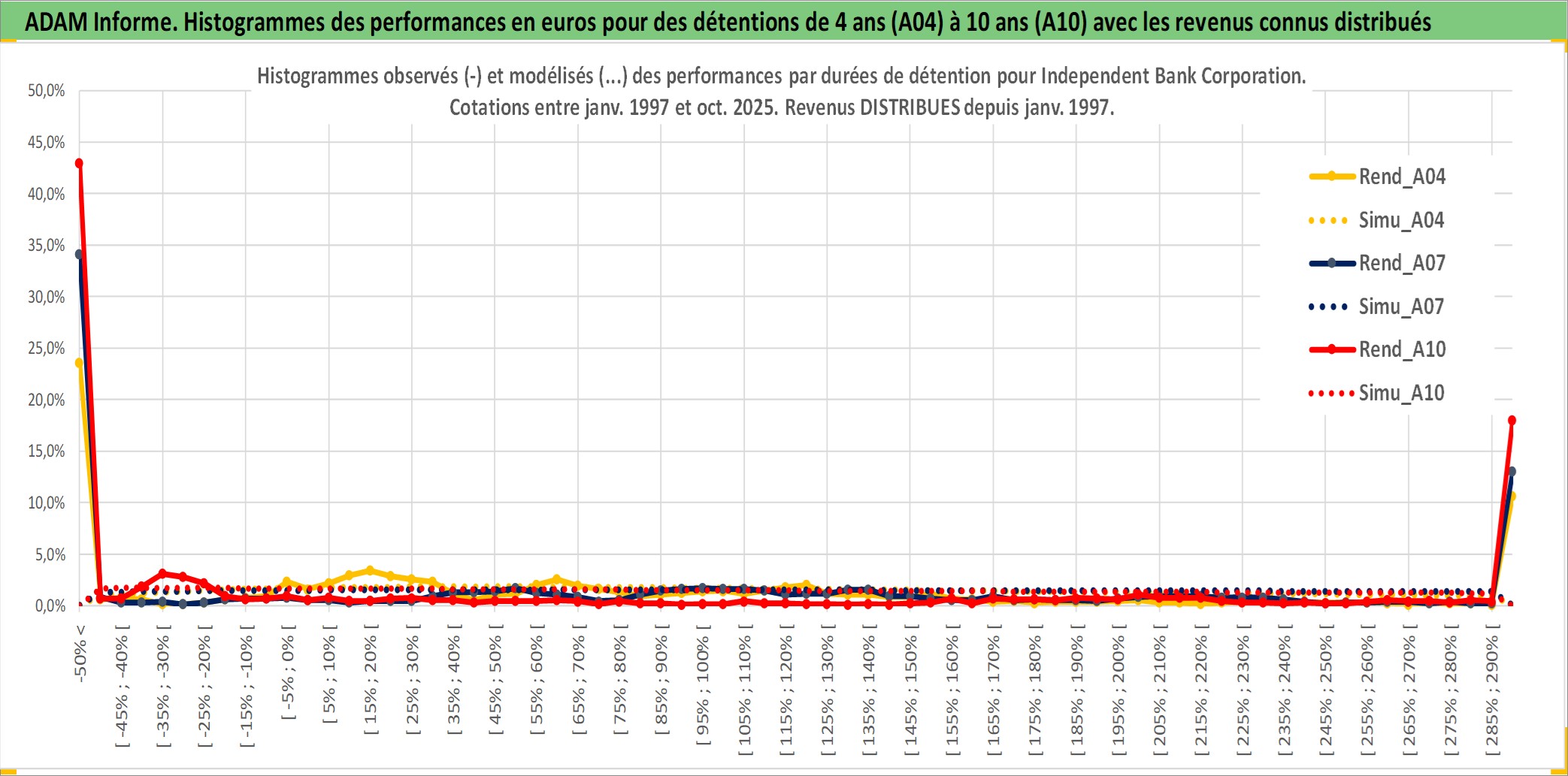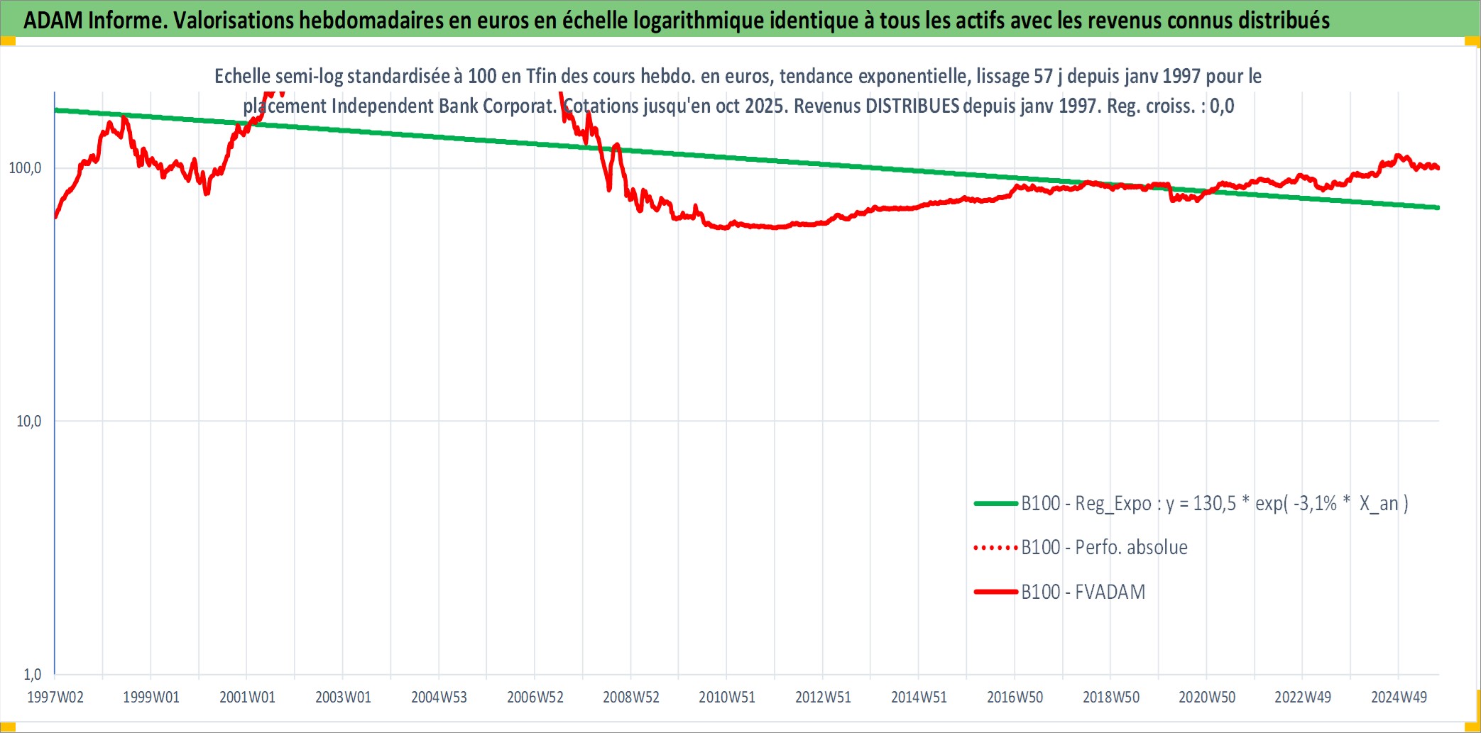 Site dédié aux investisseursPage dédiée sur site financeAnalyse des valorisations hebdomadaires de l'action Independent Bank Corporation. Cet actif est cote en USD. Les valorisations sont en contrevaleur EURO et couvrent les semaines 1997W01 a 2025W40. Les revenus de cet actif financier sont pris en compte depuis la semaine 1997W01. La note ESG de cet actif n'est pas connue.