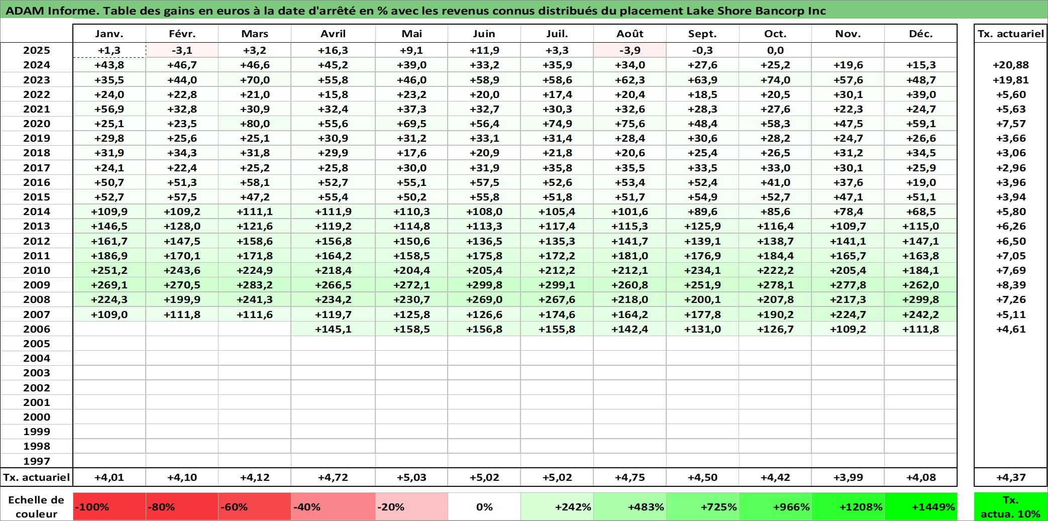 Site dédié aux investisseursPage dédiée sur site financeAnalyse des valorisations hebdomadaires de l'action Lake Shore Bancorp Inc. Cet actif est cote en USD. Les valorisations sont en contrevaleur EURO et couvrent les semaines 2006W14 a 2025W40. Les revenus de cet actif financier sont pris en compte depuis la semaine 2006W45. La note ESG de cet actif n'est pas connue.