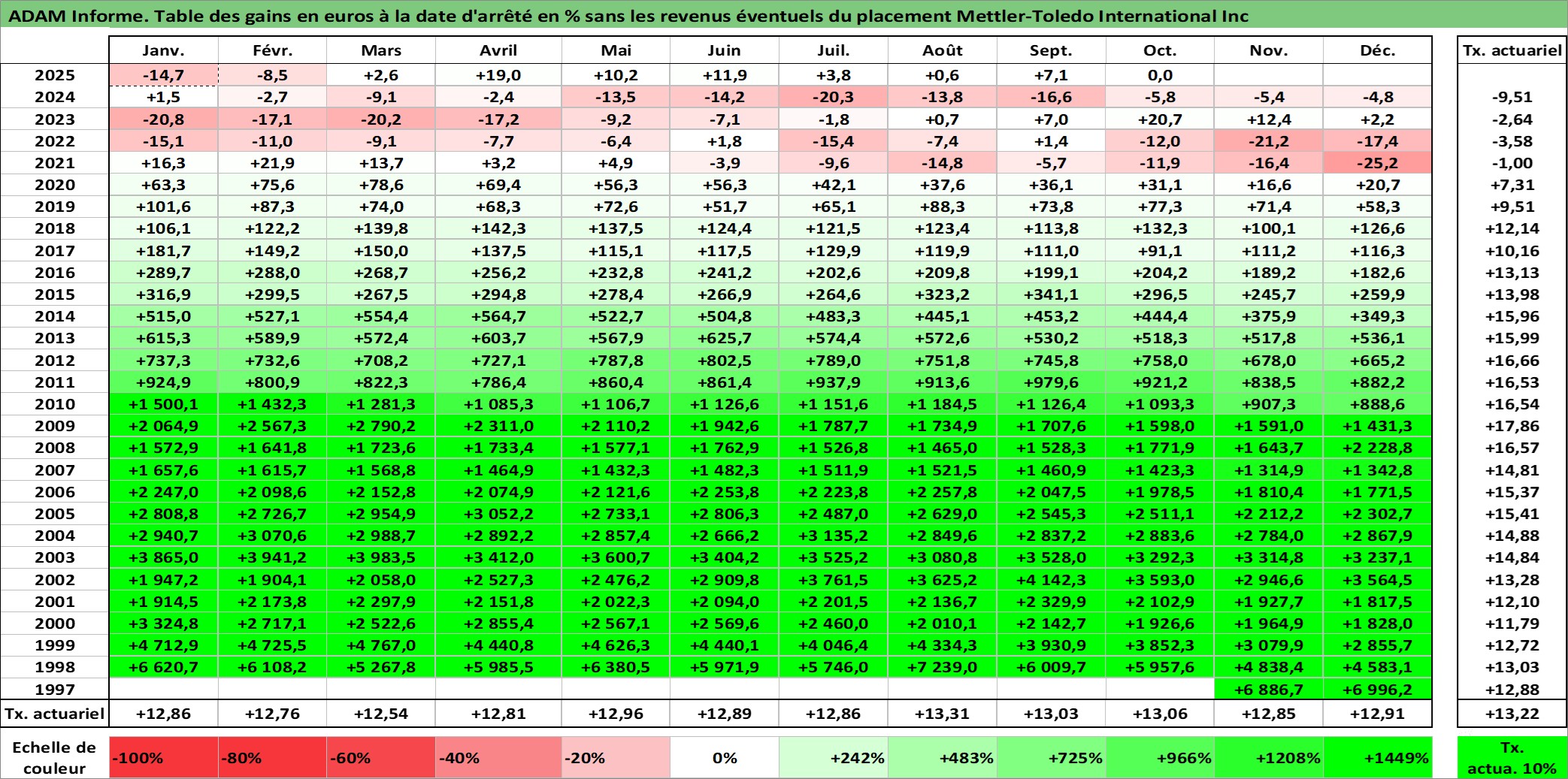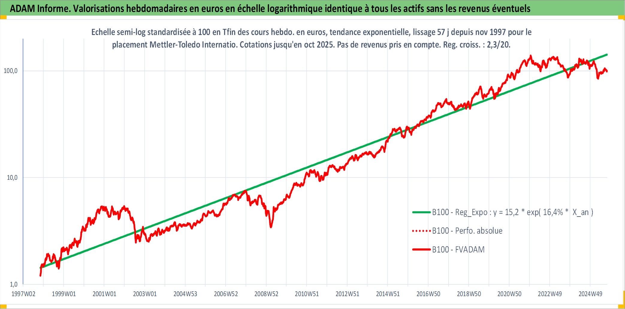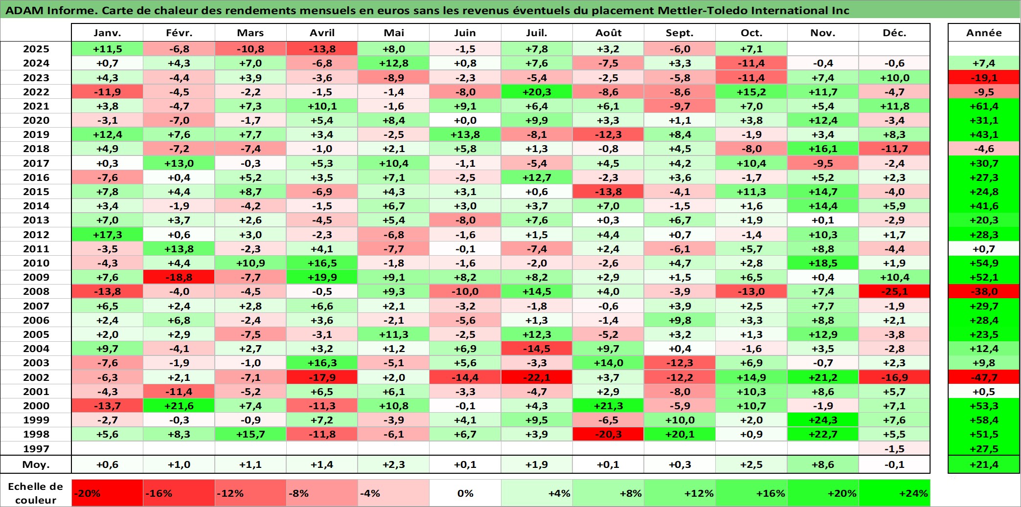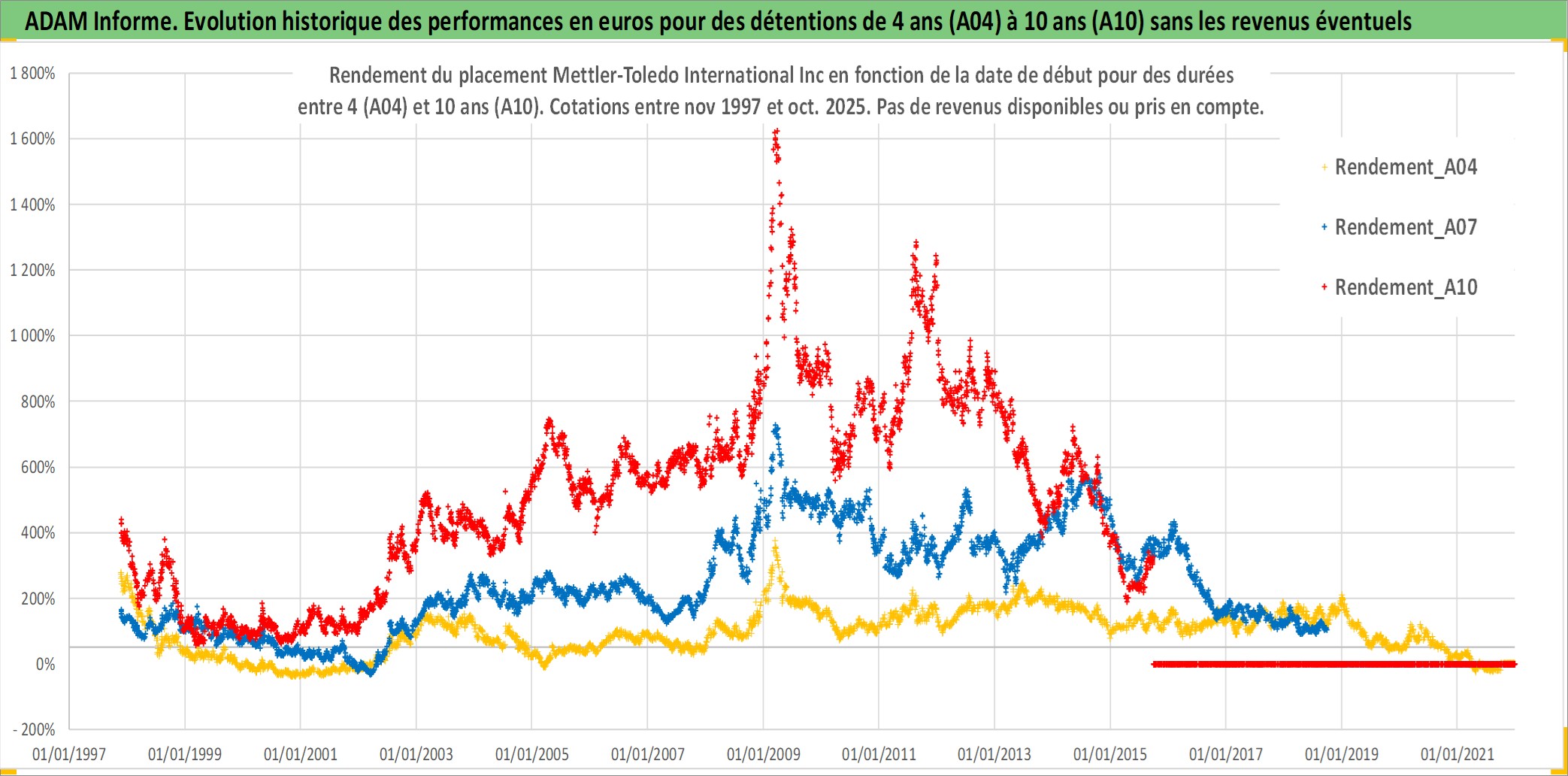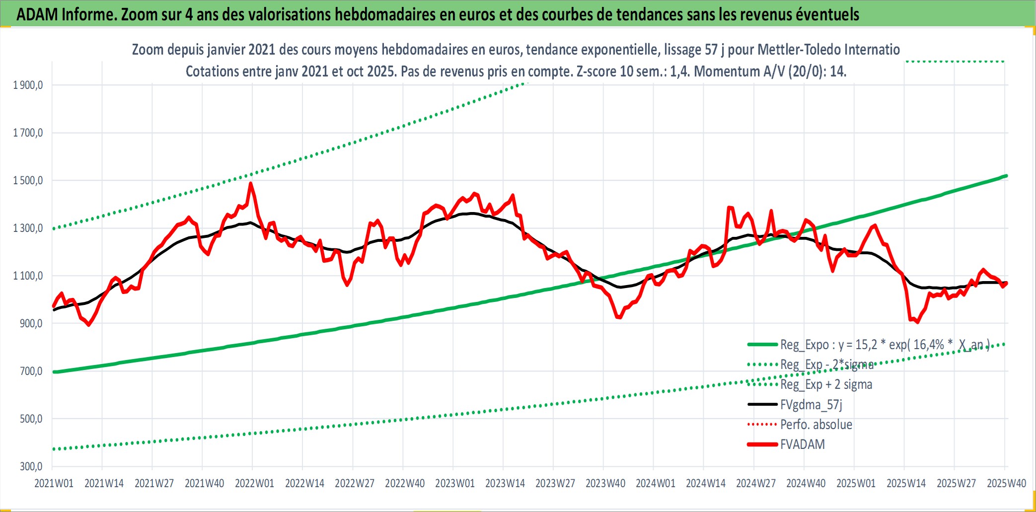Site dédié aux investisseursPage dédiée sur site financeAnalyse des valorisations hebdomadaires de l'action Mettler-Toledo International Inc. Cet actif est cote en USD. Les valorisations sont en contrevaleur EURO et couvrent les semaines 1997W46 a 2025W40. Les revenus de cet actif financier ne sont pas connus car non existants ou non disponibles sur le site Yahoo Finance. La note globale ESG de cet actif est estimee a 15.0 (apres rebasage entre 0 et 20).
