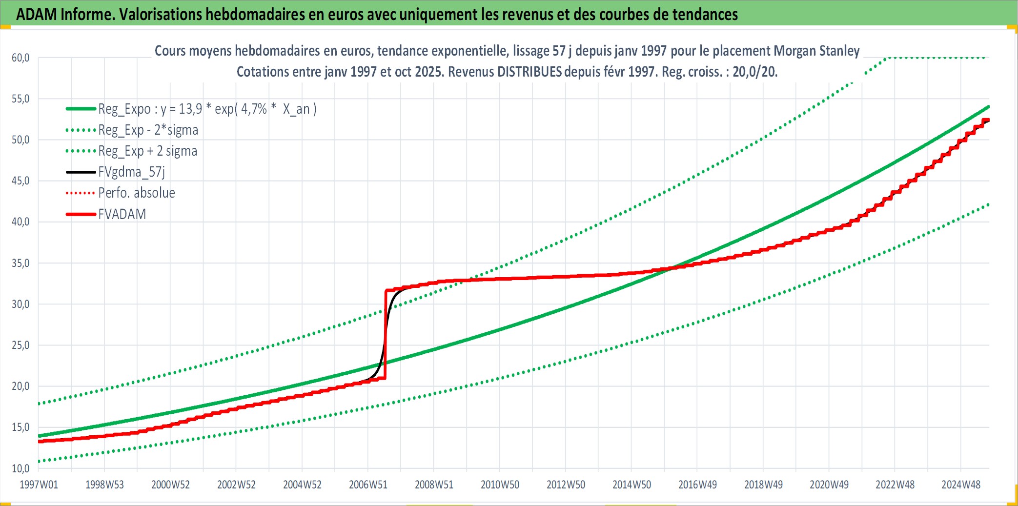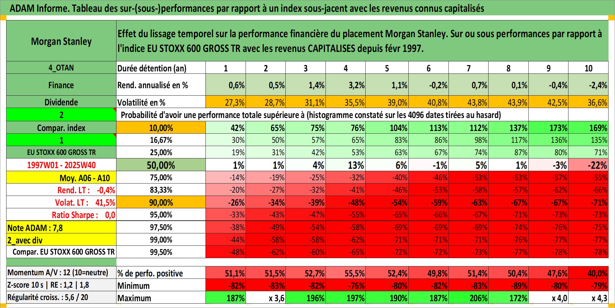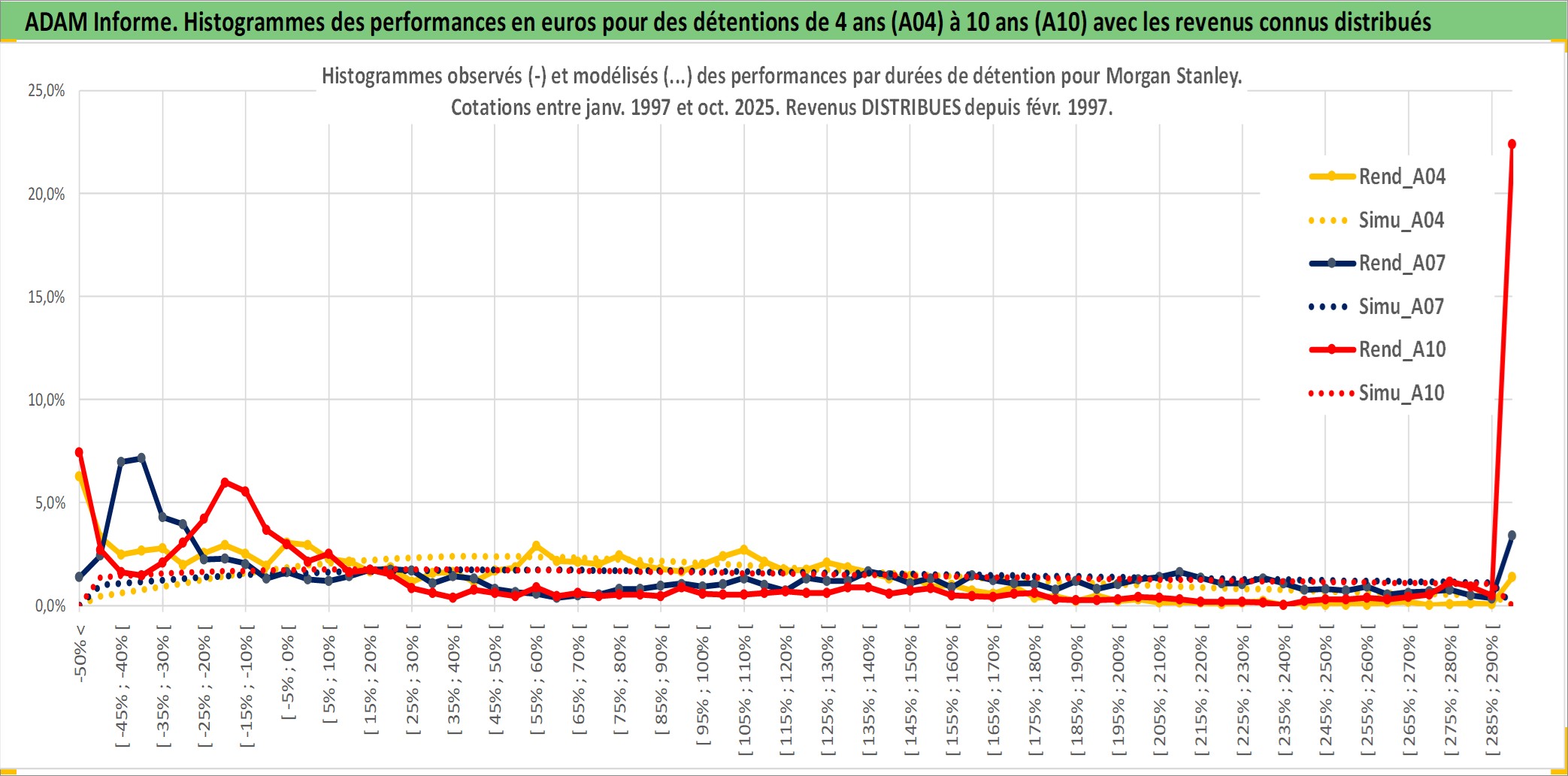 Site dédié aux investisseursPage dédiée sur site financeAnalyse des valorisations hebdomadaires de l'action Morgan Stanley. Cet actif est cote en USD. Les valorisations sont en contrevaleur EURO et couvrent les semaines 1997W01 a 2025W40. Les revenus de cet actif financier sont pris en compte depuis la semaine 1997W09. La note globale ESG de cet actif est estimee a 9.0 (apres rebasage entre 0 et 20).