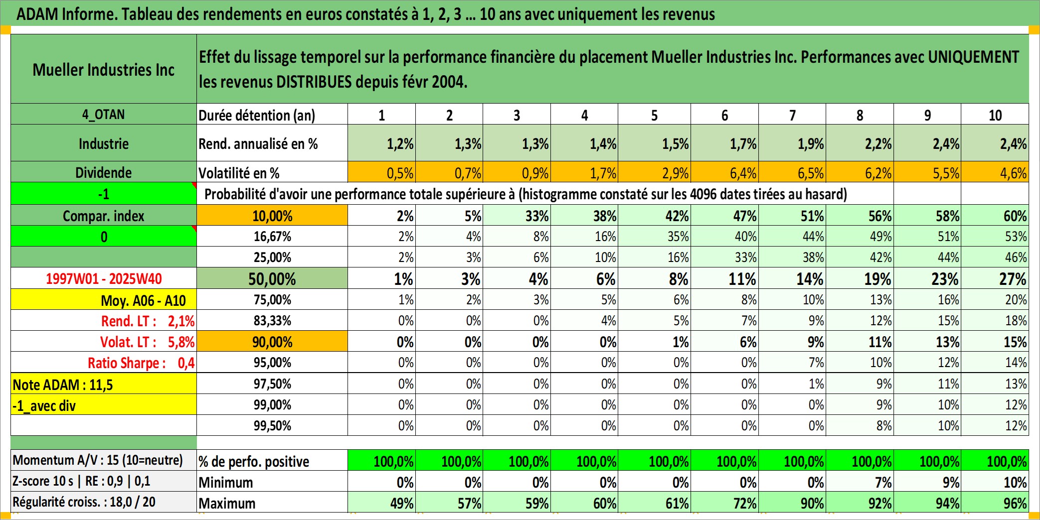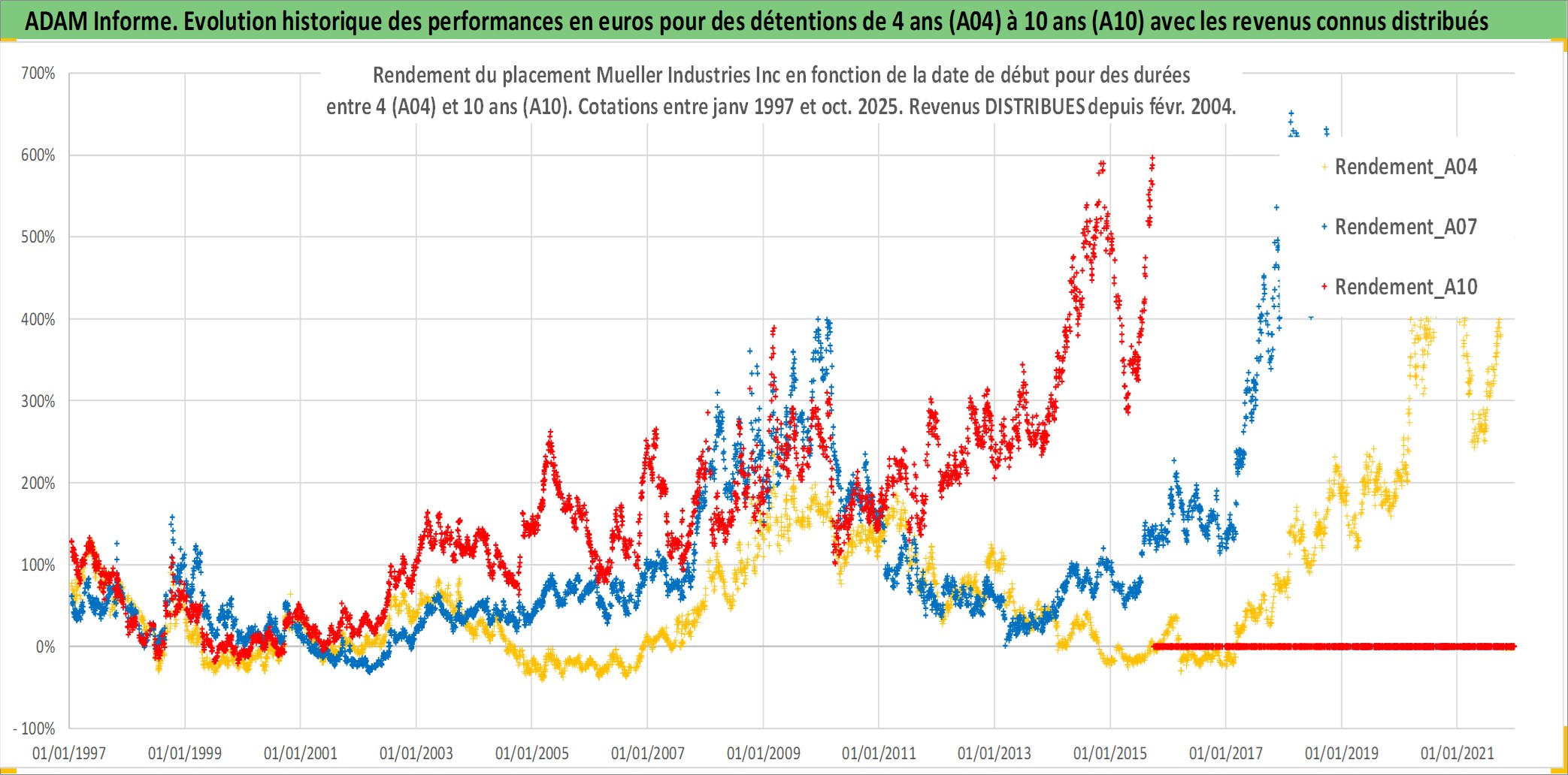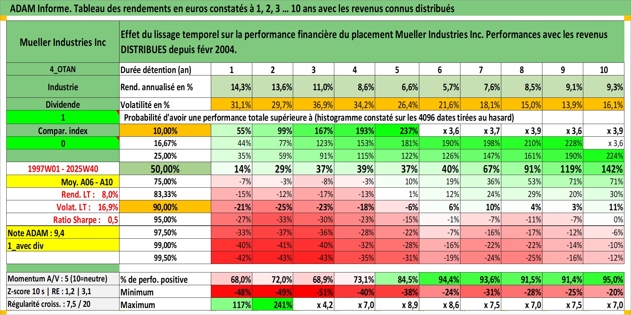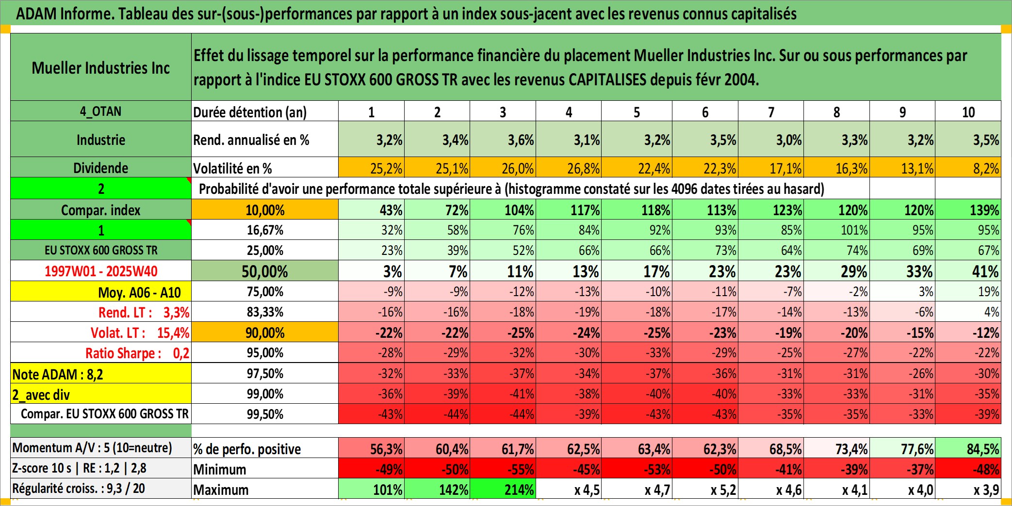 Site dédié aux investisseursPage dédiée sur site financeAnalyse des valorisations hebdomadaires de l'action Mueller Industries Inc. Cet actif est cote en USD. Les valorisations sont en contrevaleur EURO et couvrent les semaines 1997W01 a 2025W40. Les revenus de cet actif financier sont pris en compte depuis la semaine 2004W09. La note ESG de cet actif n'est pas connue.