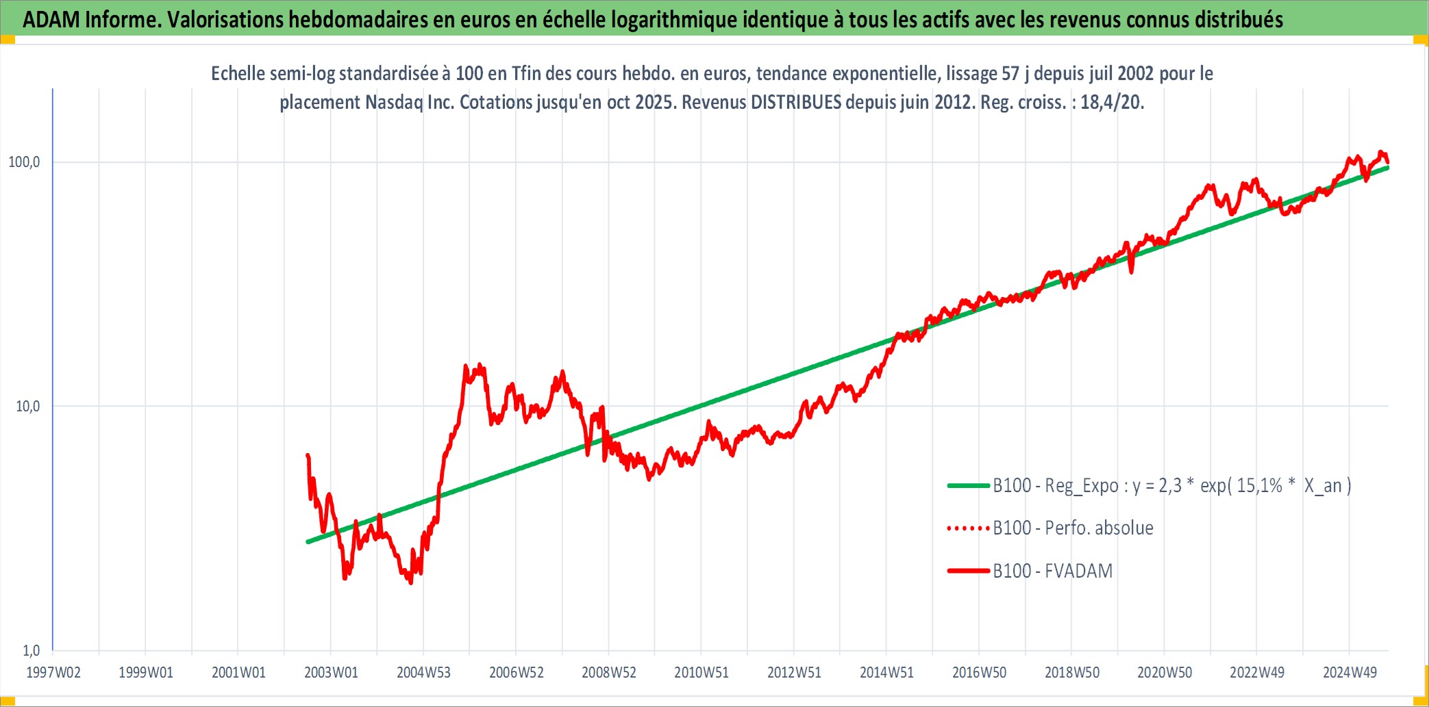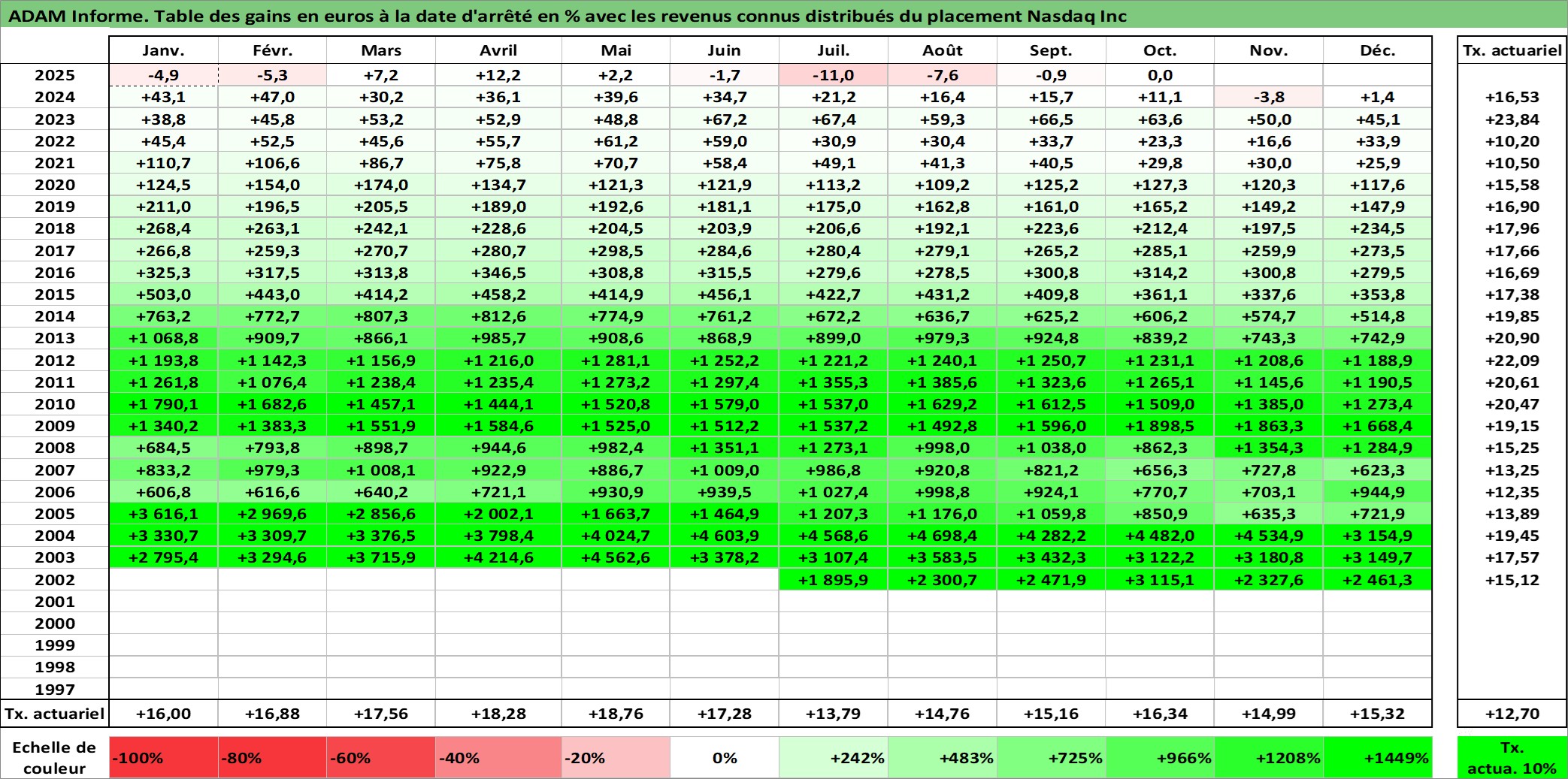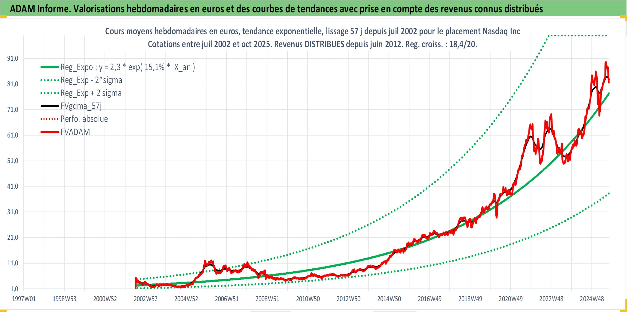 Site dédié aux investisseursPage dédiée sur site financeAnalyse des valorisations hebdomadaires de l'action Nasdaq Inc. Cet actif est cote en USD. Les valorisations sont en contrevaleur EURO et couvrent les semaines 2002W27 a 2025W40. Les revenus de cet actif financier sont pris en compte depuis la semaine 2012W24. La note globale ESG de cet actif est estimee a 15.0 (apres rebasage entre 0 et 20).