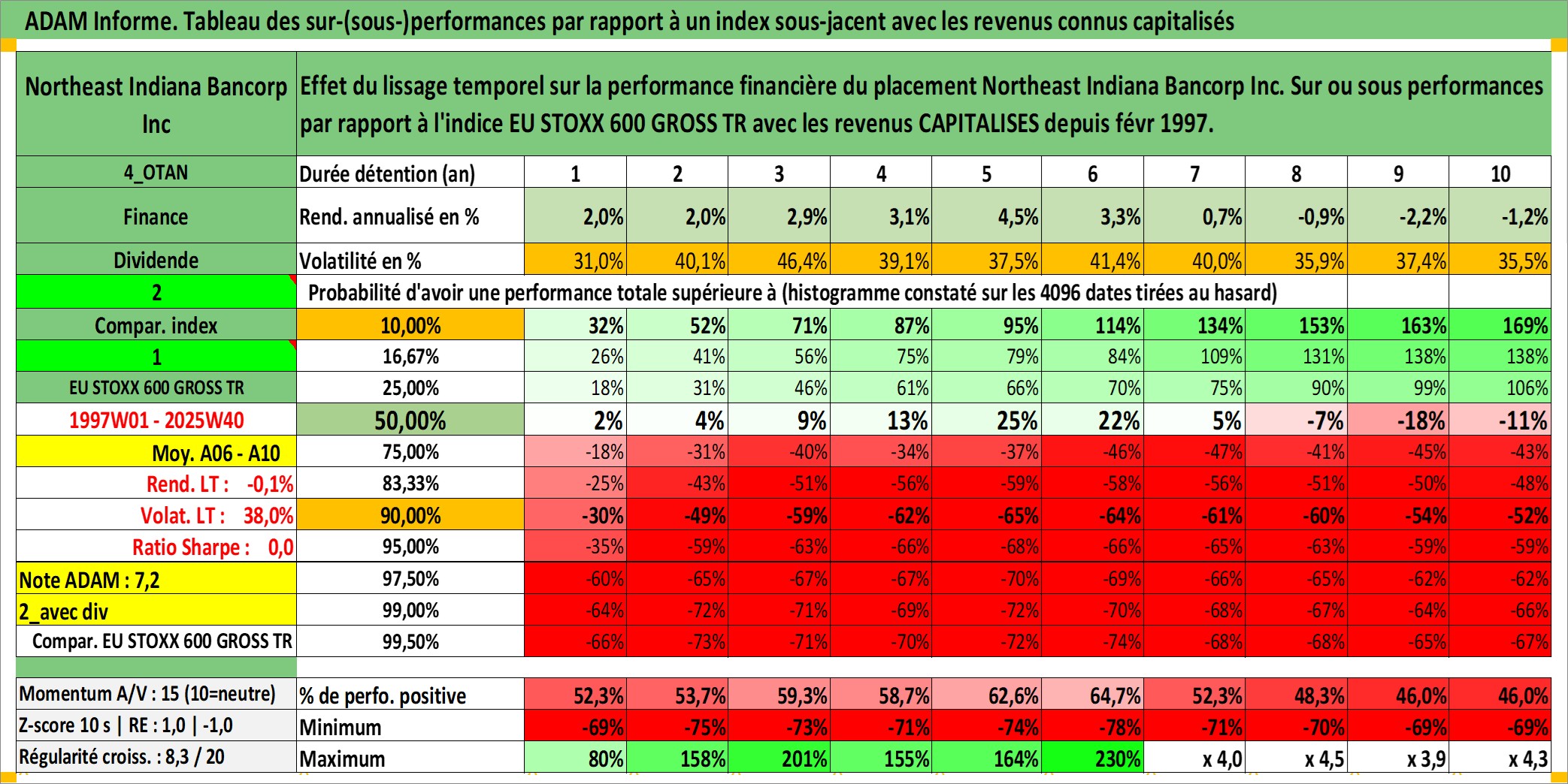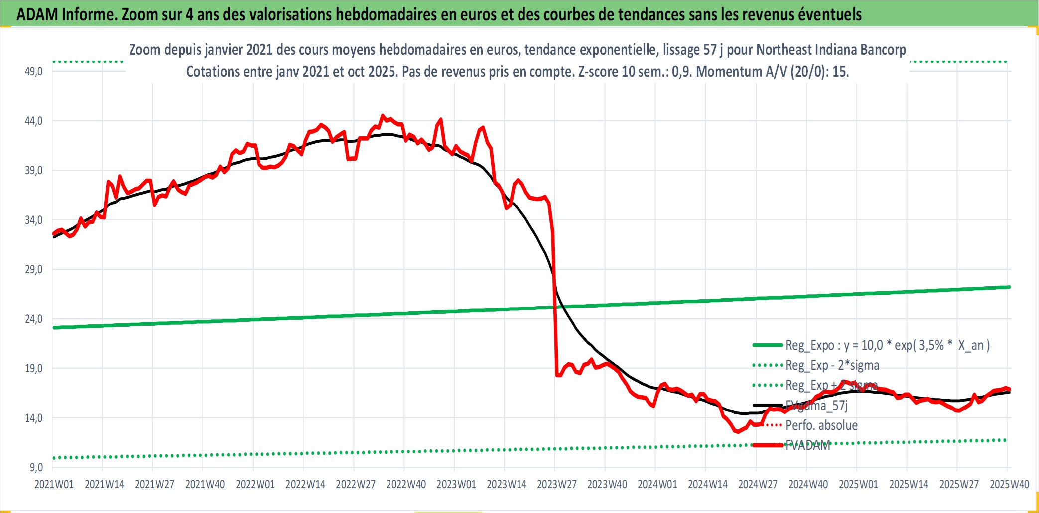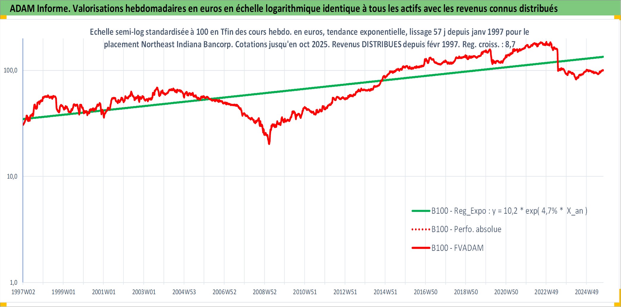 Site dédié aux investisseursPage dédiée sur site financeAnalyse des valorisations hebdomadaires de l'action Northeast Indiana Bancorp Inc. Cet actif est cote en USD. Les valorisations sont en contrevaleur EURO et couvrent les semaines 1997W01 a 2025W40. Les revenus de cet actif financier sont pris en compte depuis la semaine 1997W06. La note ESG de cet actif n'est pas connue.