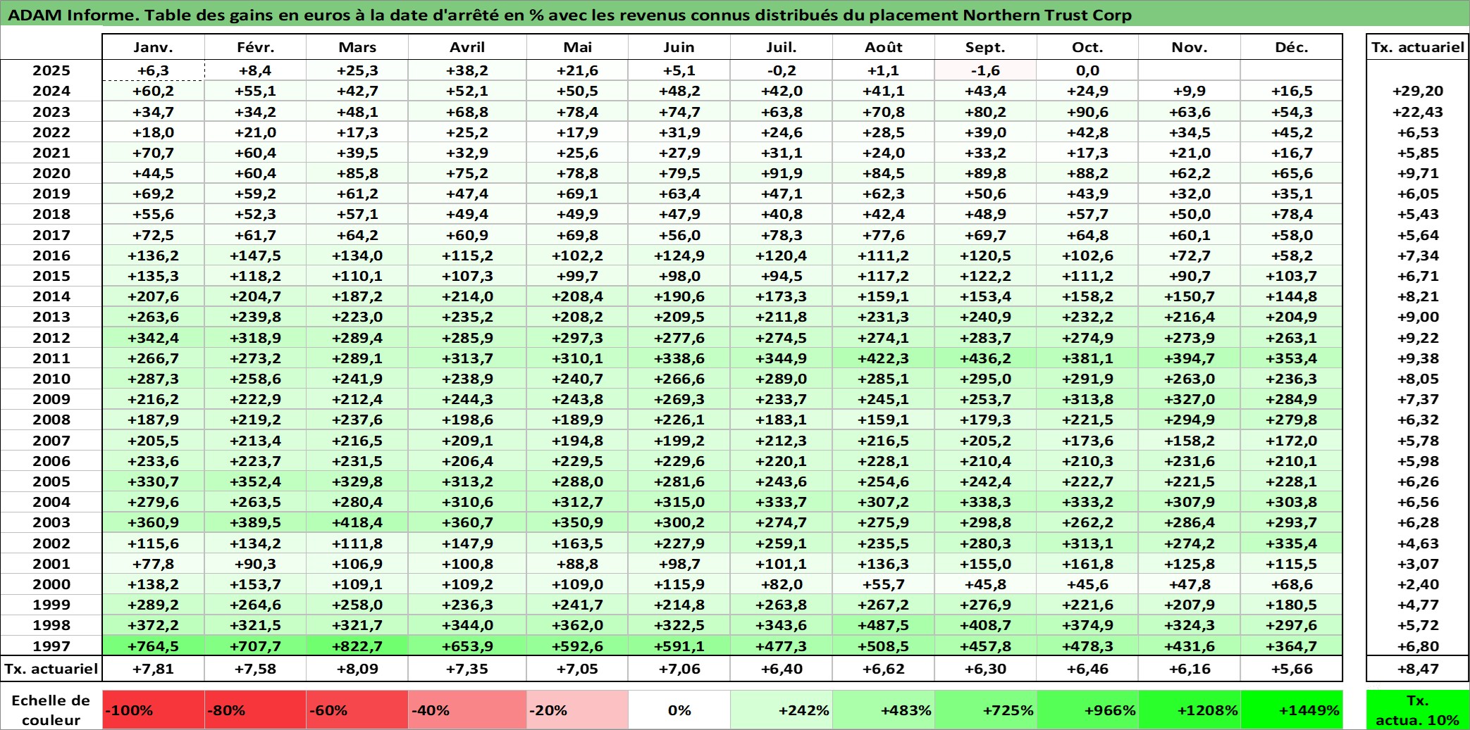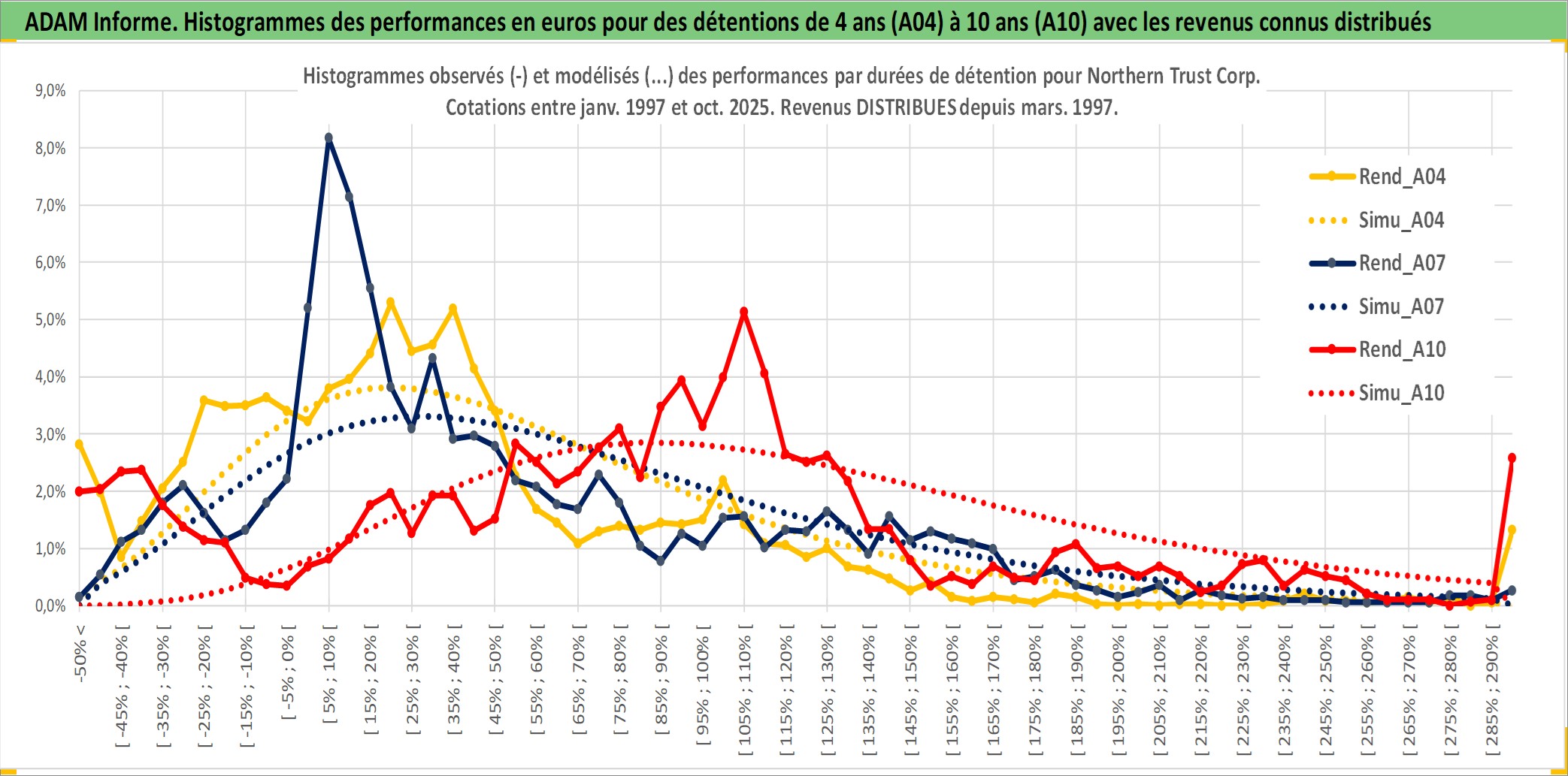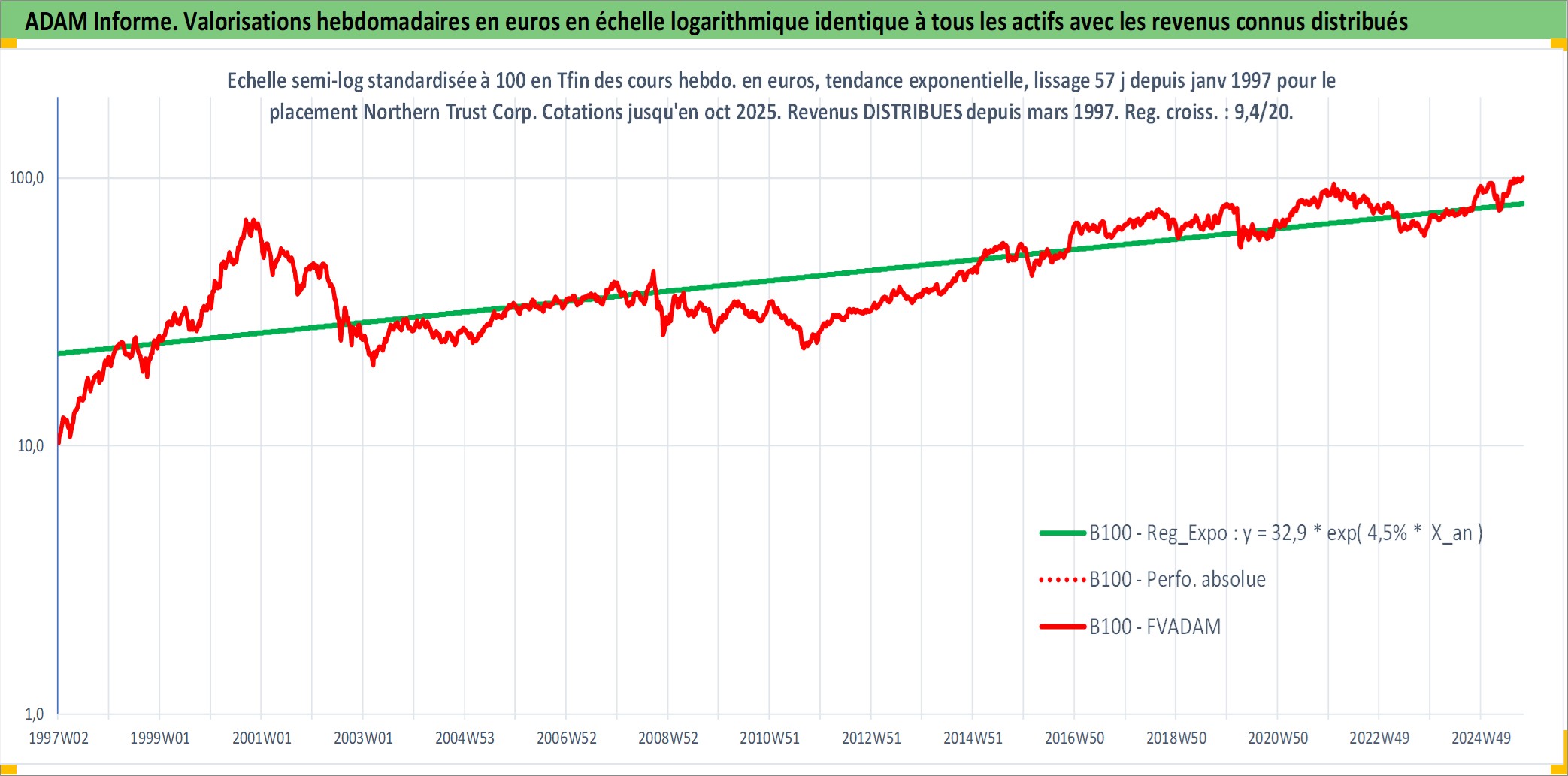 Site dédié aux investisseursPage dédiée sur site financeAnalyse des valorisations hebdomadaires de l'action Northern Trust Corp. Cet actif est cote en USD. Les valorisations sont en contrevaleur EURO et couvrent les semaines 1997W01 a 2025W40. Les revenus de cet actif financier sont pris en compte depuis la semaine 1997W10. La note globale ESG de cet actif est estimee a 8.0 (apres rebasage entre 0 et 20).