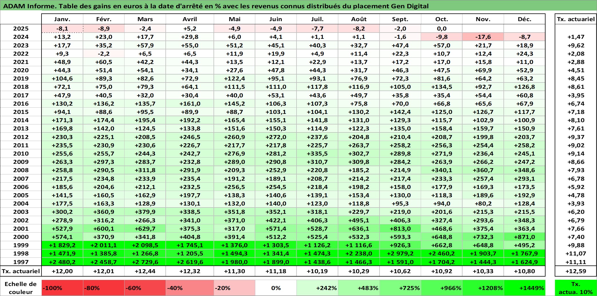 Dernière perfo 1 an en %