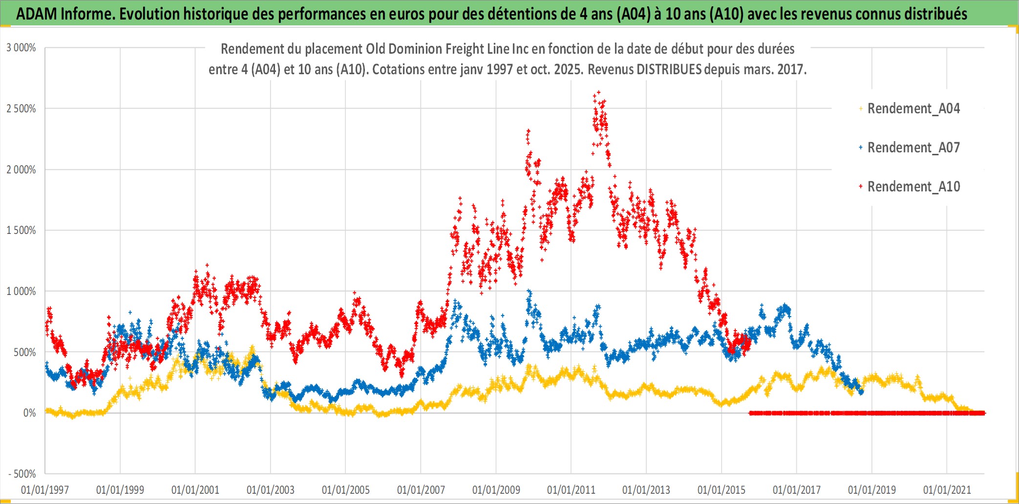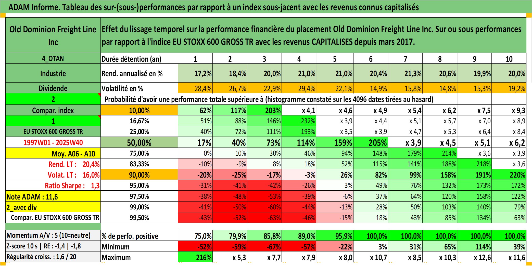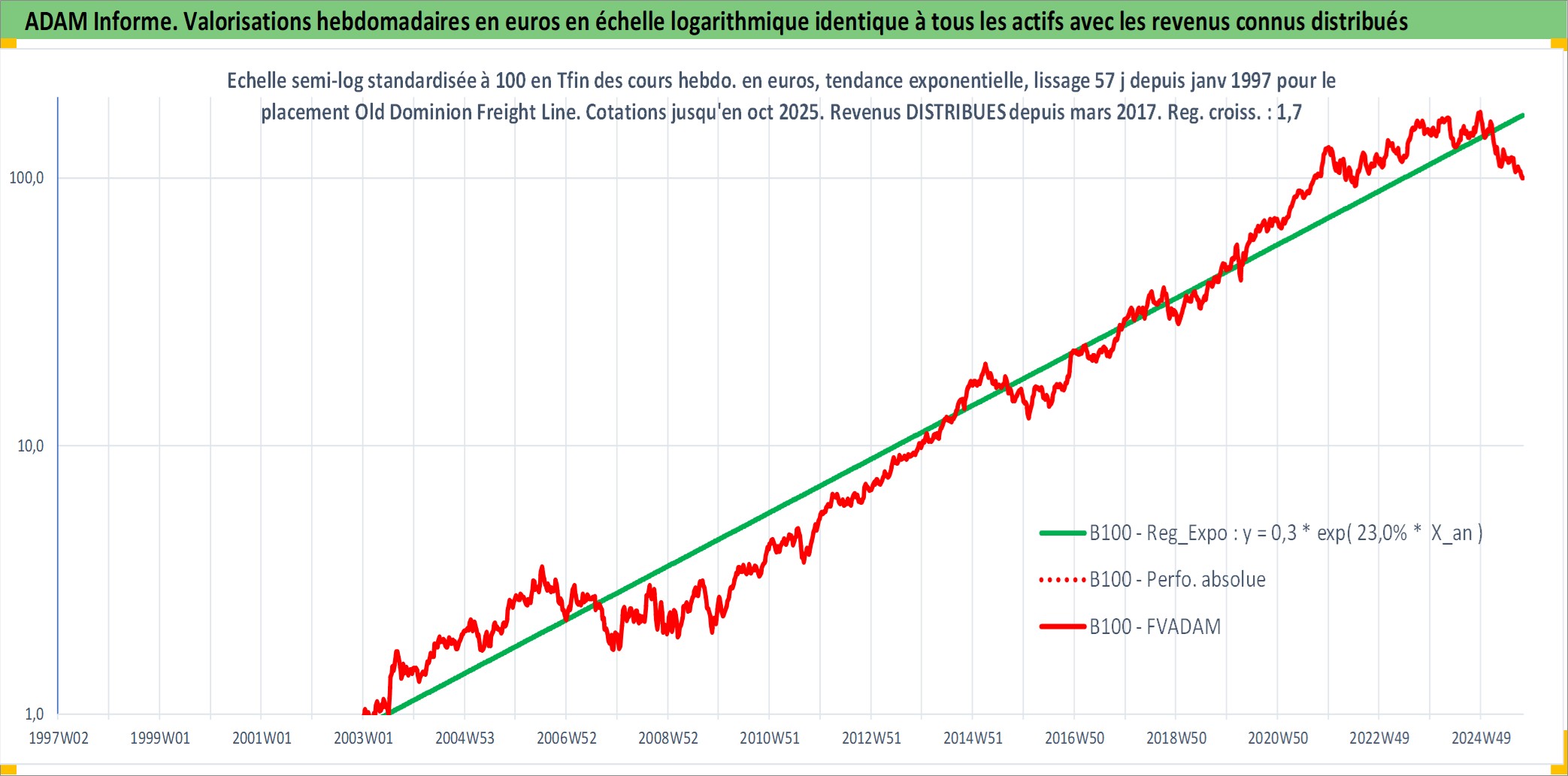 Site dédié aux investisseursPage dédiée sur site financeAnalyse des valorisations hebdomadaires de l'action Old Dominion Freight Line Inc. Cet actif est cote en USD. Les valorisations sont en contrevaleur EURO et couvrent les semaines 1997W01 a 2025W40. Les revenus de cet actif financier sont pris en compte depuis la semaine 2017W09. La note ESG de cet actif n'est pas connue.