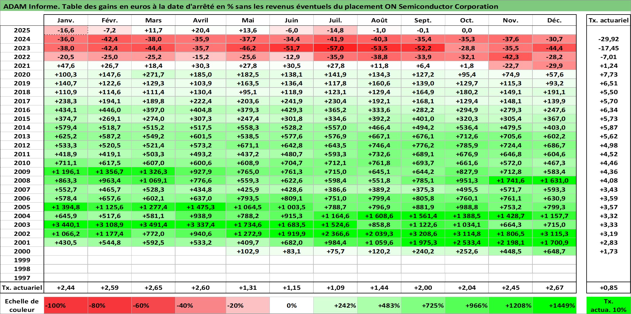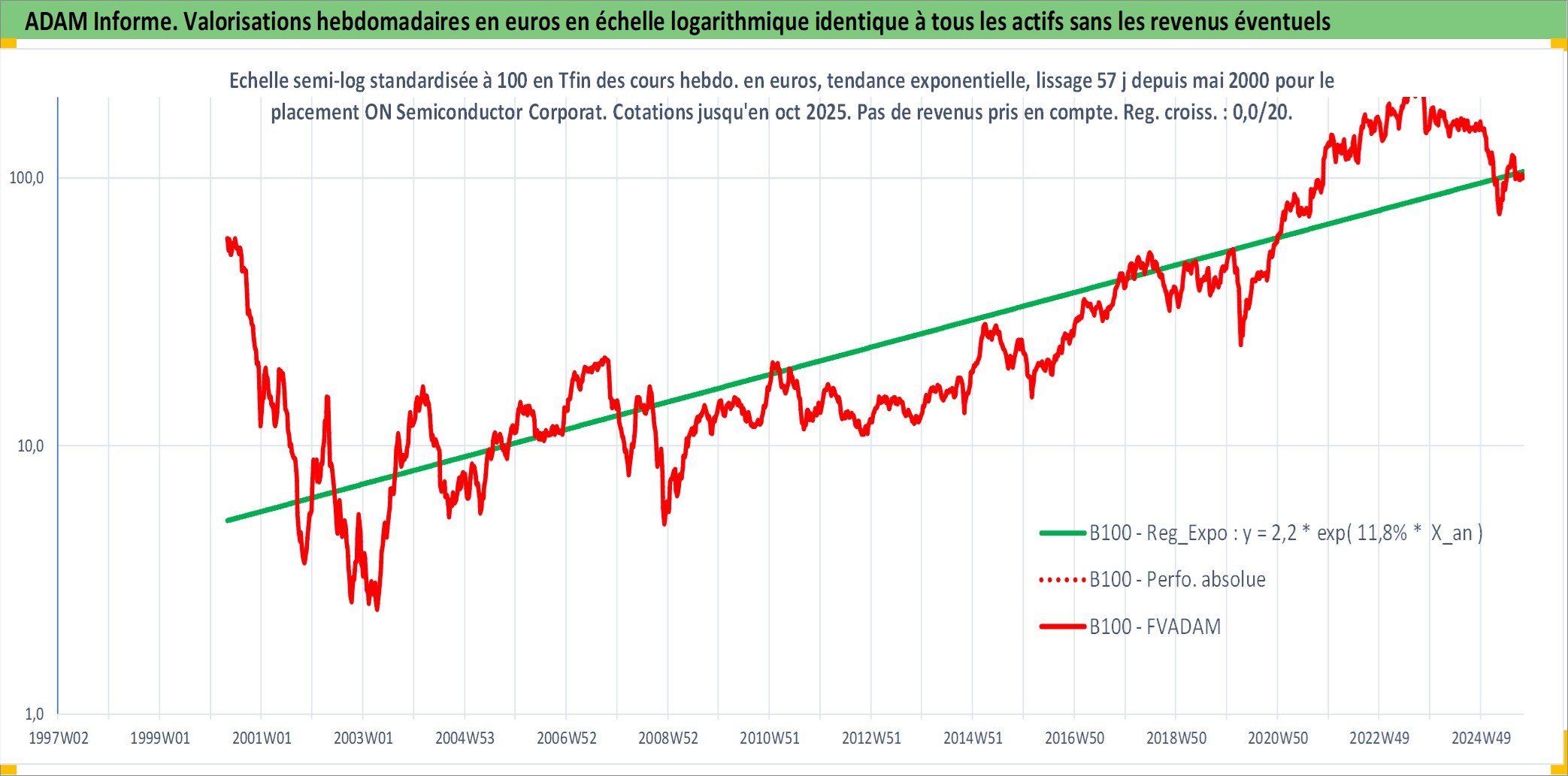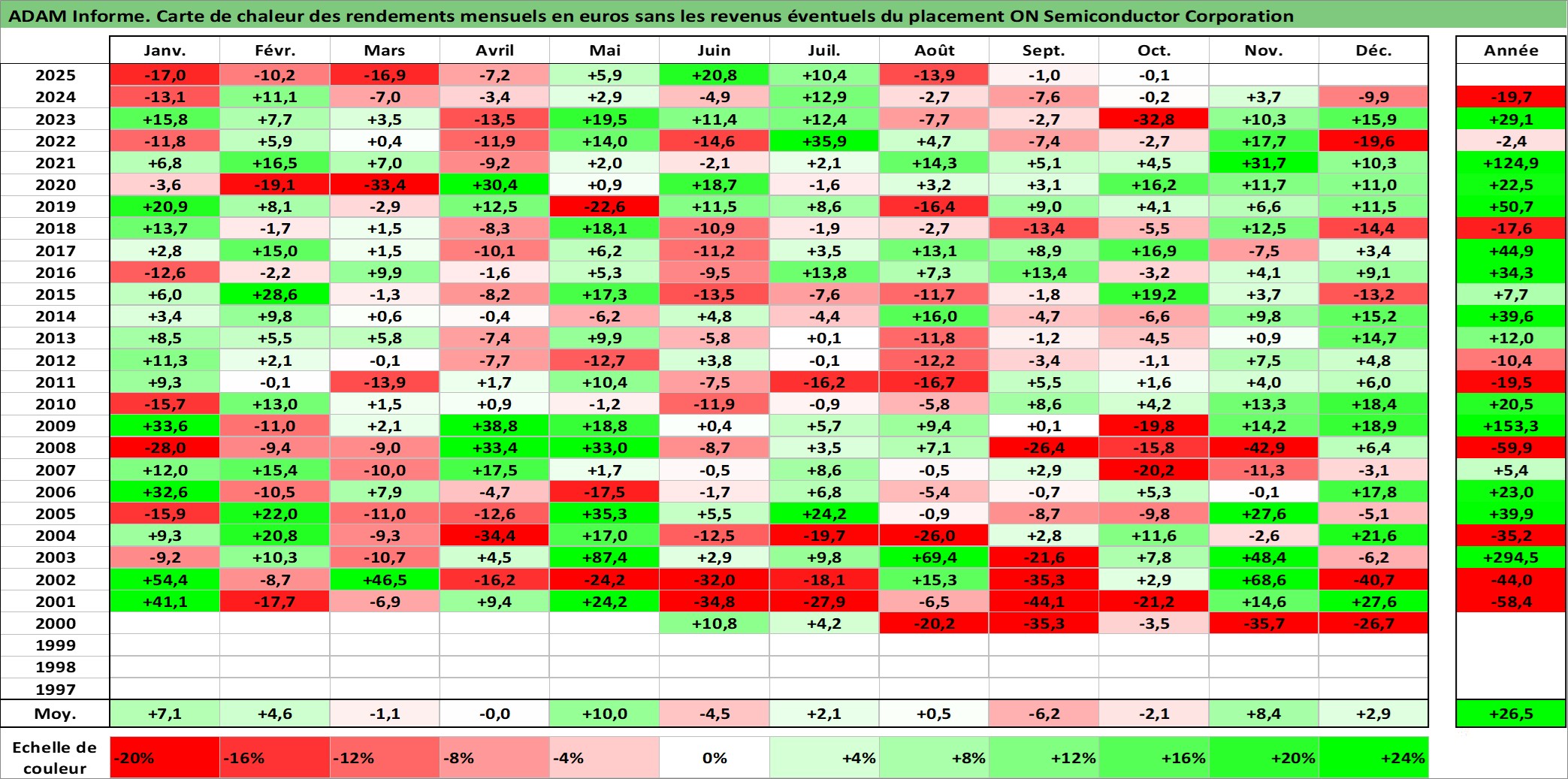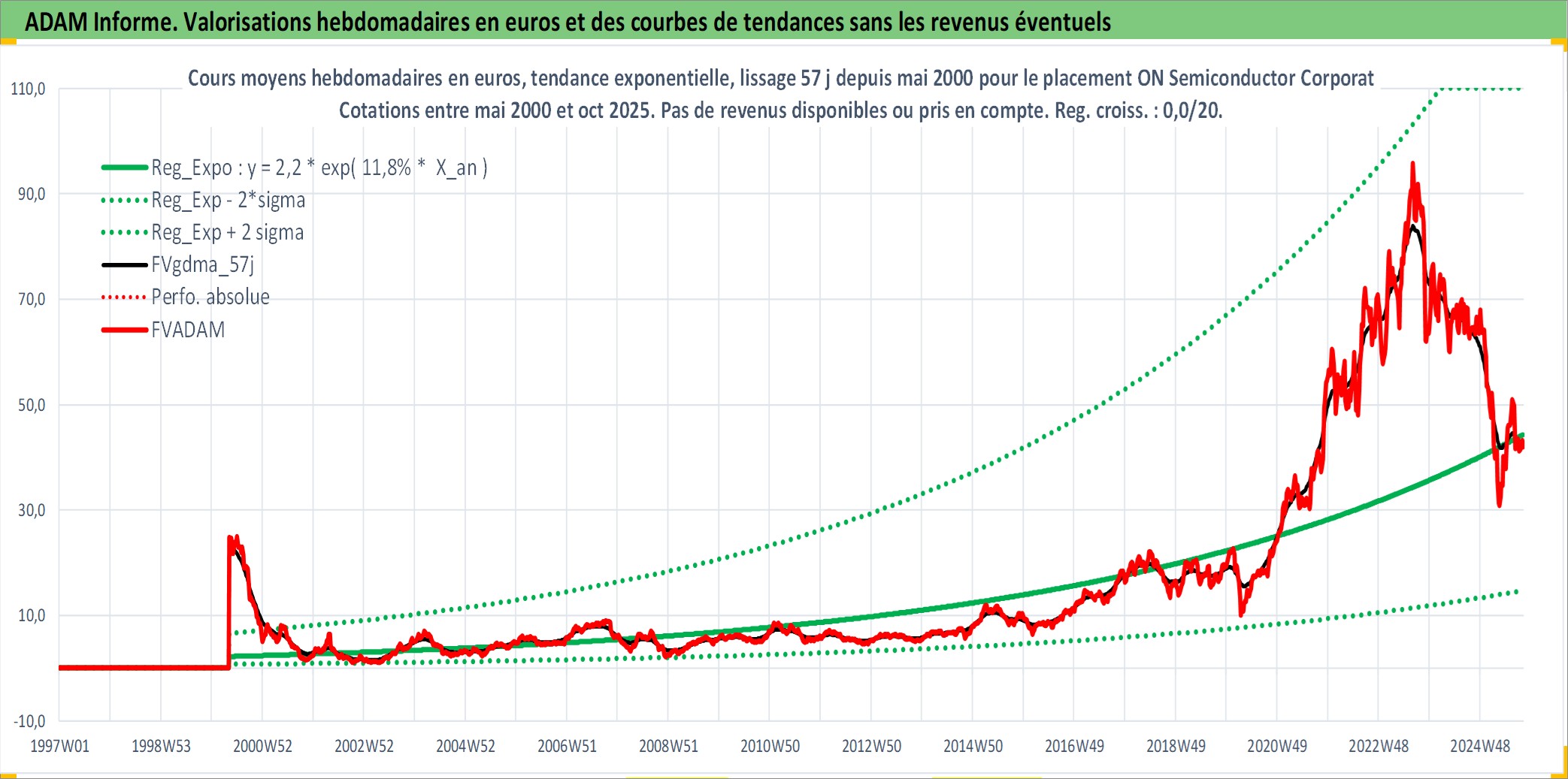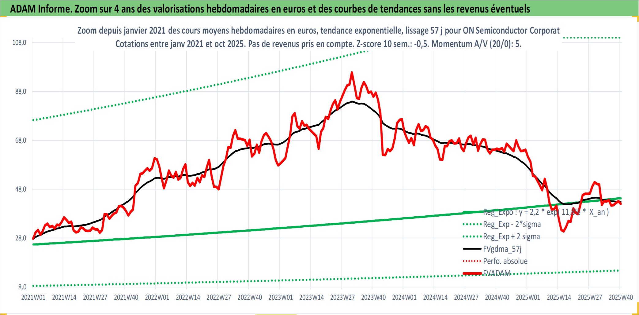 Site dédié aux investisseursPage dédiée sur site financeAnalyse des valorisations hebdomadaires de l'action ON Semiconductor Corporation. Cet actif est cote en USD. Les valorisations sont en contrevaleur EURO et couvrent les semaines 2000W18 a 2025W40. Les revenus de cet actif financier ne sont pas connus car non existants ou non disponibles sur le site Yahoo Finance. La note globale ESG de cet actif est estimee a 7.0 (apres rebasage entre 0 et 20).
