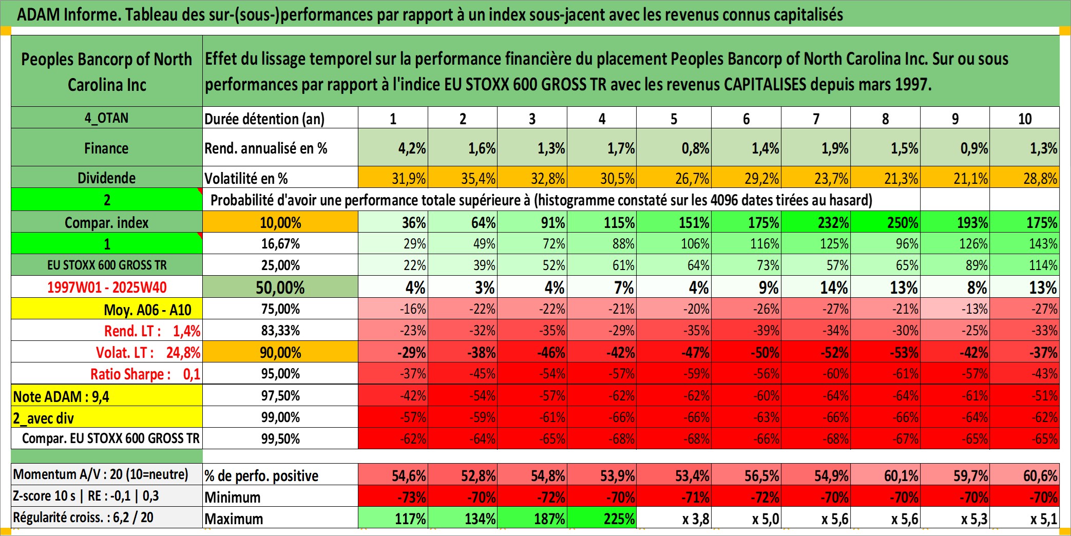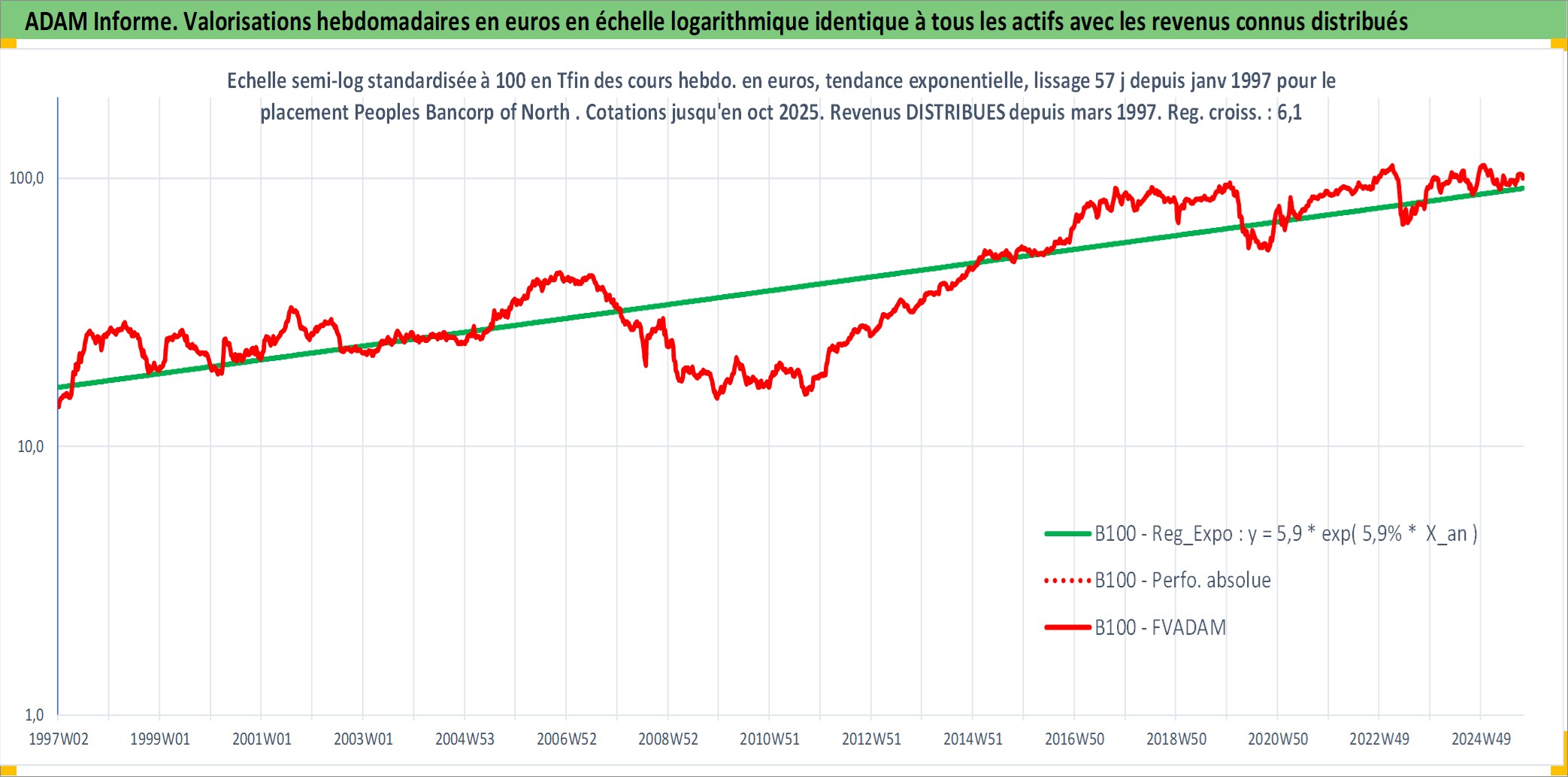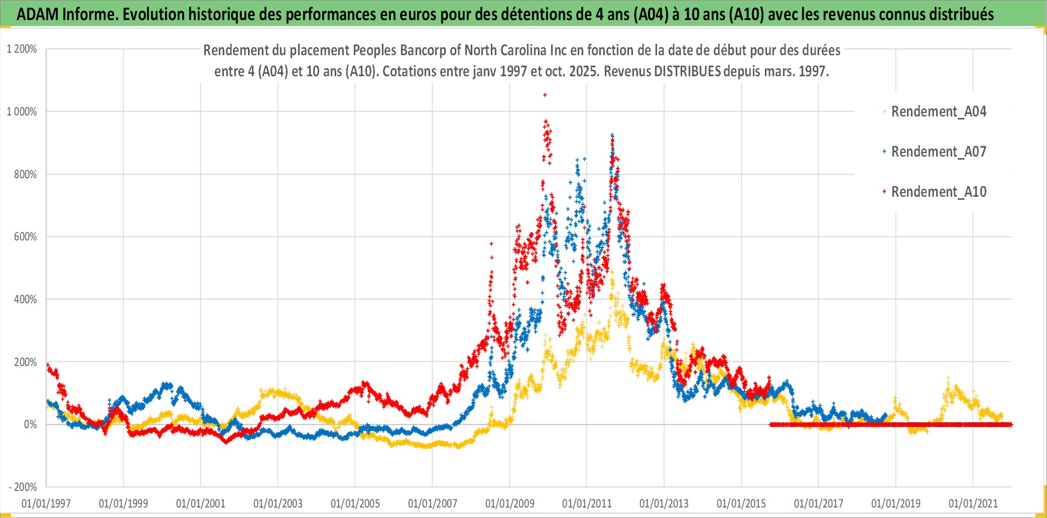 Site dédié aux investisseursPage dédiée sur site financeAnalyse des valorisations hebdomadaires de l'action Peoples Bancorp of North Carolina Inc. Cet actif est cote en USD. Les valorisations sont en contrevaleur EURO et couvrent les semaines 1997W01 a 2025W40. Les revenus de cet actif financier sont pris en compte depuis la semaine 1997W11. La note ESG de cet actif n'est pas connue.