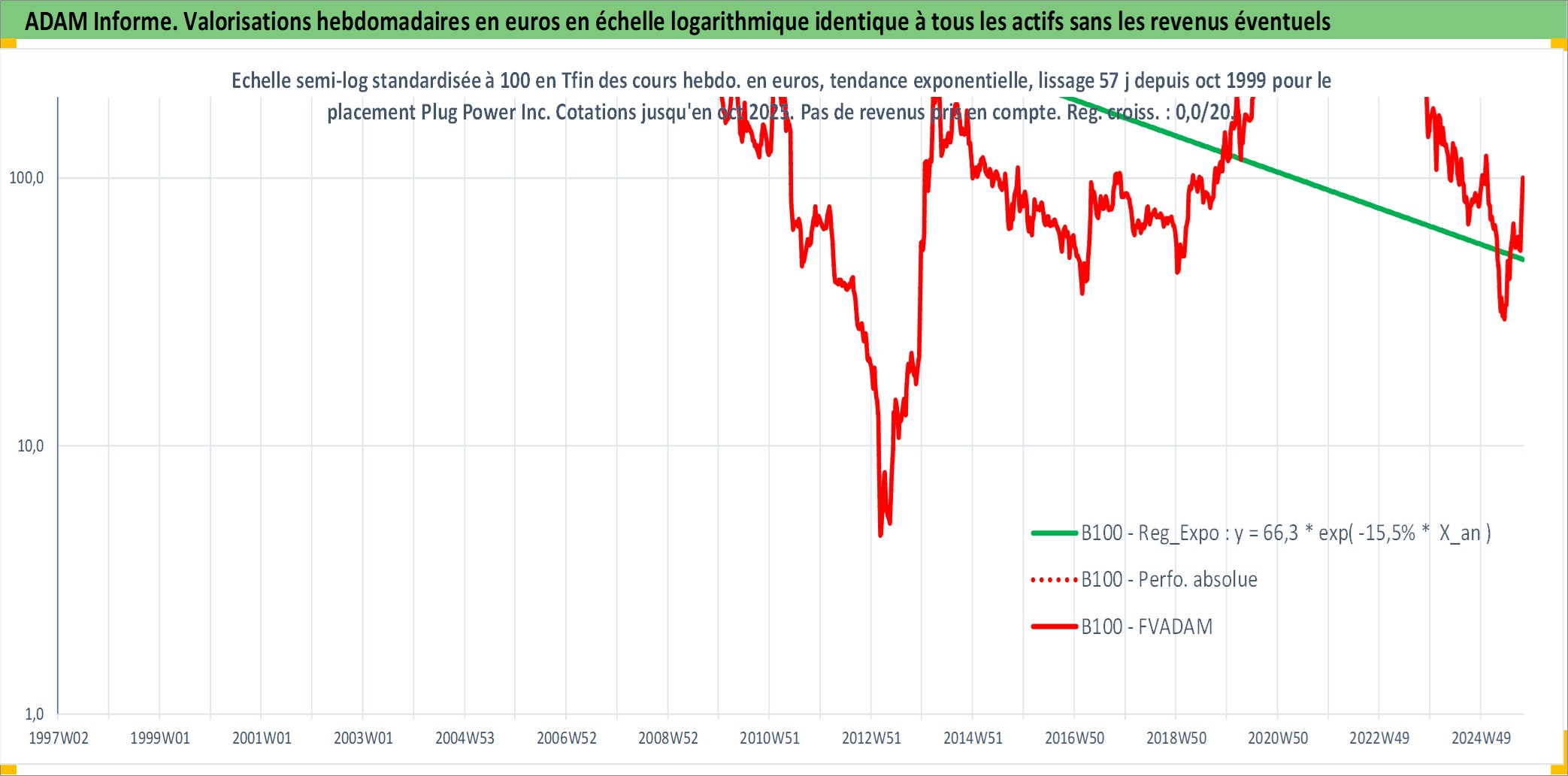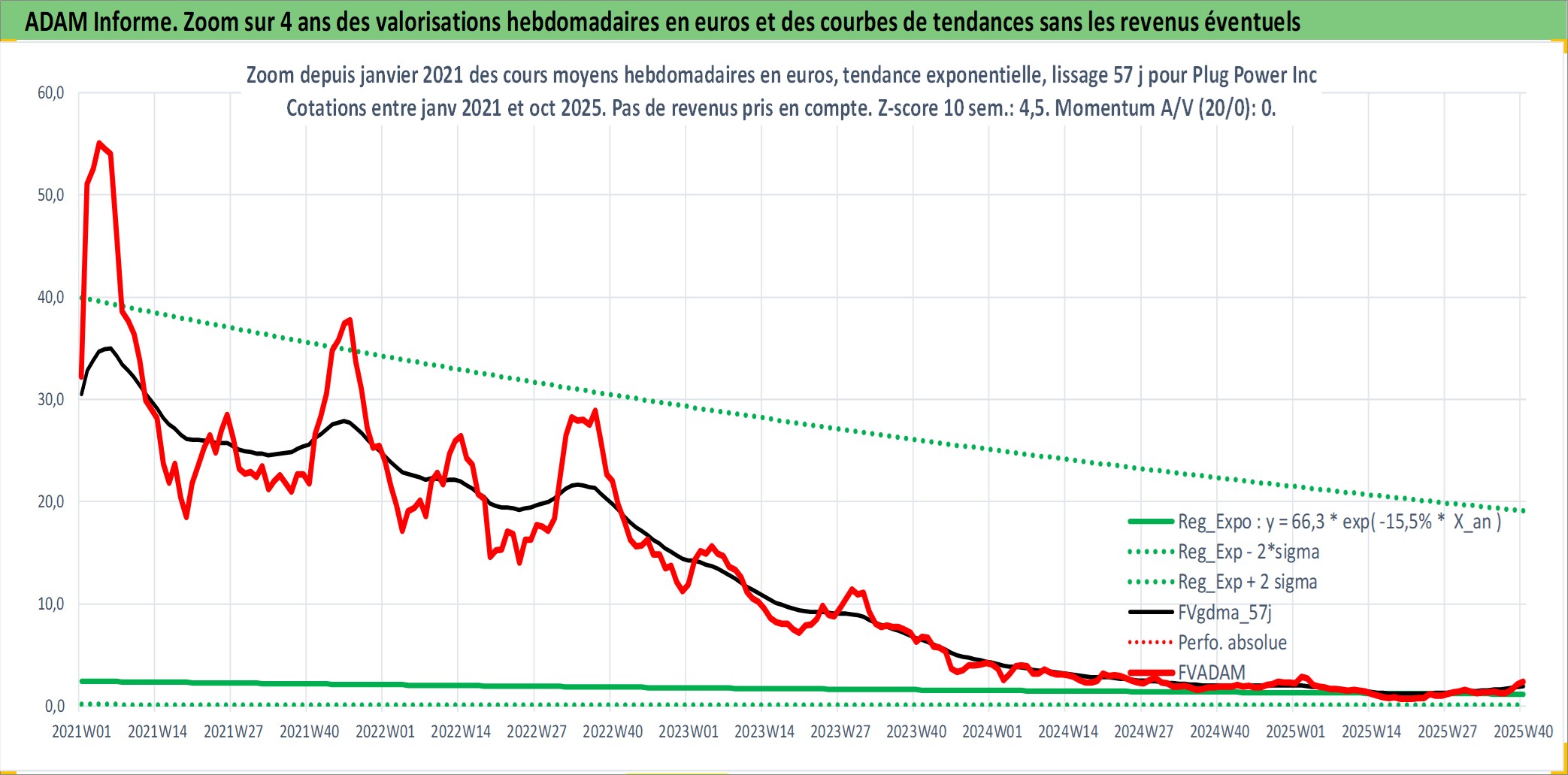 Site dédié aux investisseursPage dédiée sur site financeAnalyse des valorisations hebdomadaires de l'action Plug Power Inc. Cet actif est cote en USD. Les valorisations sont en contrevaleur EURO et couvrent les semaines 1999W43 a 2025W40. Les revenus de cet actif financier ne sont pas connus car non existants ou non disponibles sur le site Yahoo Finance. La note ESG de cet actif n'est pas connue.