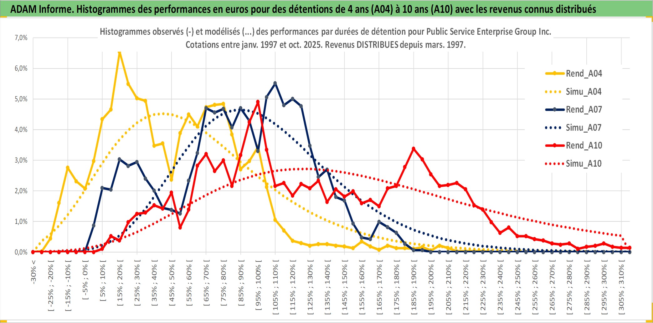 Site dédié aux investisseursPage dédiée sur site financeAnalyse des valorisations hebdomadaires de l'action Public Service Enterprise Group Inc. Cet actif est cote en USD. Les valorisations sont en contrevaleur EURO et couvrent les semaines 1997W01 a 2025W40. Les revenus de cet actif financier sont pris en compte depuis la semaine 1997W10. La note globale ESG de cet actif est estimee a 7.0 (apres rebasage entre 0 et 20).