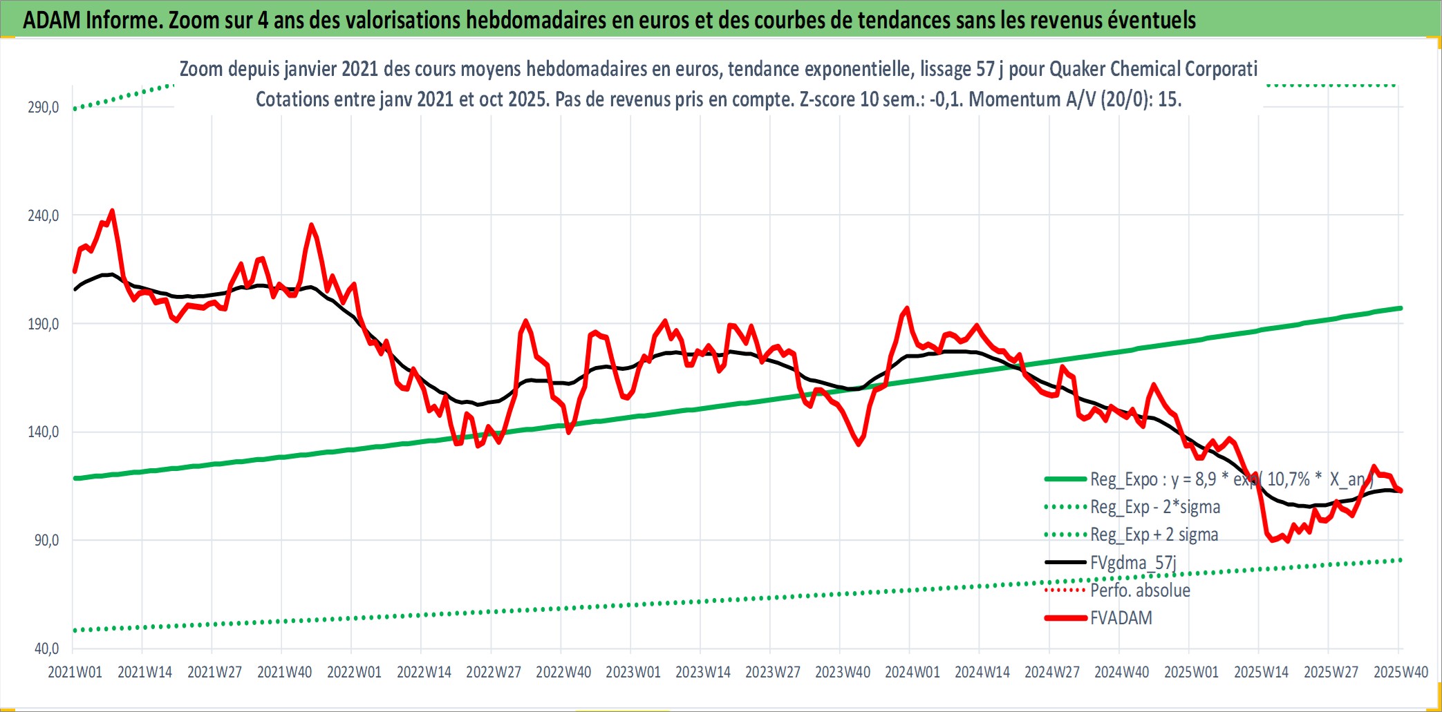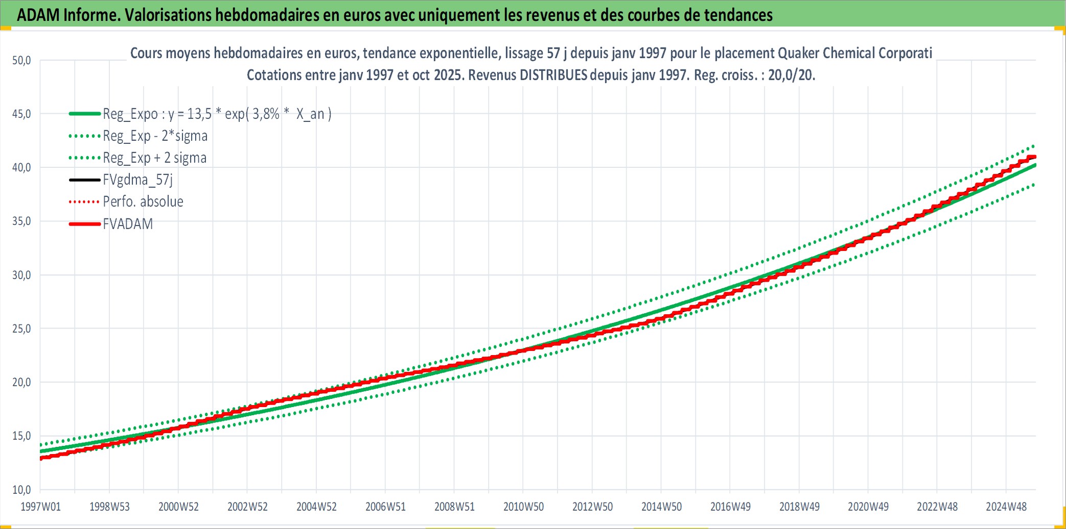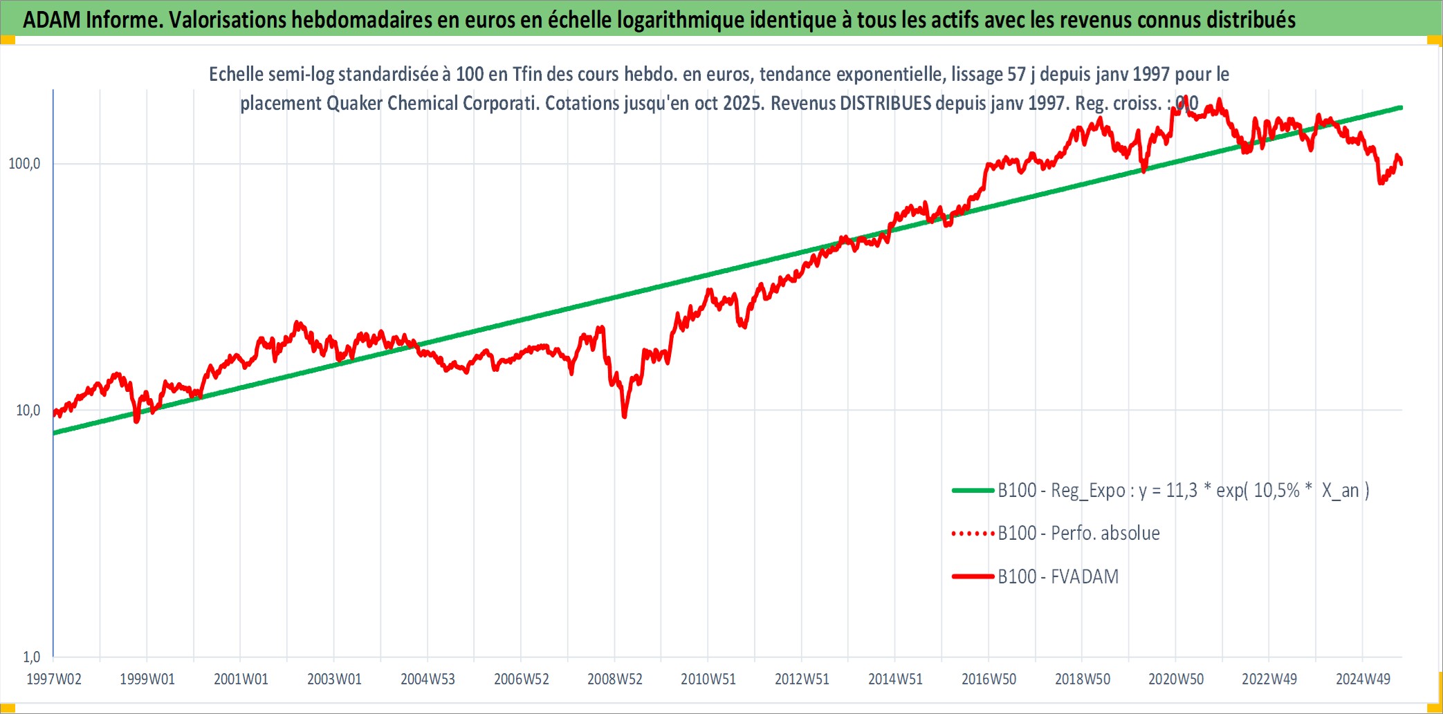 Site dédié aux investisseursPage dédiée sur site financeAnalyse des valorisations hebdomadaires de l'action Quaker Chemical Corporation. Cet actif est cote en USD. Les valorisations sont en contrevaleur EURO et couvrent les semaines 1997W01 a 2025W40. Les revenus de cet actif financier sont pris en compte depuis la semaine 1997W03. La note ESG de cet actif n'est pas connue.