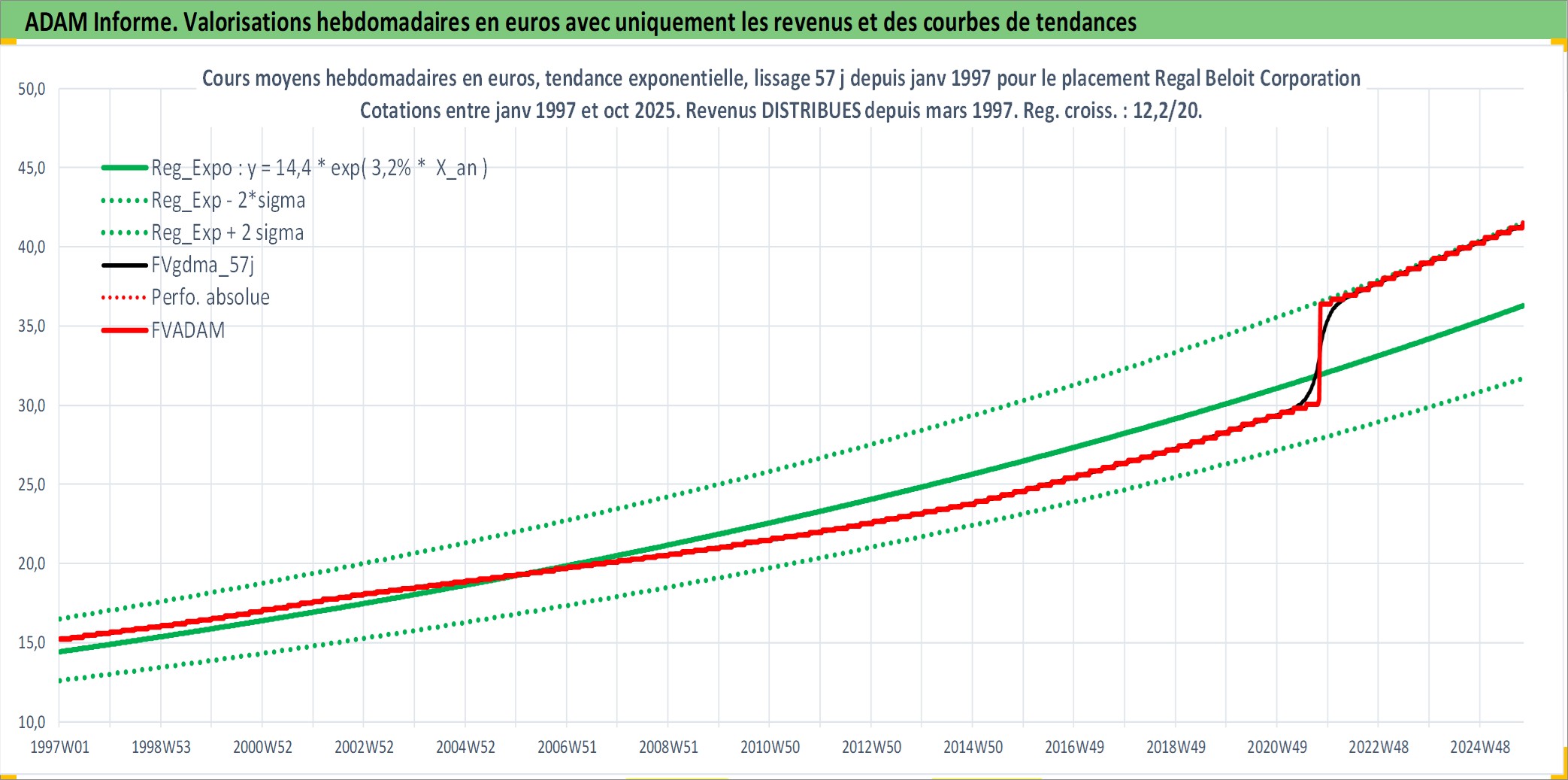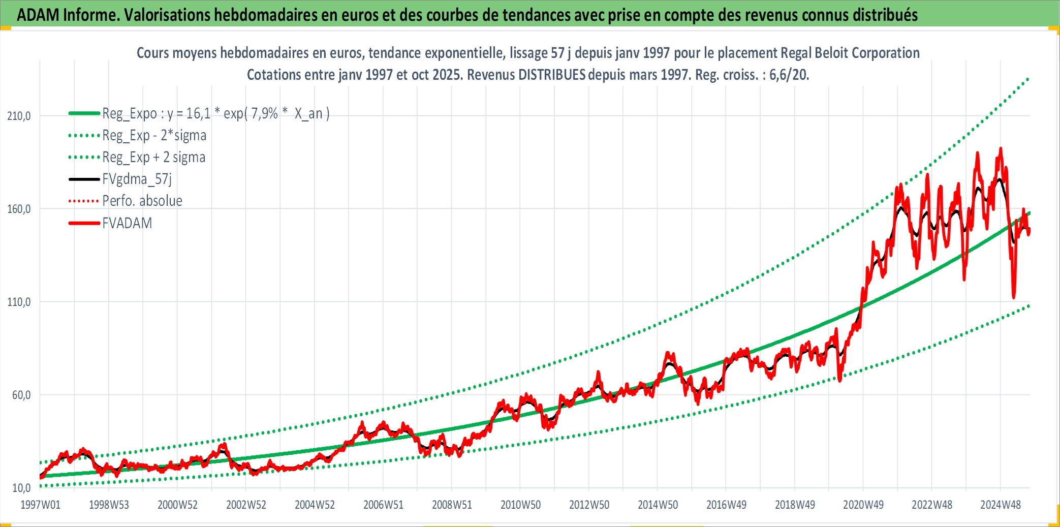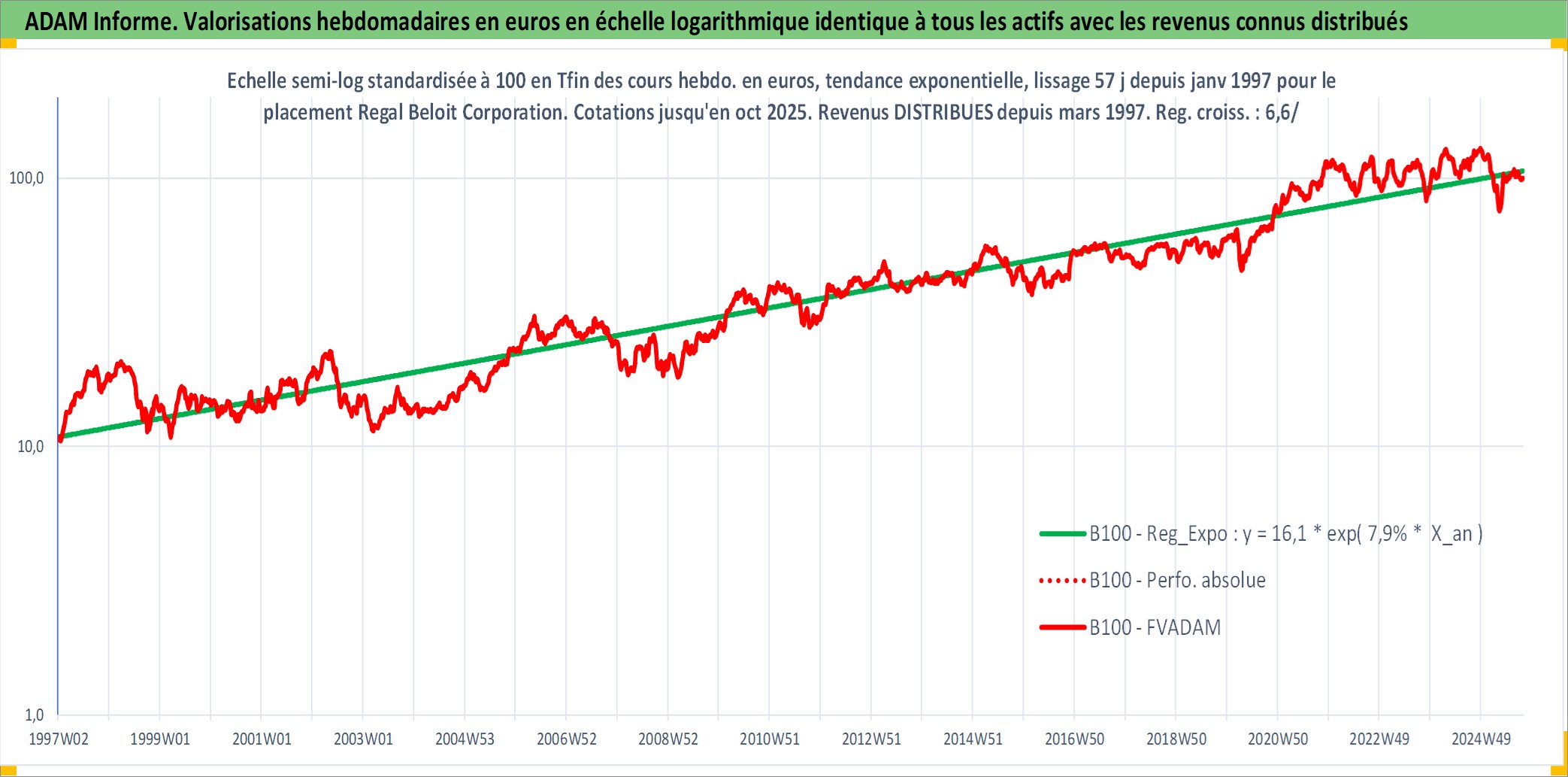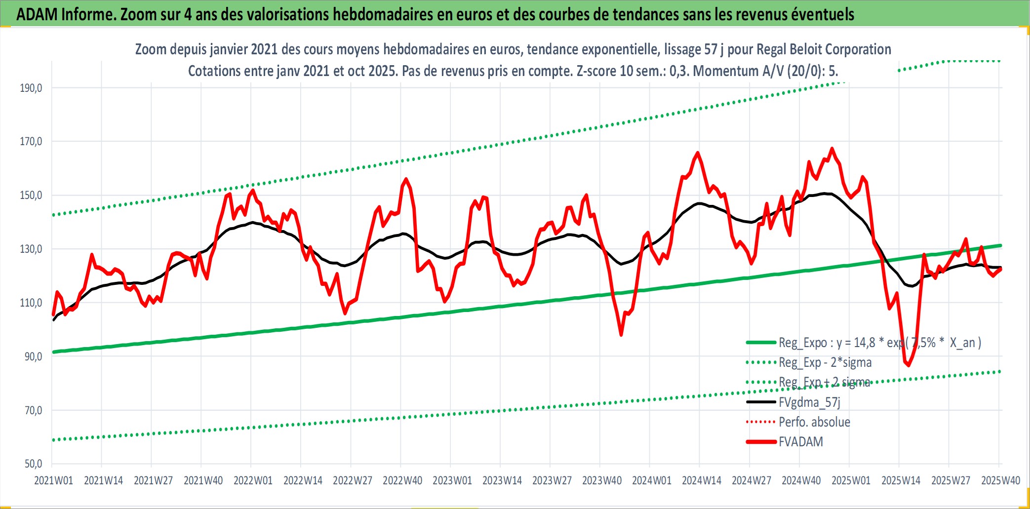 Site dédié aux investisseursPage dédiée sur site financeAnalyse des valorisations hebdomadaires de l'action Regal Beloit Corporation. Cet actif est cote en USD. Les valorisations sont en contrevaleur EURO et couvrent les semaines 1997W01 a 2025W40. Les revenus de cet actif financier sont pris en compte depuis la semaine 1997W13. La note ESG de cet actif n'est pas connue.