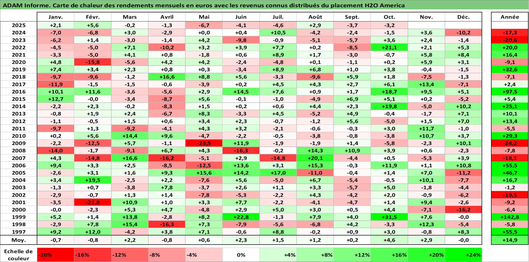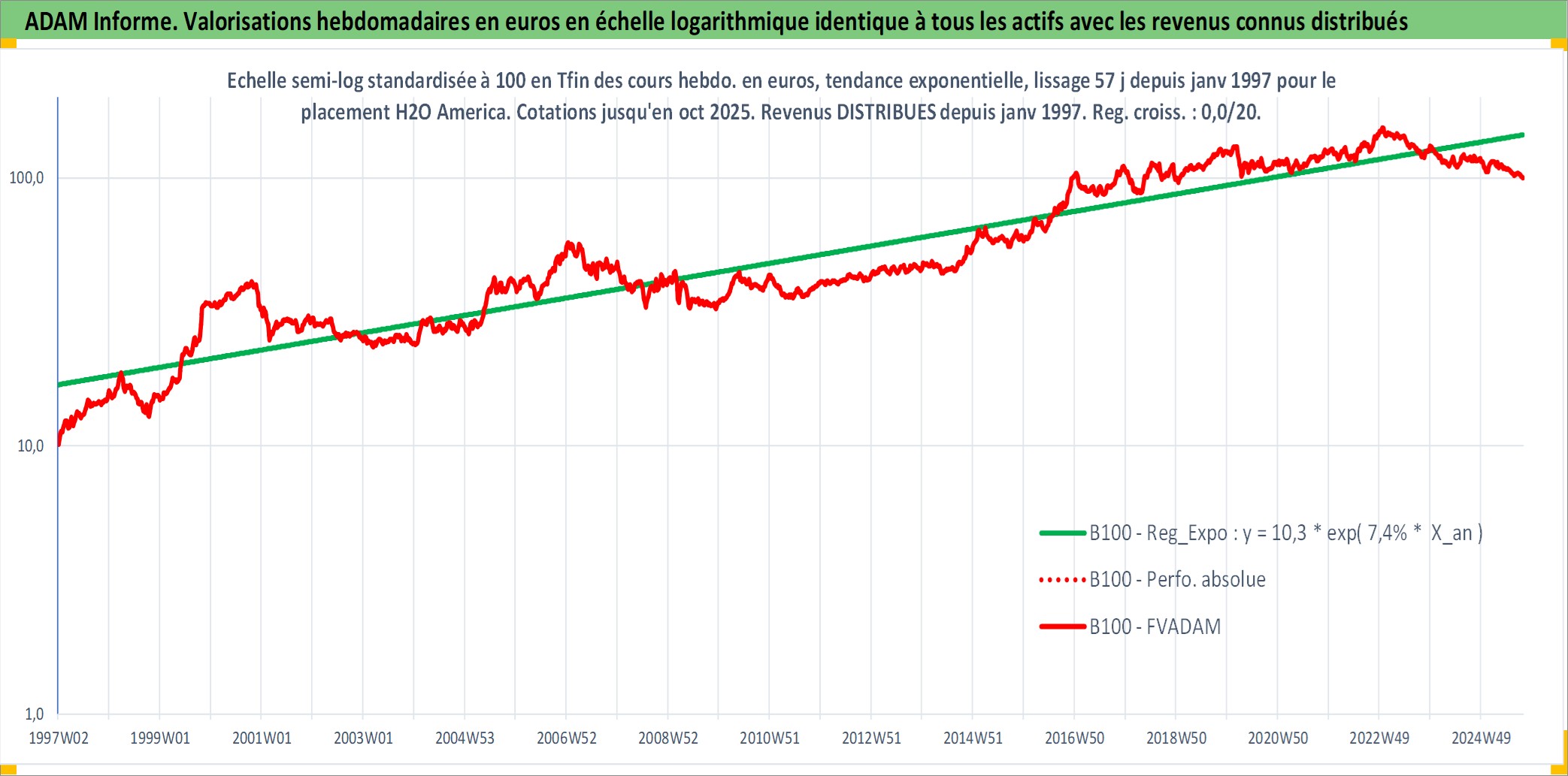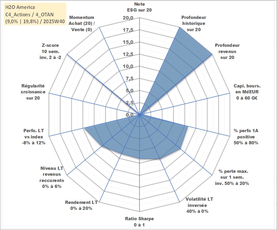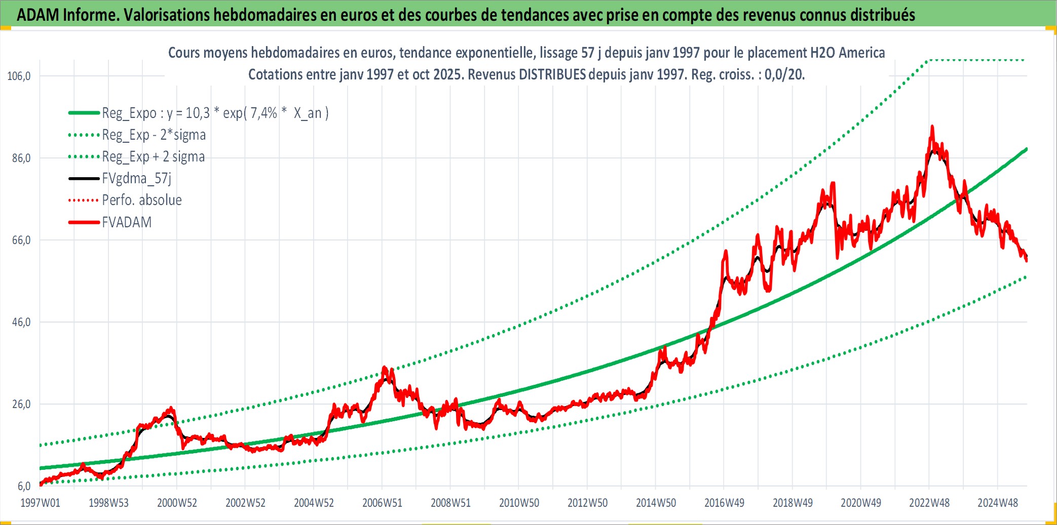 Site dédié aux investisseursPage dédiée sur site financeAnalyse des valorisations hebdomadaires de l'action H2O America. Cet actif est cote en USD. Les valorisations sont en contrevaleur EURO et couvrent les semaines 1997W01 a 2025W40. Les revenus de cet actif financier sont pris en compte depuis la semaine 1997W05. La note ESG de cet actif n'est pas connue.