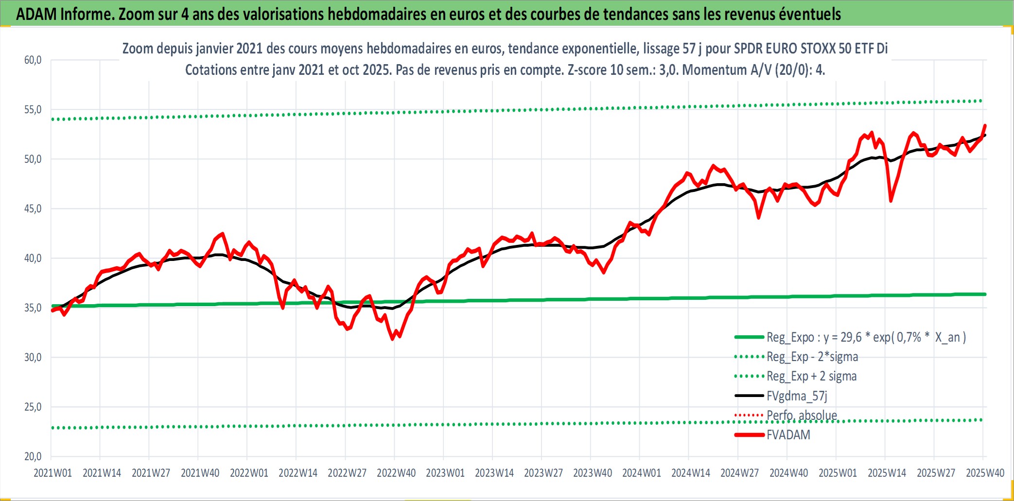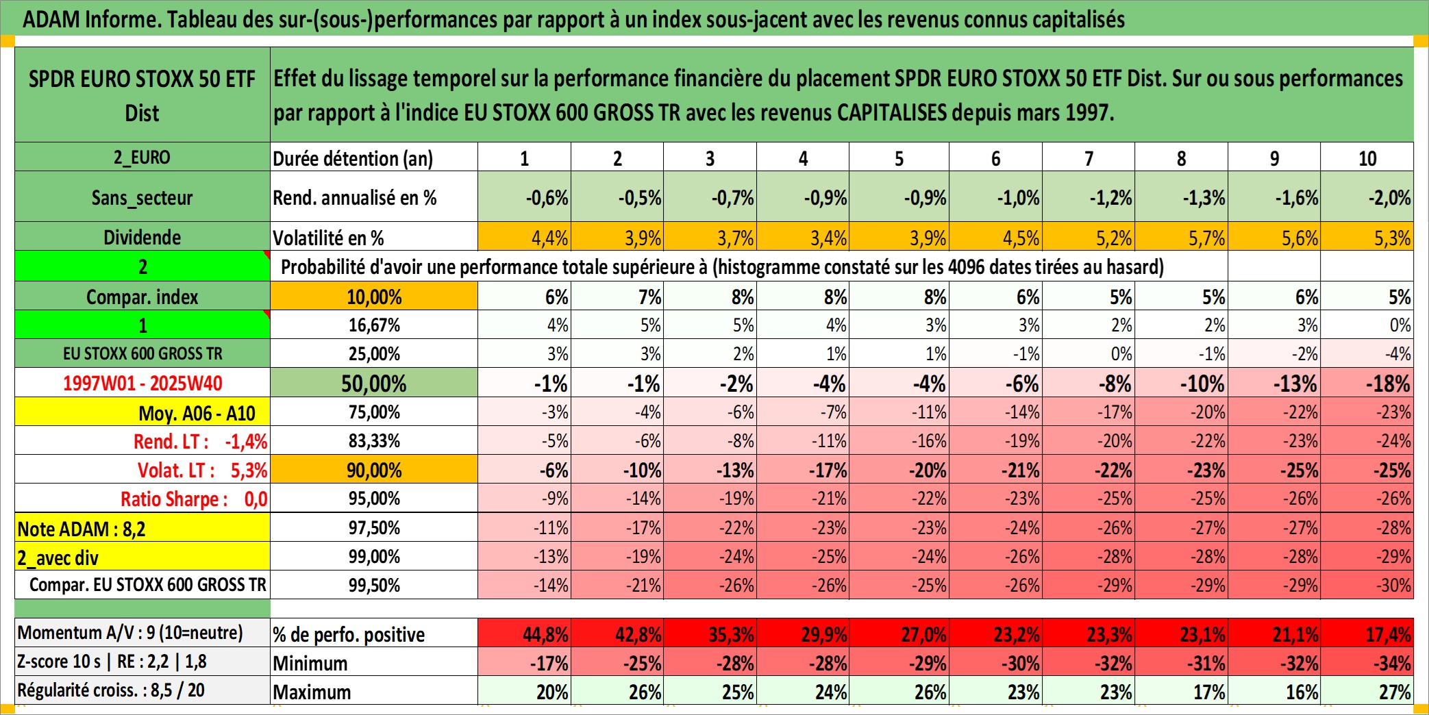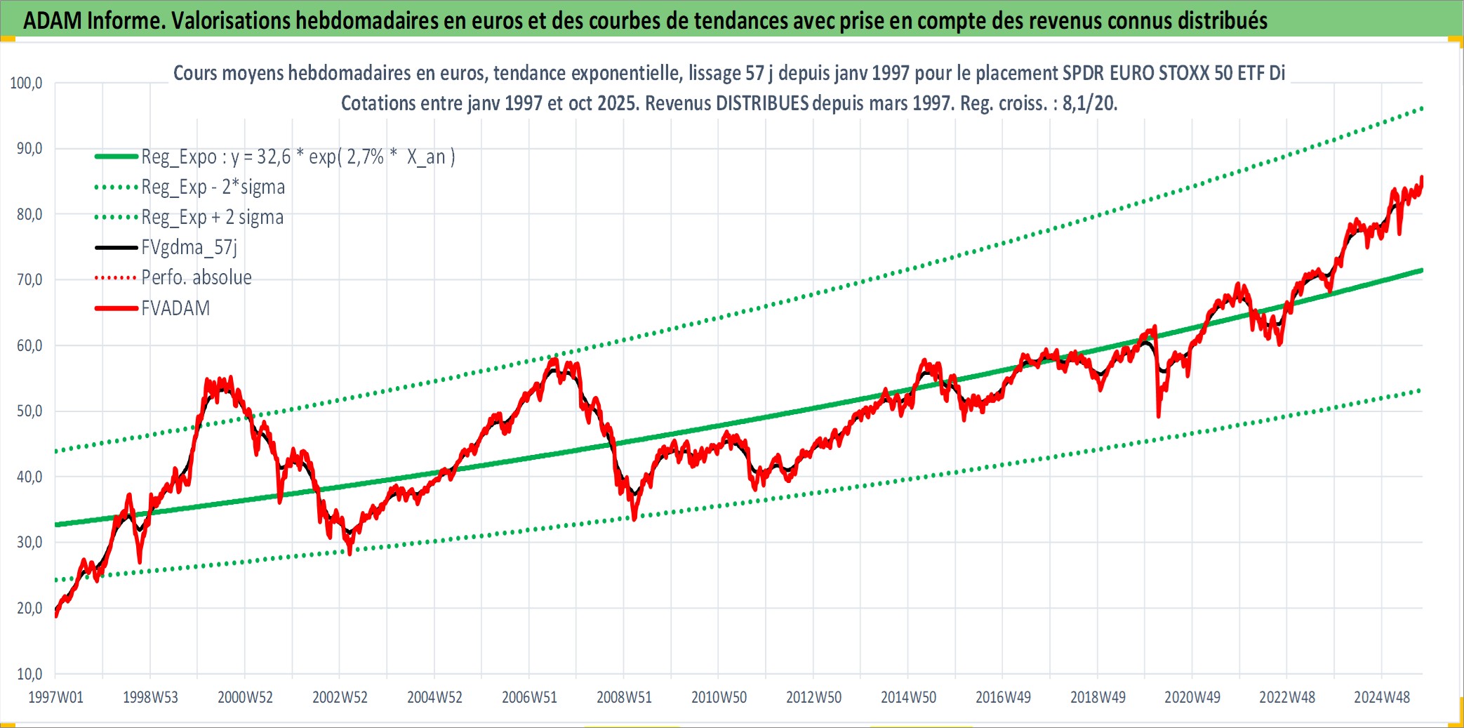 Site dédié aux investisseursPage dédiée sur site financeAnalyse des valorisations hebdomadaires du fonds SPDR EURO STOXX 50 ETF Dist. Cet actif est cote en USD. Les valorisations sont en contrevaleur EURO et couvrent les semaines 1997W01 a 2025W40. Les revenus de cet actif financier sont pris en compte depuis la semaine 1997W12. La note ESG de cet actif n'est pas connue.