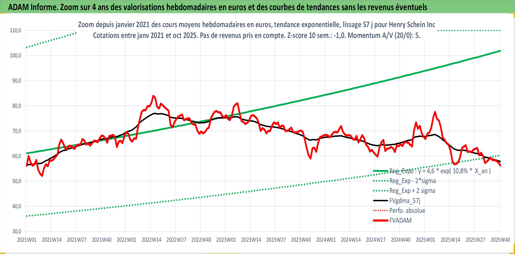 Site dédié aux investisseursPage dédiée sur site financeAnalyse des valorisations hebdomadaires de l'action Henry Schein Inc. Cet actif est cote en USD. Les valorisations sont en contrevaleur EURO et couvrent les semaines 1997W01 a 2025W40. Les revenus de cet actif financier ne sont pas connus car non existants ou non disponibles sur le site Yahoo Finance. La note globale ESG de cet actif est estimee a 15.0 (apres rebasage entre 0 et 20).