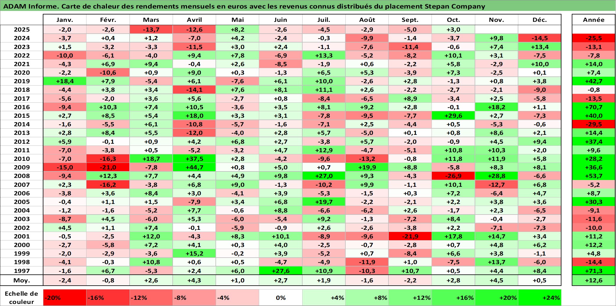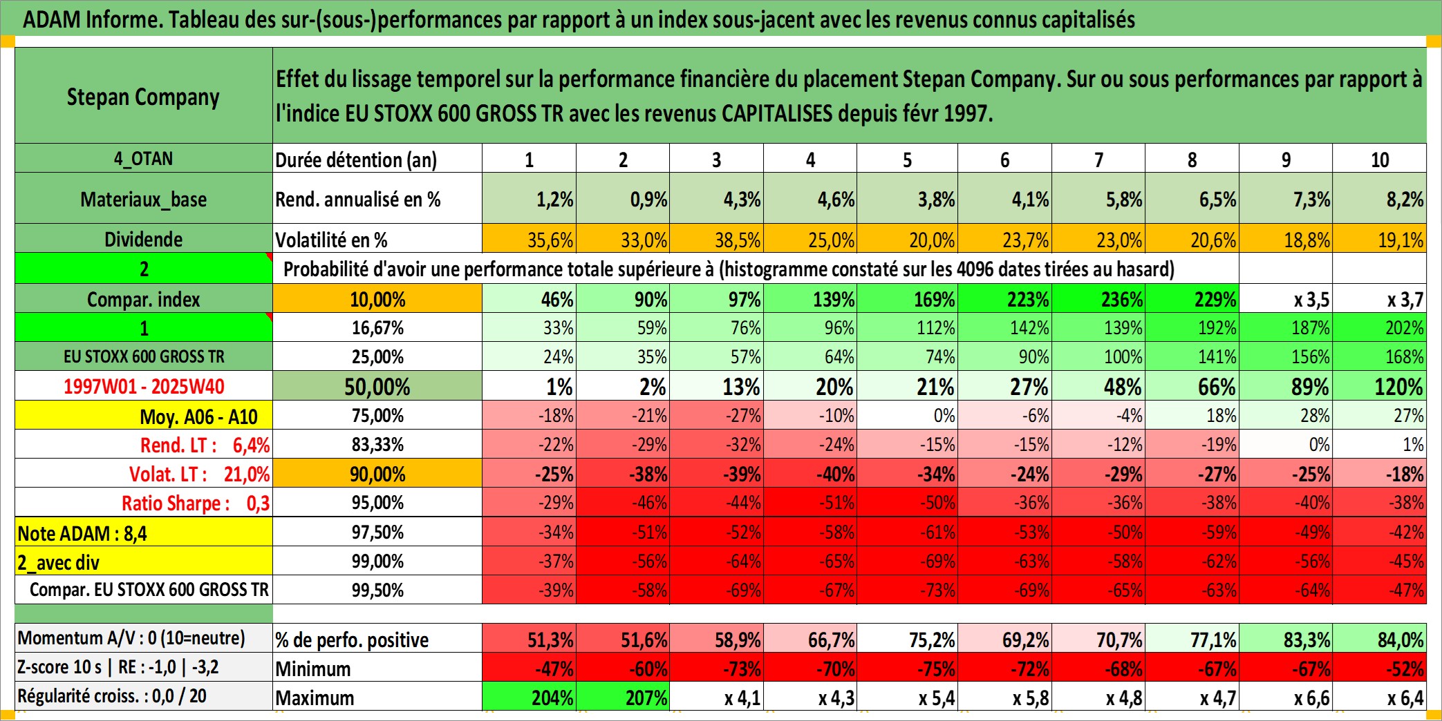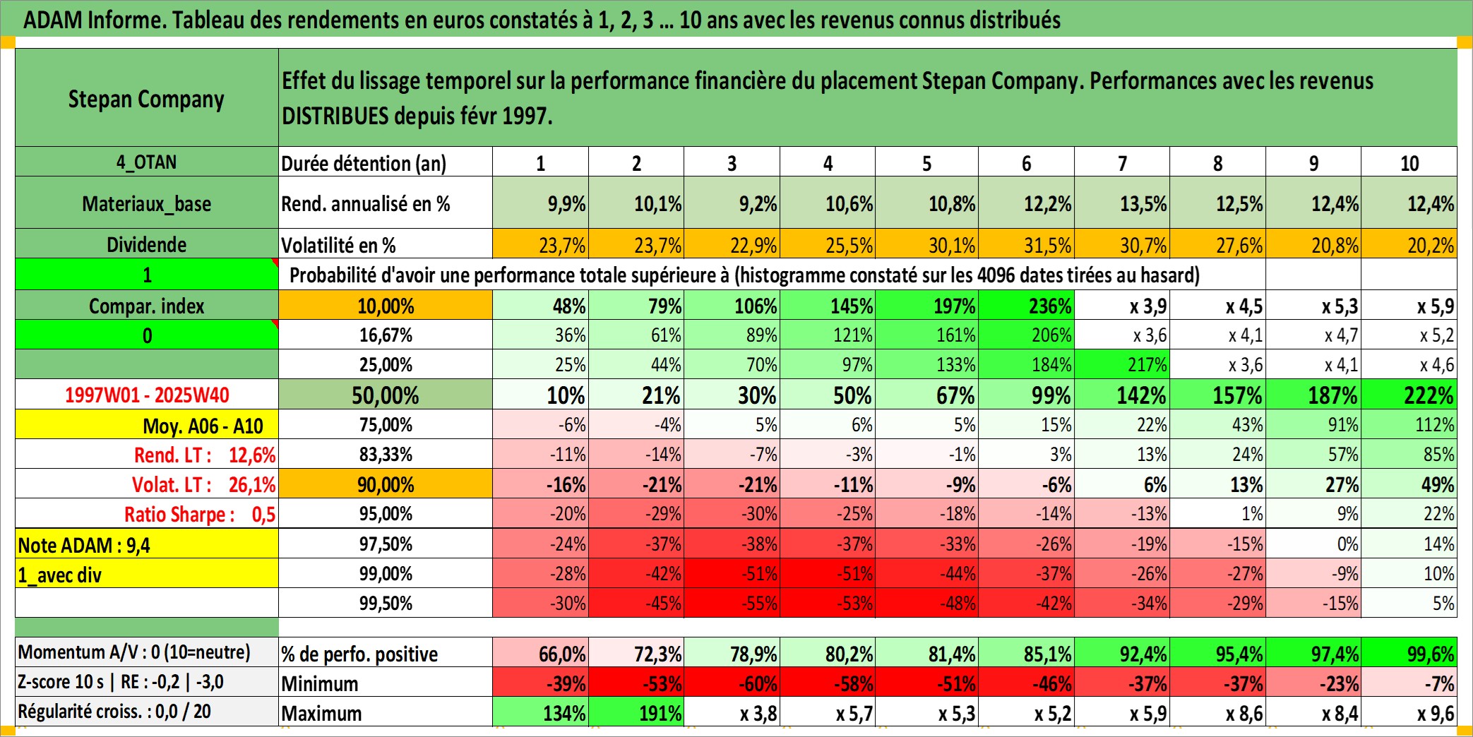 Site dédié aux investisseursPage dédiée sur site financeAnalyse des valorisations hebdomadaires de l'action Stepan Company. Cet actif est cote en USD. Les valorisations sont en contrevaleur EURO et couvrent les semaines 1997W01 a 2025W40. Les revenus de cet actif financier sont pris en compte depuis la semaine 1997W09. La note ESG de cet actif n'est pas connue.