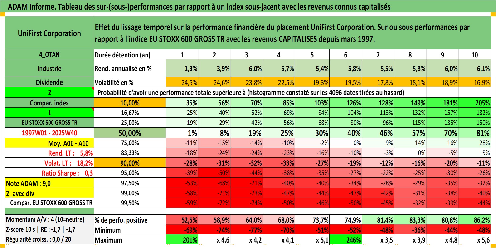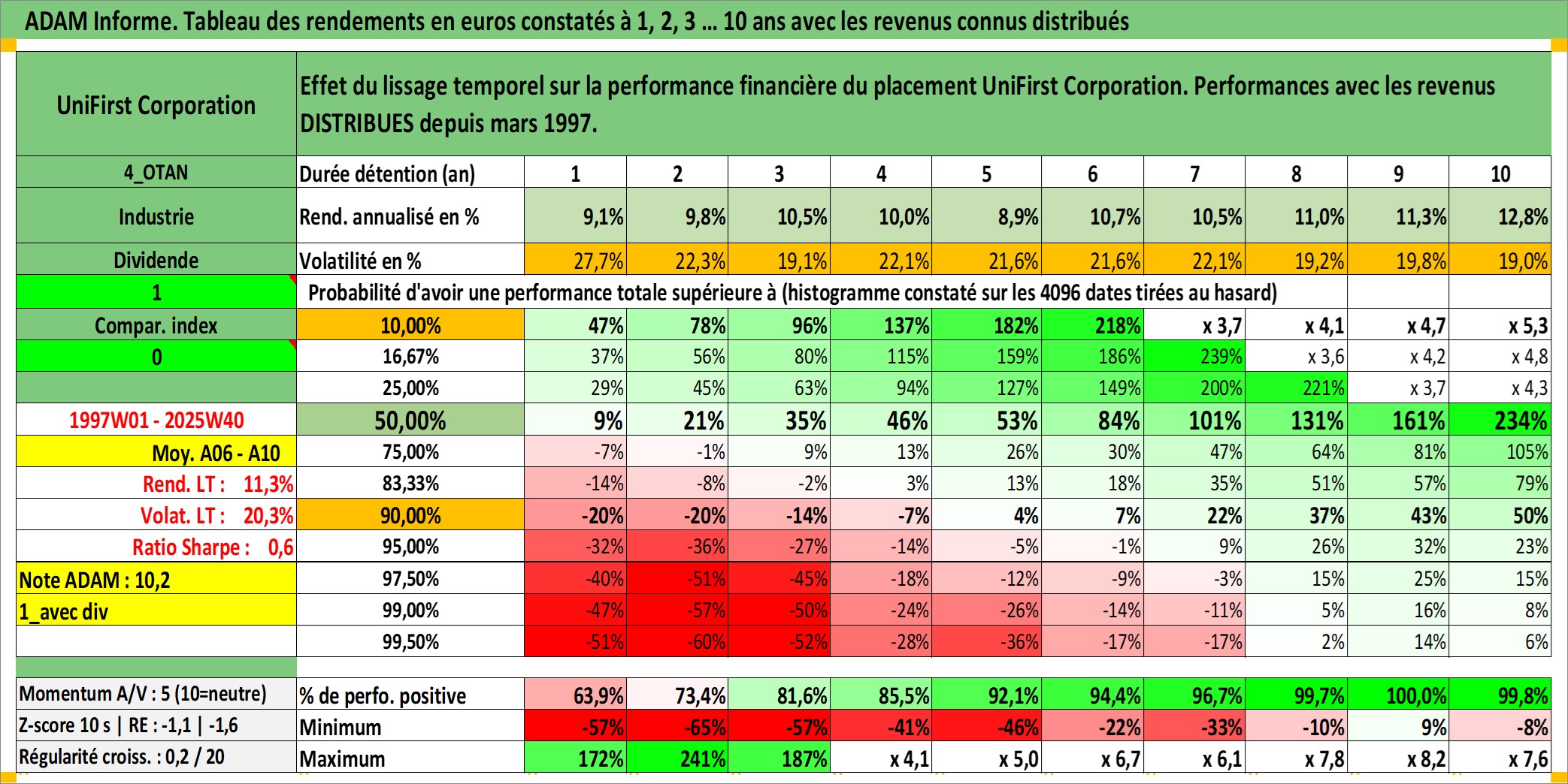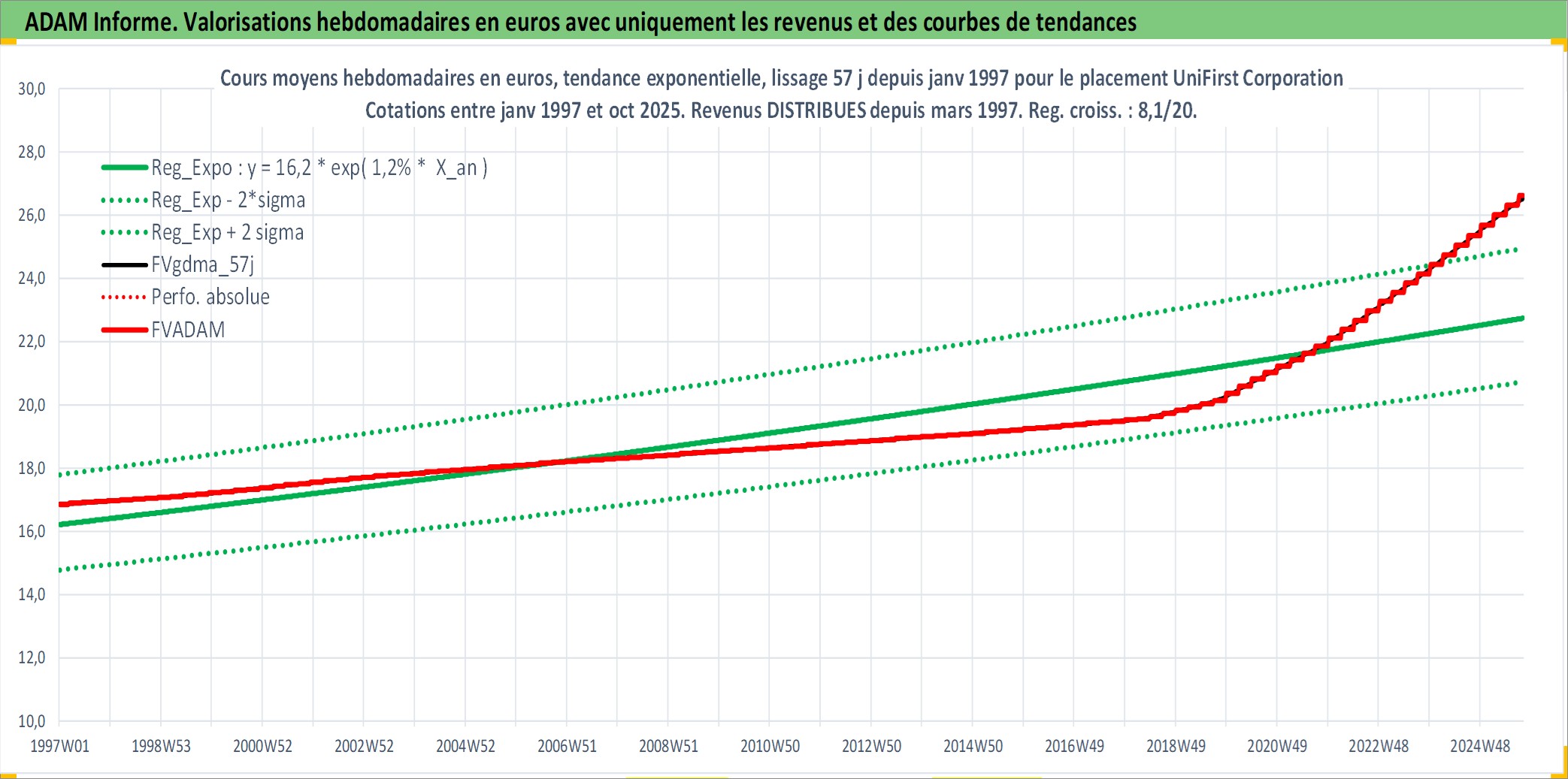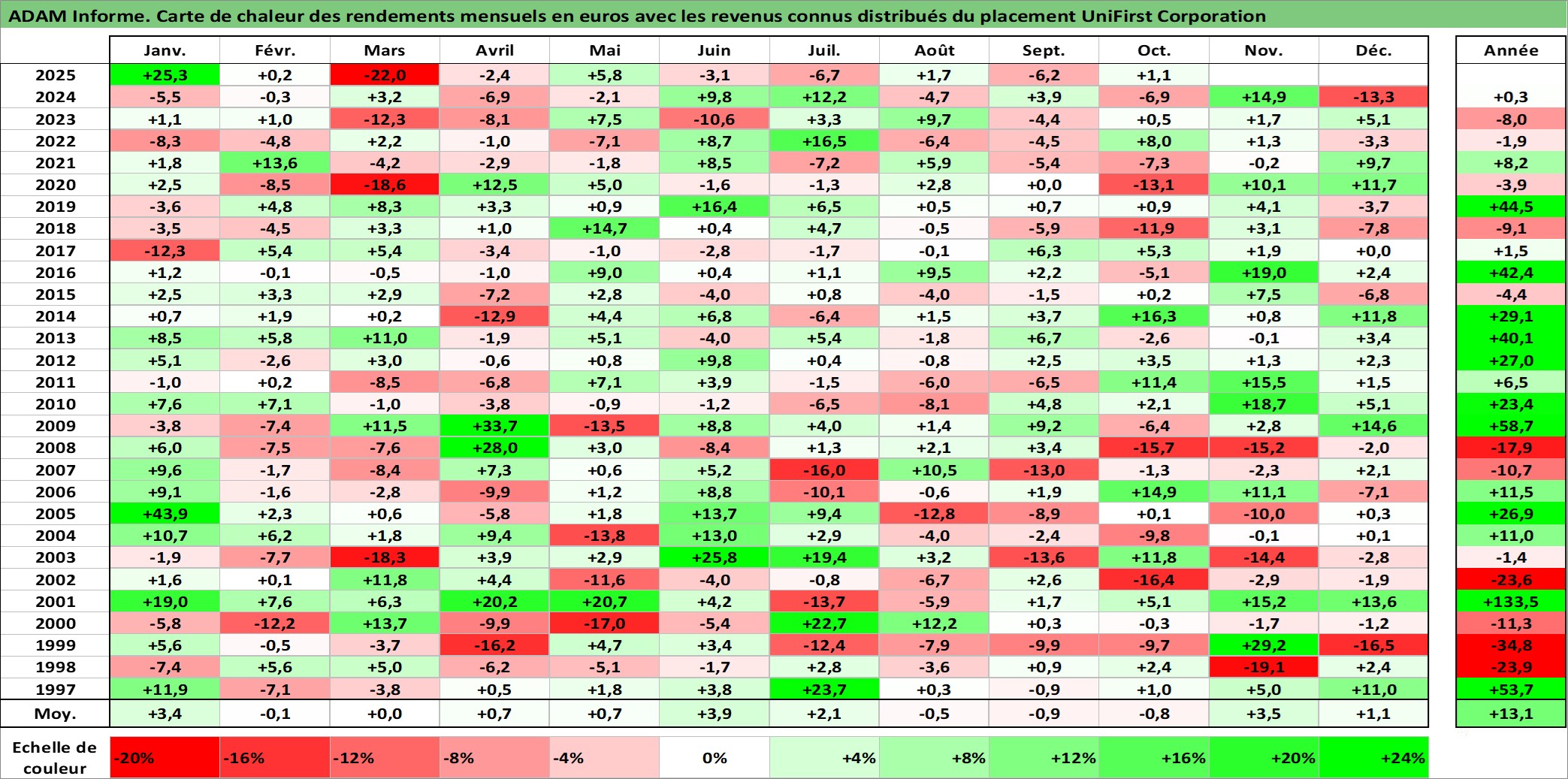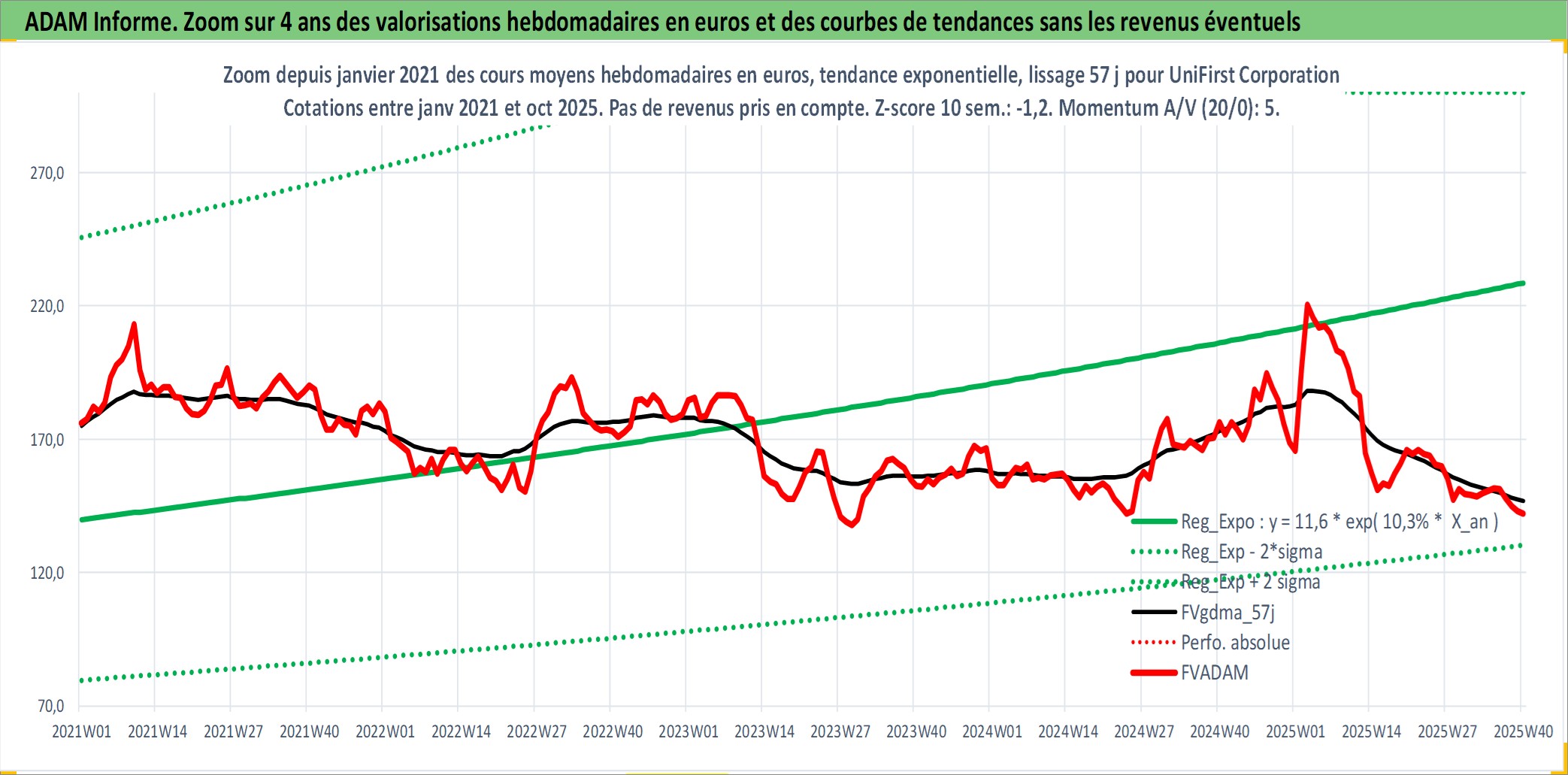 Site dédié aux investisseursPage dédiée sur site financeAnalyse des valorisations hebdomadaires de l'action UniFirst Corporation. Cet actif est cote en USD. Les valorisations sont en contrevaleur EURO et couvrent les semaines 1997W01 a 2025W40. Les revenus de cet actif financier sont pris en compte depuis la semaine 1997W11. La note ESG de cet actif n'est pas connue.