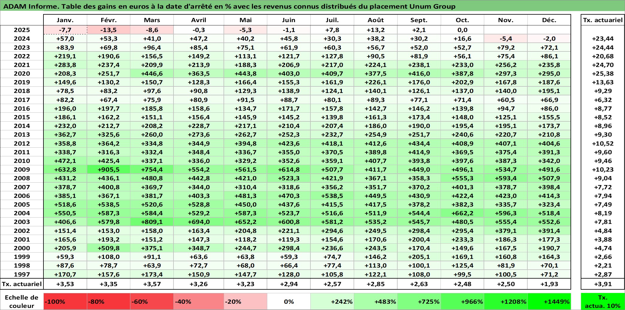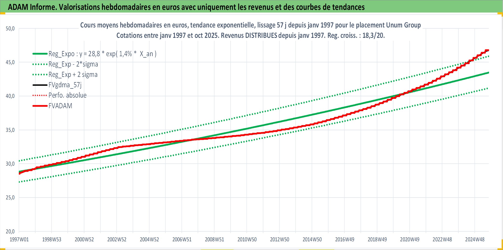 Site dédié aux investisseursPage dédiée sur site financeAnalyse des valorisations hebdomadaires de l'action Unum Group. Cet actif est cote en USD. Les valorisations sont en contrevaleur EURO et couvrent les semaines 1997W01 a 2025W40. Les revenus de cet actif financier sont pris en compte depuis la semaine 1997W04. La note globale ESG de cet actif est estimee a 12.0 (apres rebasage entre 0 et 20).