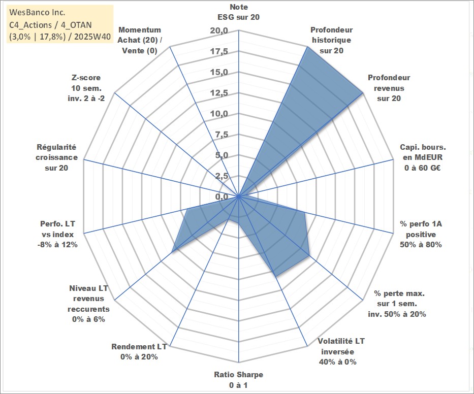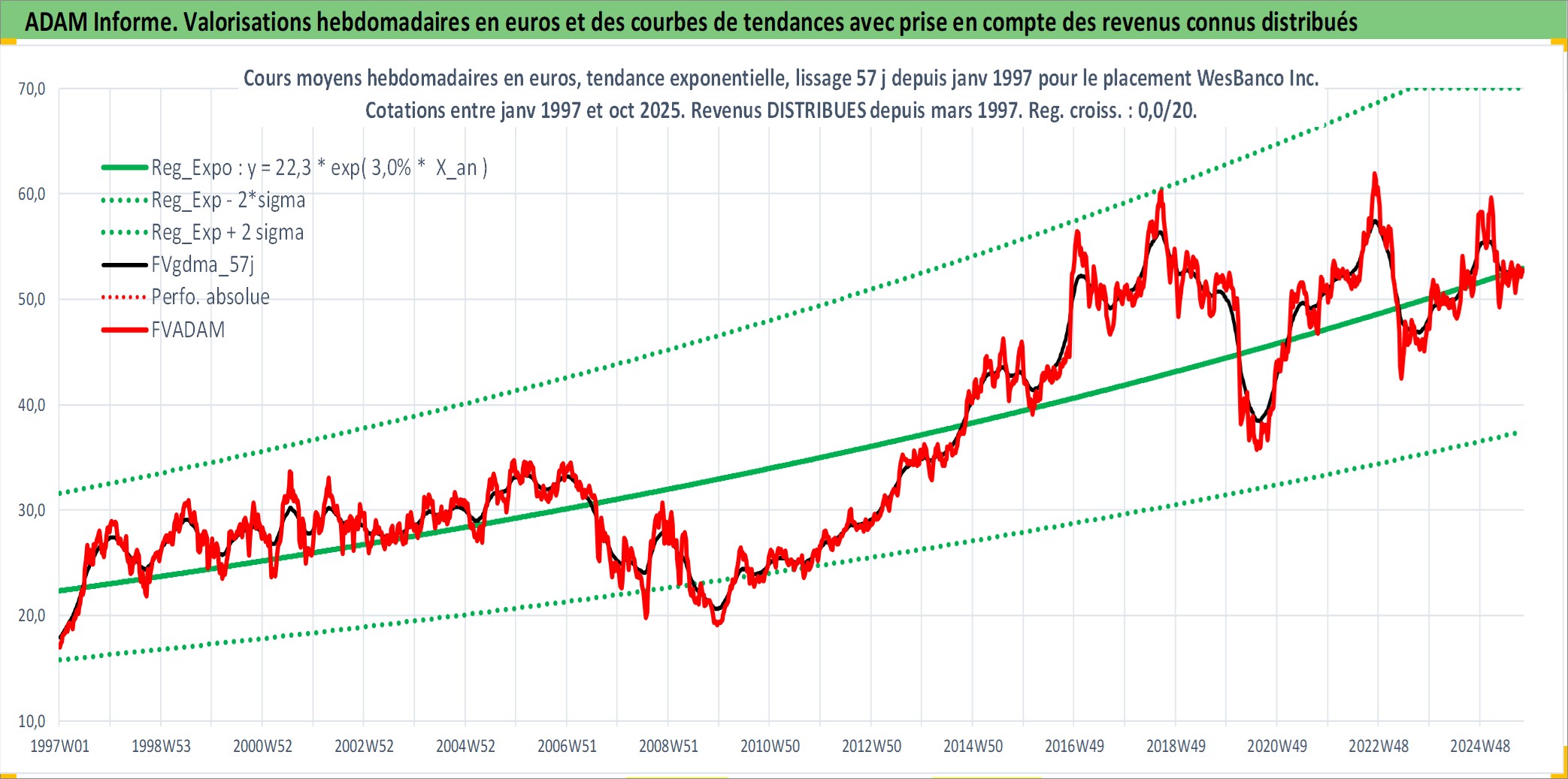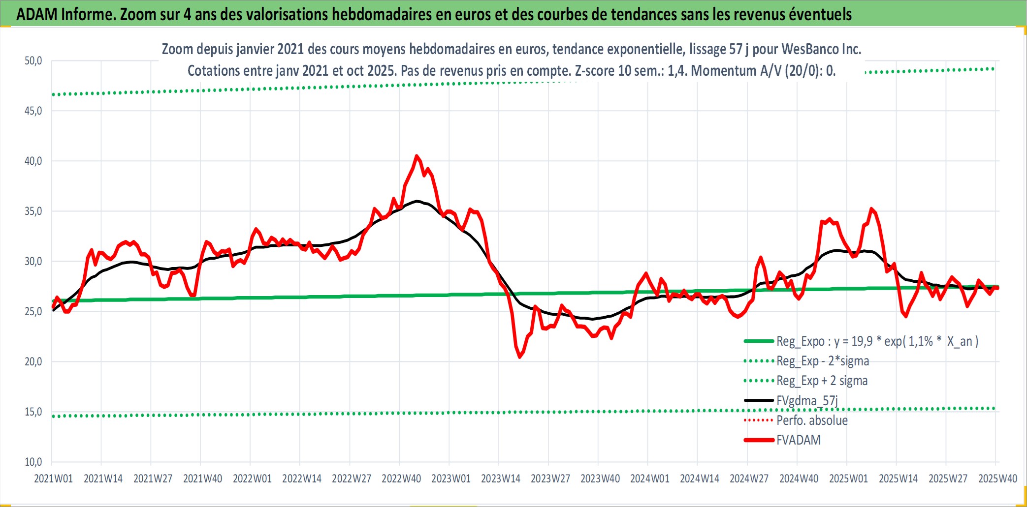 Site dédié aux investisseursPage dédiée sur site financeAnalyse des valorisations hebdomadaires de l'action WesBanco Inc.. Cet actif est cote en USD. Les valorisations sont en contrevaleur EURO et couvrent les semaines 1997W01 a 2025W40. Les revenus de cet actif financier sont pris en compte depuis la semaine 1997W11. La note ESG de cet actif n'est pas connue.