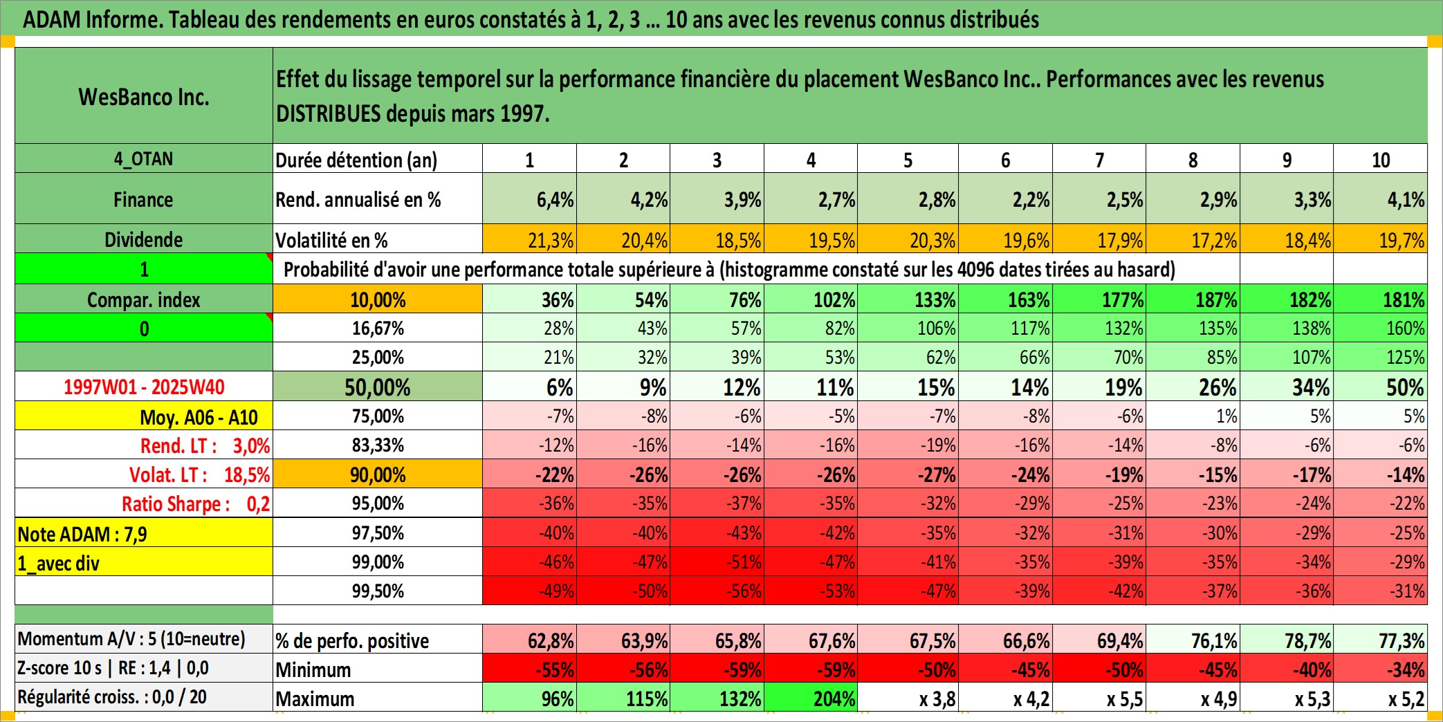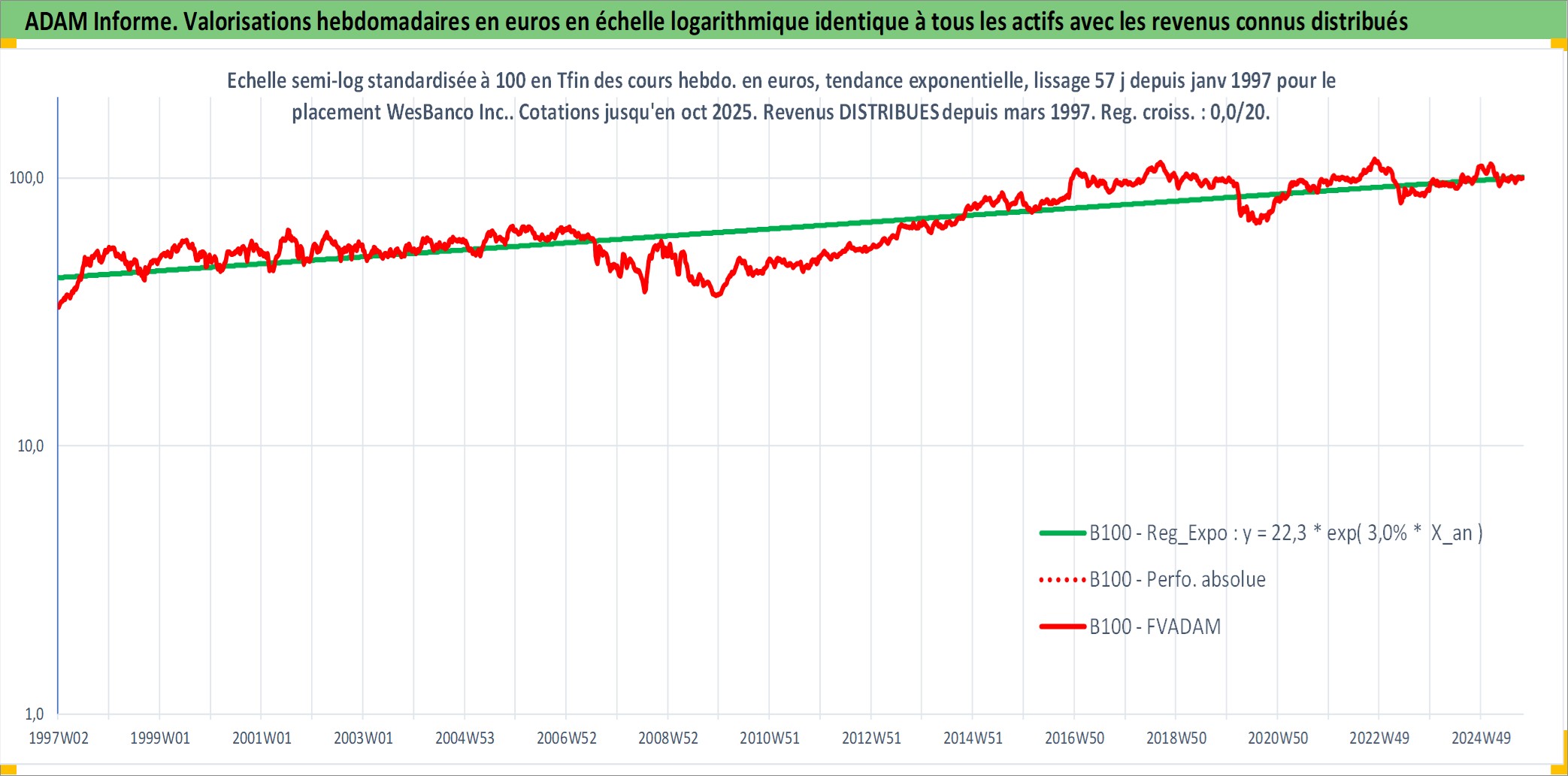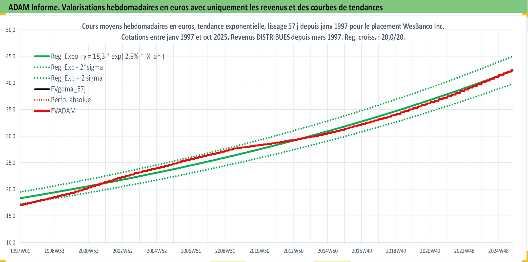 Site dédié aux investisseursPage dédiée sur site financeAnalyse des valorisations hebdomadaires de l'action WesBanco Inc.. Cet actif est cote en USD. Les valorisations sont en contrevaleur EURO et couvrent les semaines 1997W01 a 2025W40. Les revenus de cet actif financier sont pris en compte depuis la semaine 1997W11. La note ESG de cet actif n'est pas connue.