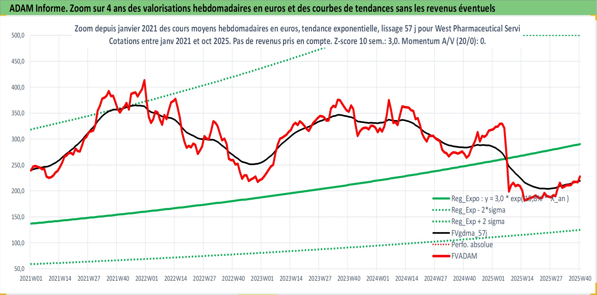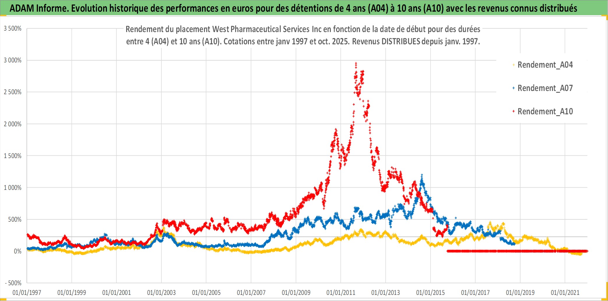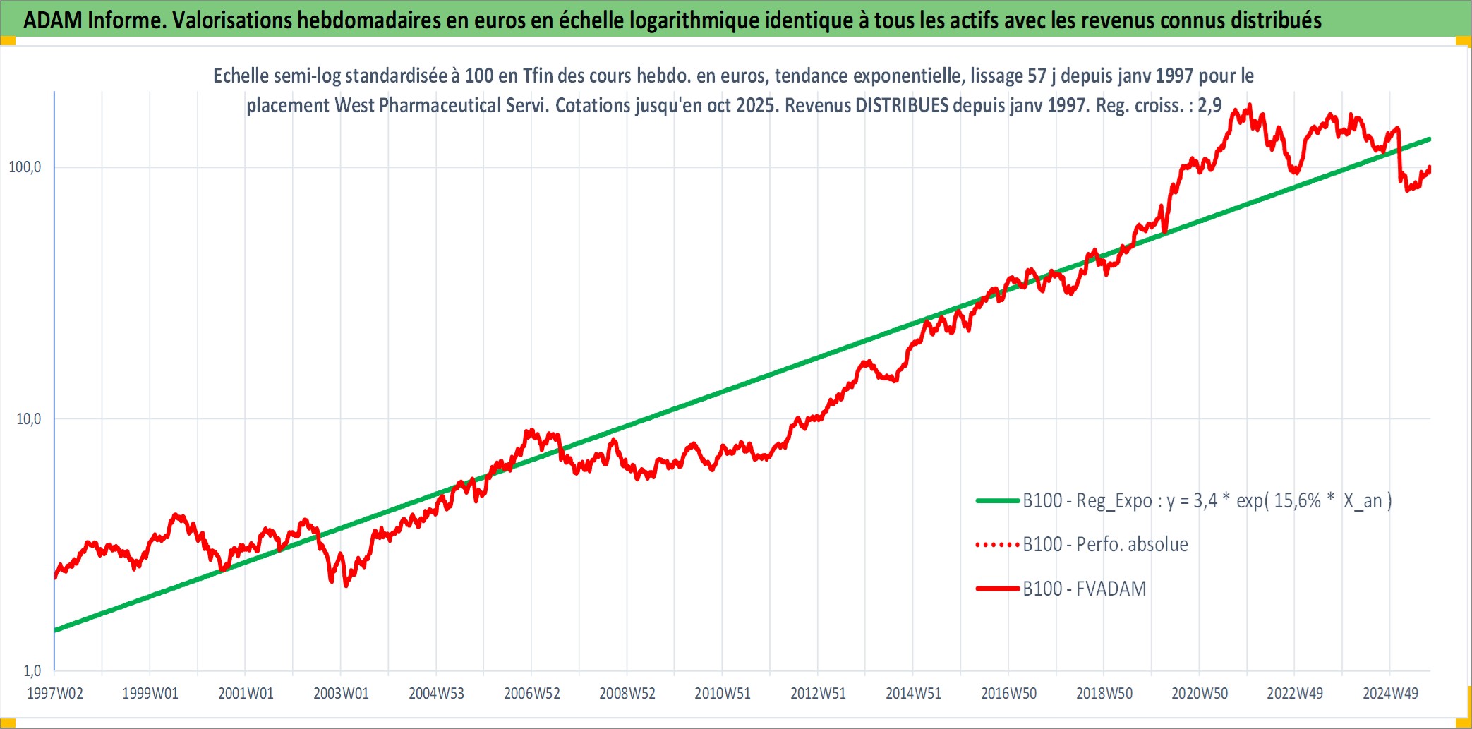 Site dédié aux investisseursPage dédiée sur site financeAnalyse des valorisations hebdomadaires de l'action West Pharmaceutical Services Inc. Cet actif est cote en USD. Les valorisations sont en contrevaleur EURO et couvrent les semaines 1997W01 a 2025W40. Les revenus de cet actif financier sont pris en compte depuis la semaine 1997W03. La note ESG de cet actif n'est pas connue.