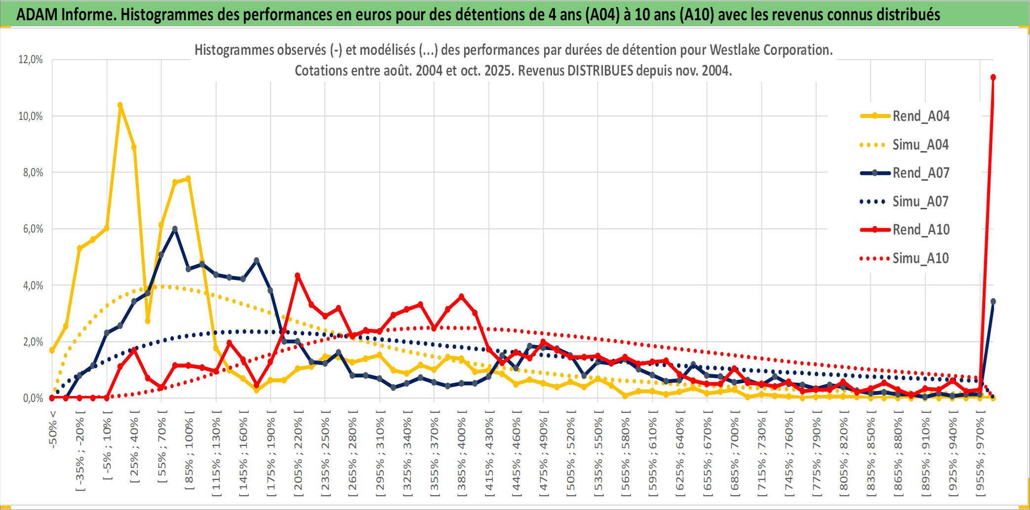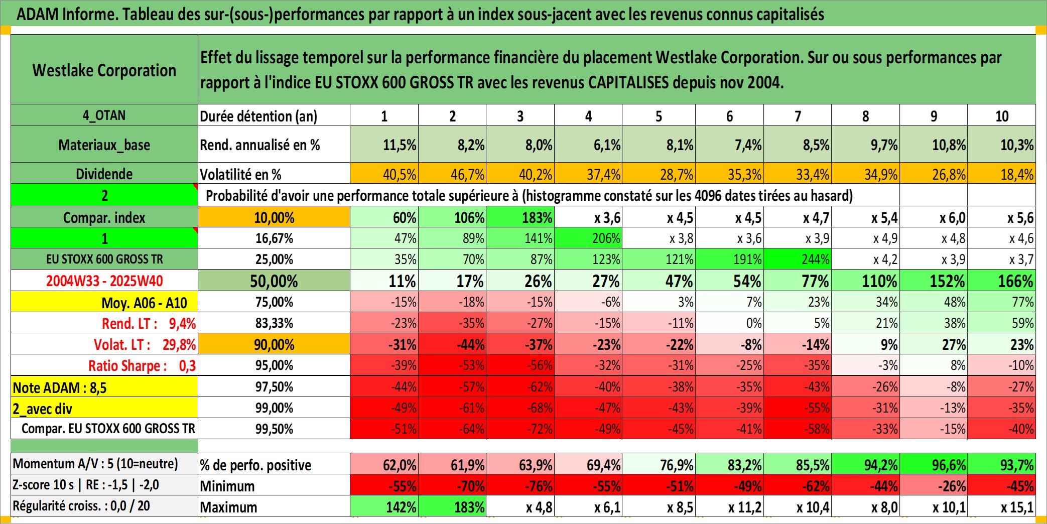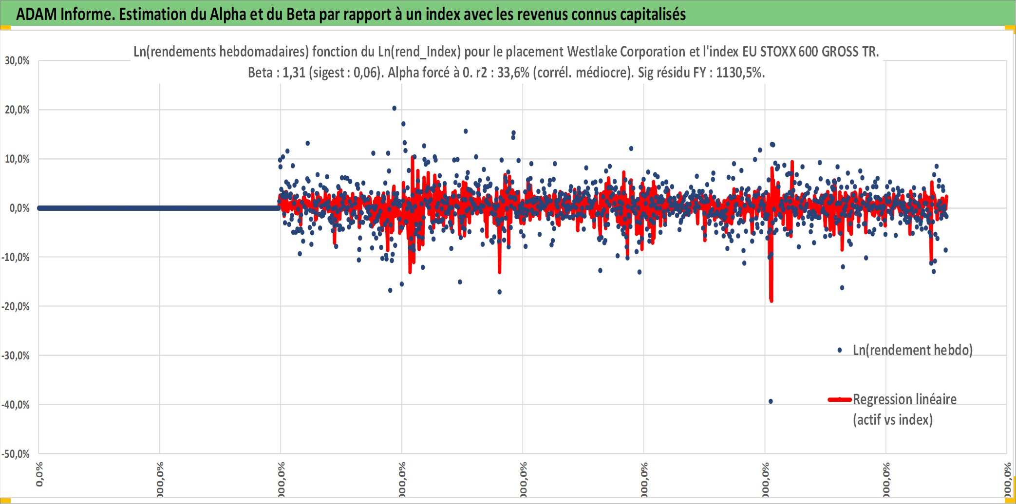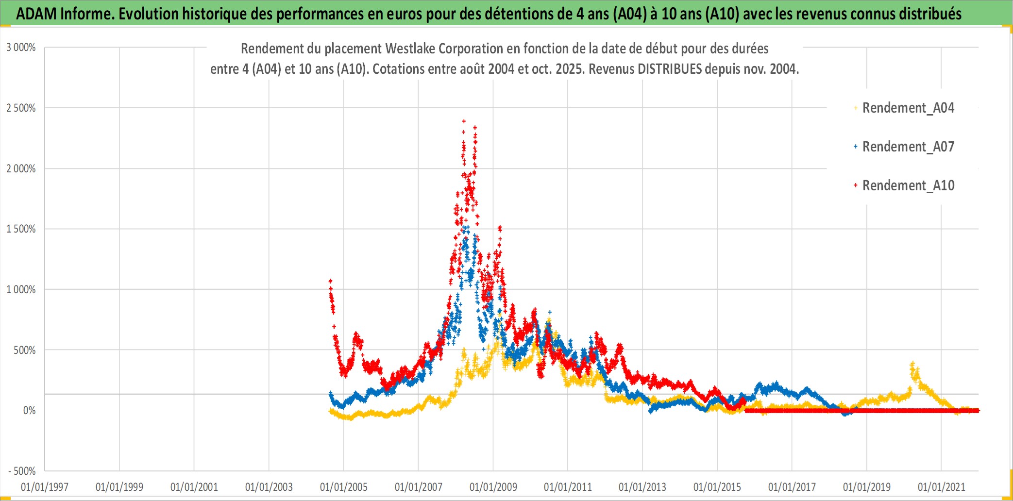 Site dédié aux investisseursPage dédiée sur site financeAnalyse des valorisations hebdomadaires de l'action Westlake Corporation. Cet actif est cote en USD. Les valorisations sont en contrevaleur EURO et couvrent les semaines 2004W33 a 2025W40. Les revenus de cet actif financier sont pris en compte depuis la semaine 2004W47. La note globale ESG de cet actif est estimee a 5.0 (apres rebasage entre 0 et 20).