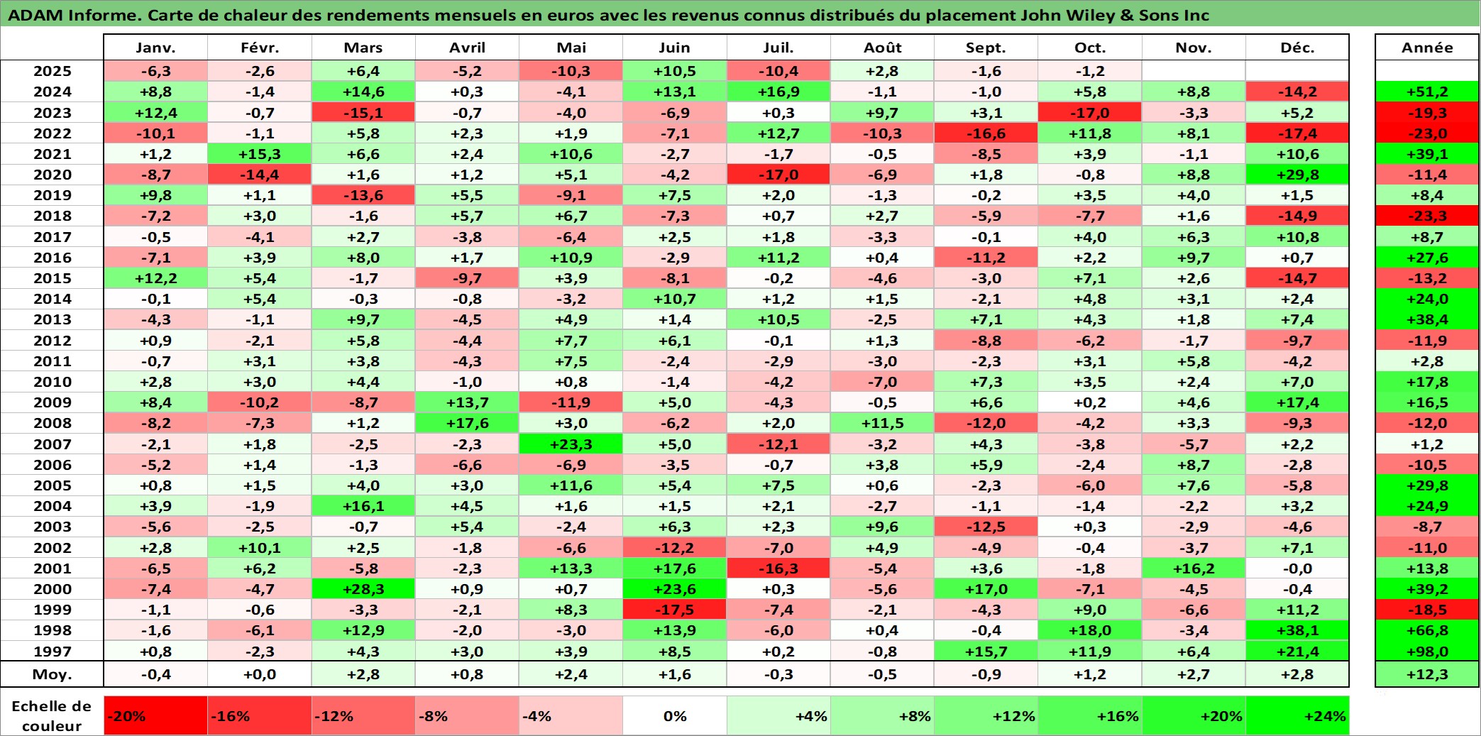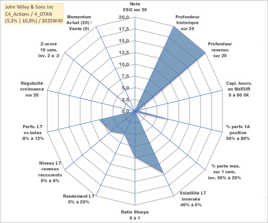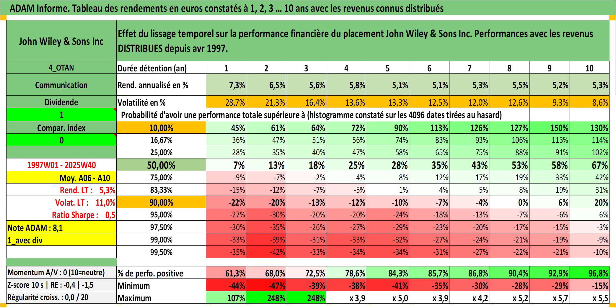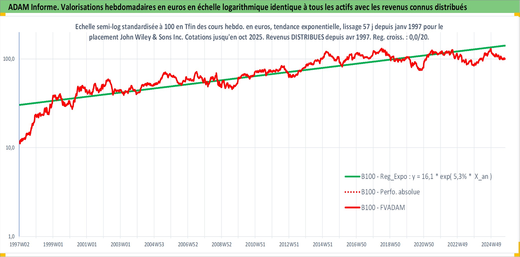 Site dédié aux investisseursPage dédiée sur site financeAnalyse des valorisations hebdomadaires de l'action John Wiley & Sons Inc. Cet actif est cote en USD. Les valorisations sont en contrevaleur EURO et couvrent les semaines 1997W01 a 2025W40. Les revenus de cet actif financier sont pris en compte depuis la semaine 1997W14. La note ESG de cet actif n'est pas connue.