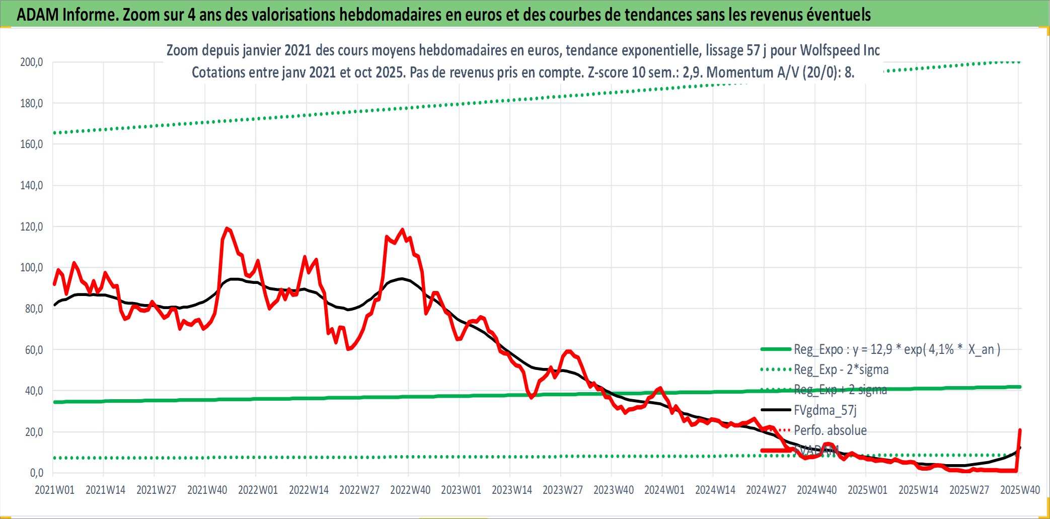 Site dédié aux investisseursPage dédiée sur site financeAnalyse des valorisations hebdomadaires de l'action Wolfspeed Inc. Cet actif est cote en USD. Les valorisations sont en contrevaleur EURO et couvrent les semaines 1997W01 a 2025W40. Les revenus de cet actif financier ne sont pas connus car non existants ou non disponibles sur le site Yahoo Finance. La note ESG de cet actif n'est pas connue.